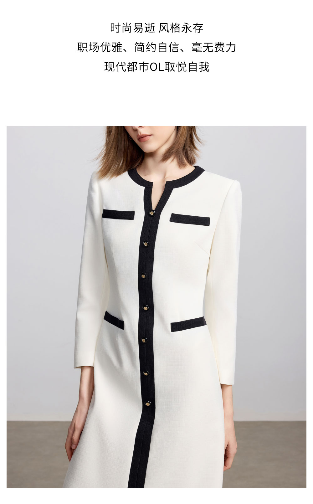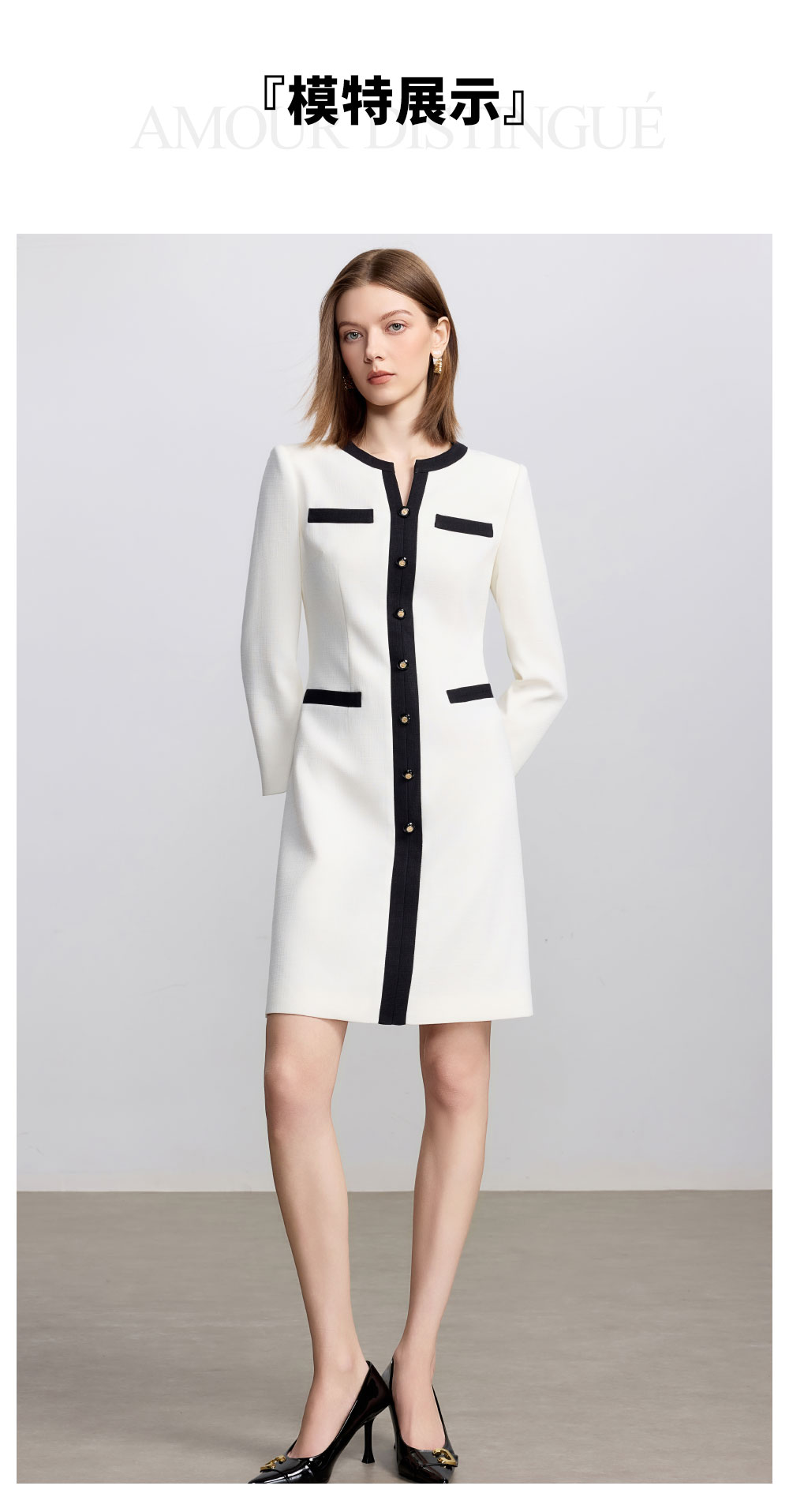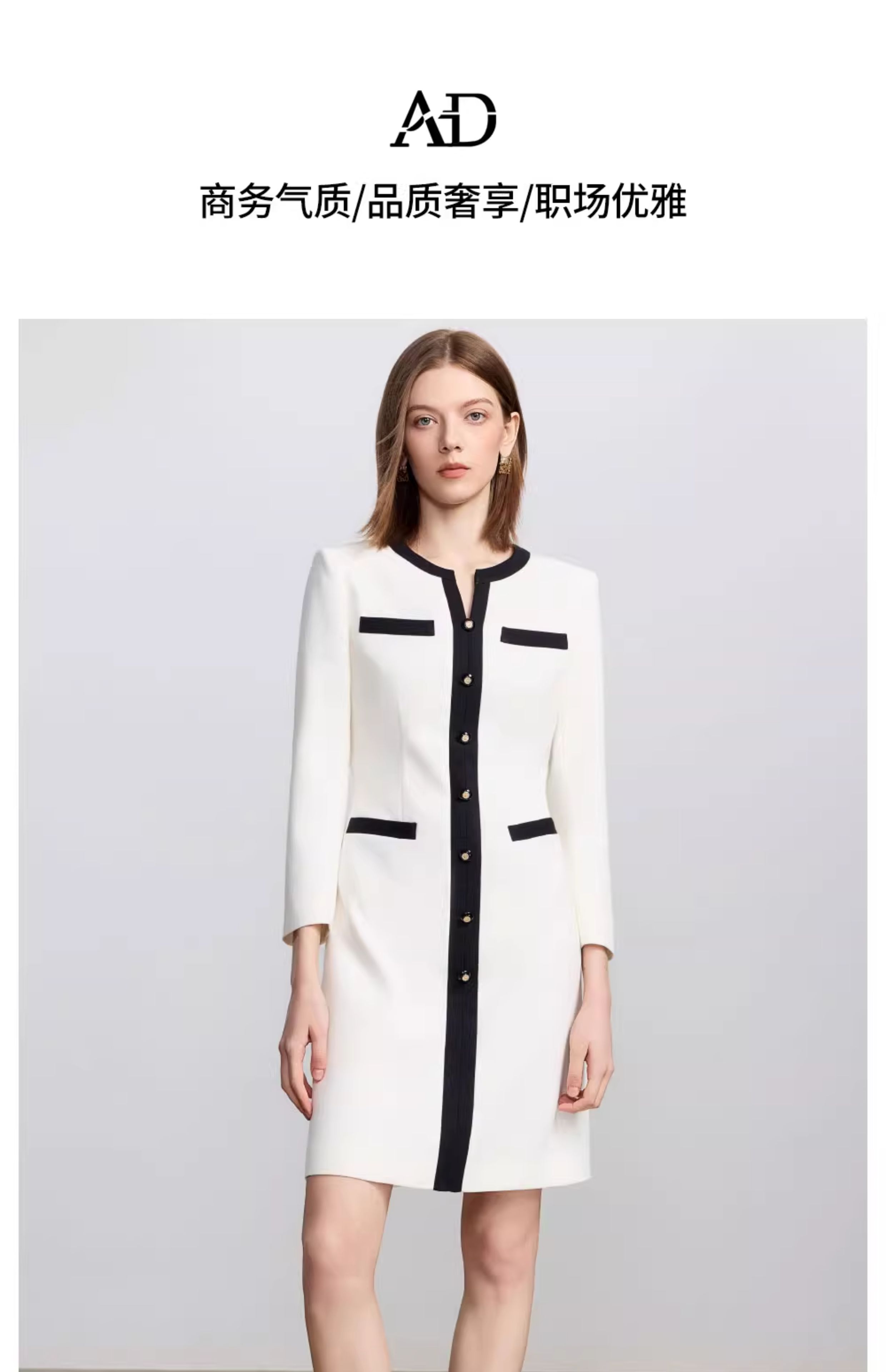 AD法式小资连衣裙女秋季2025新款黑白撞色西装裙极简高级感穿搭
