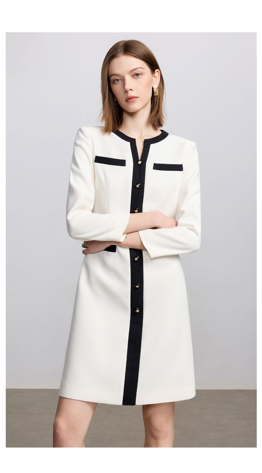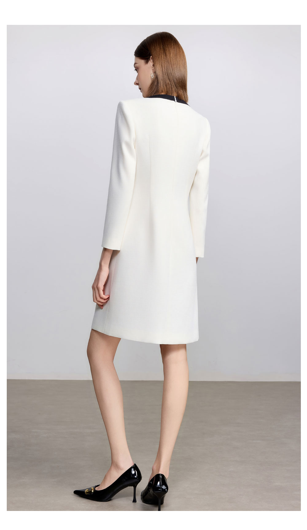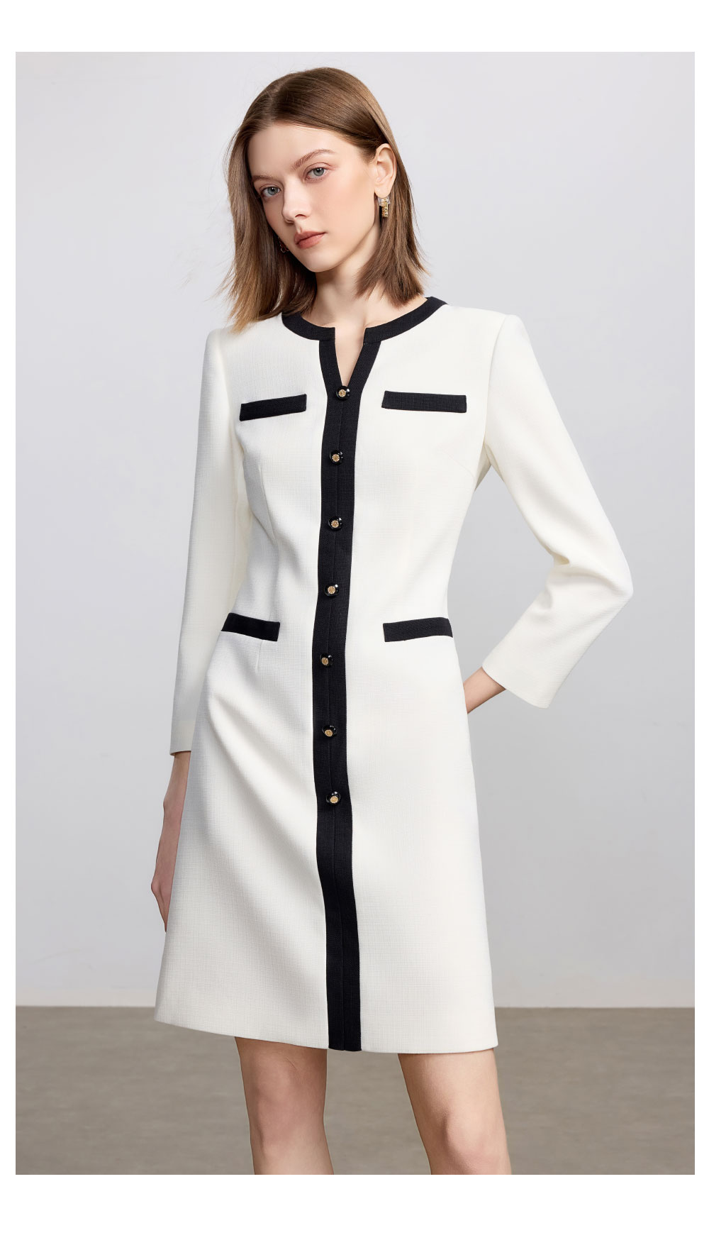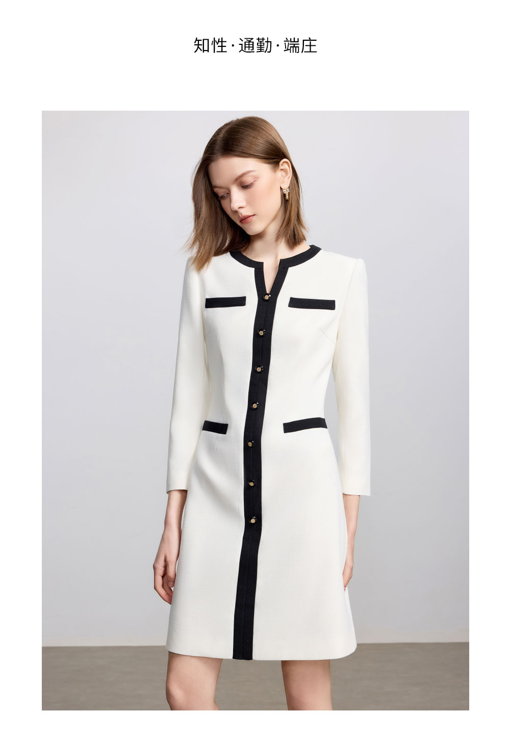 AD法式小资连衣裙女秋季2025新款黑白撞色西装裙极简高级感穿搭