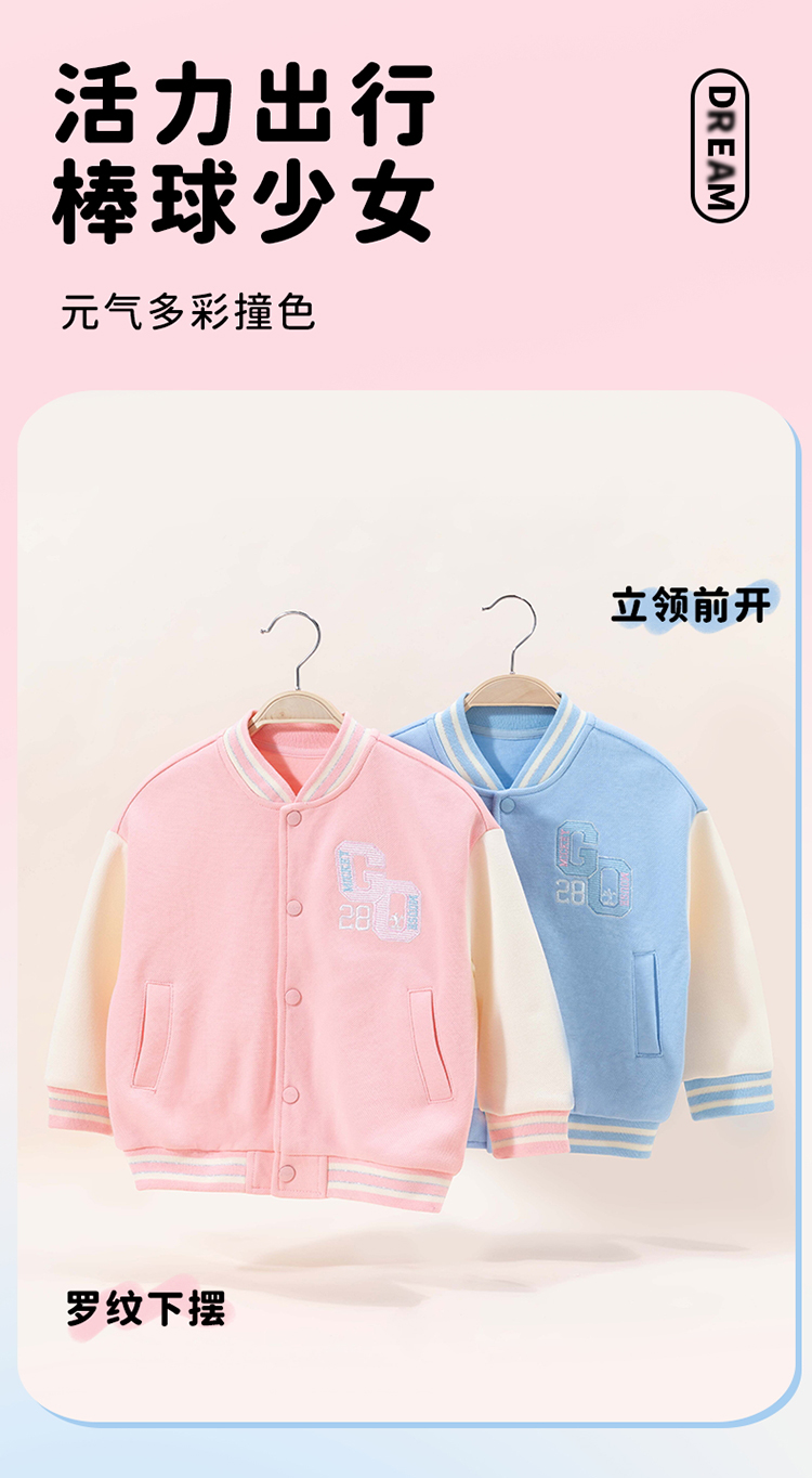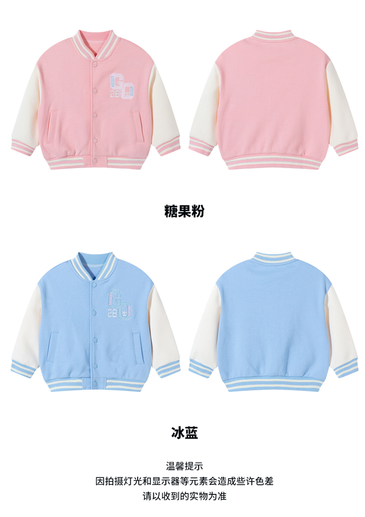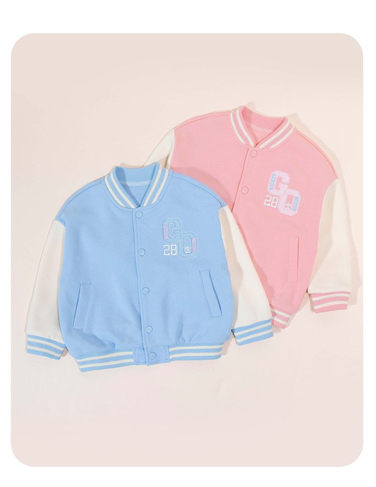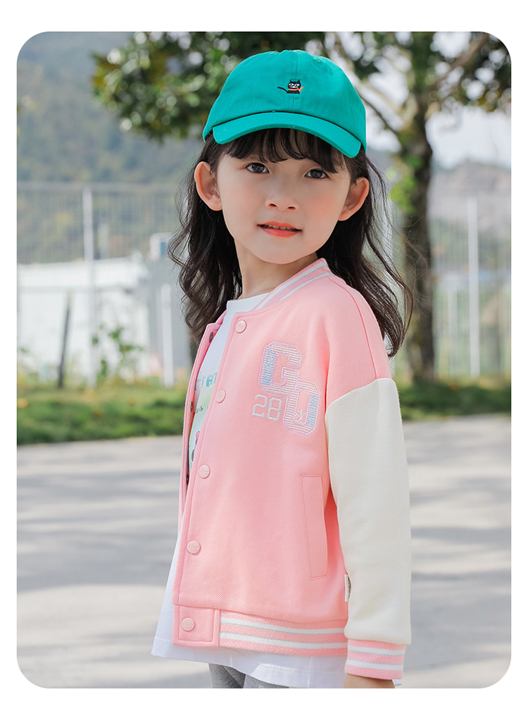 【商城同款】迪士尼2024春季新款学院风女童棒球服马卡龙撞色拼接外套运动上衣