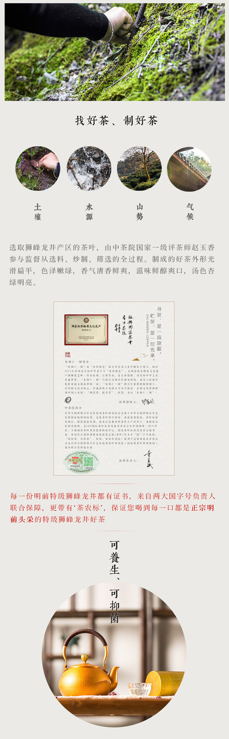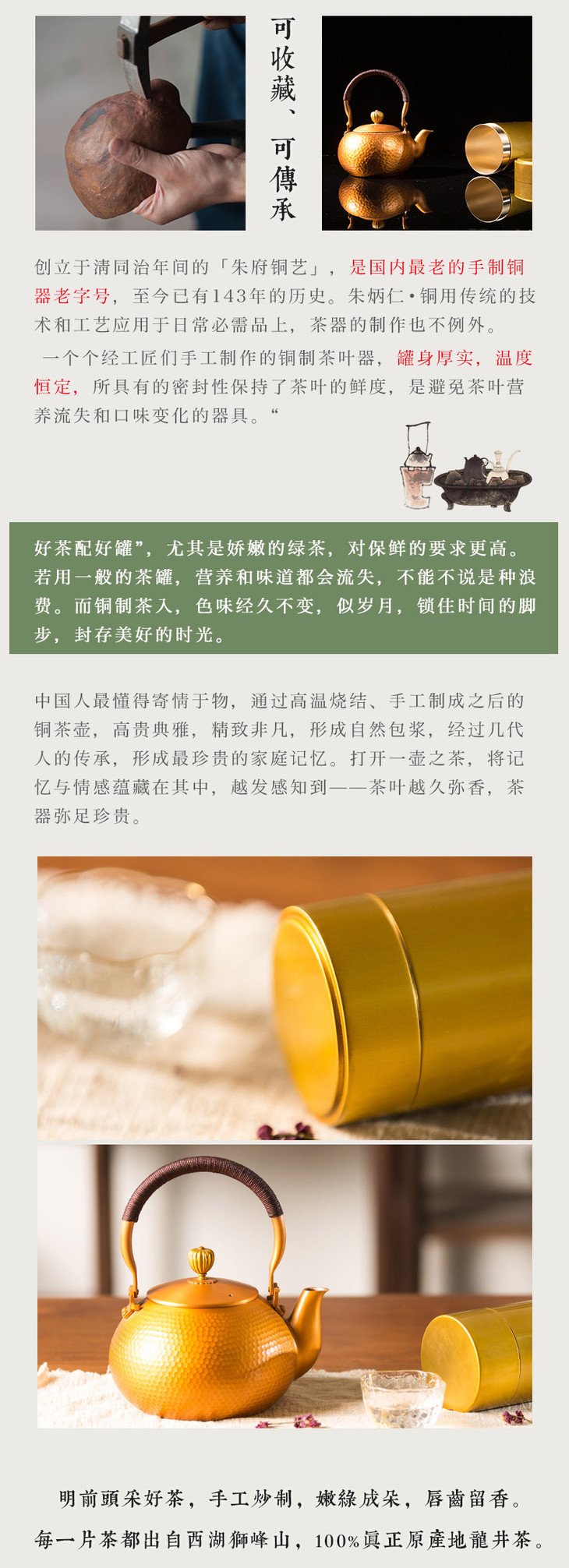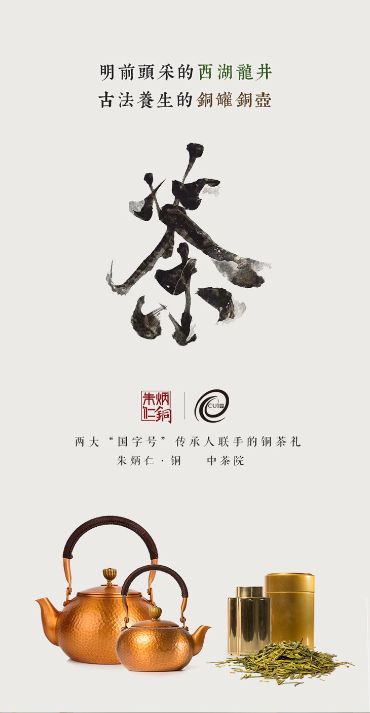 (永久下架)朱炳仁·铜 明前特级狮峰龙井(有证书) 茶 铜壶 礼盒套装(包邮)