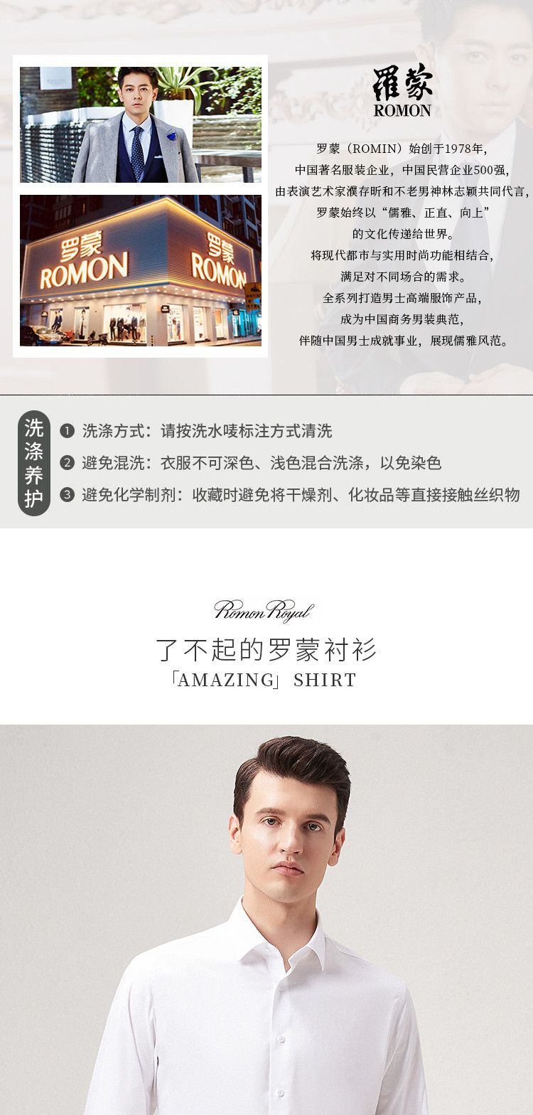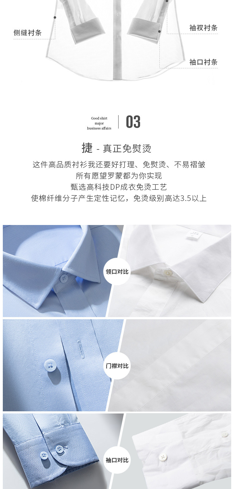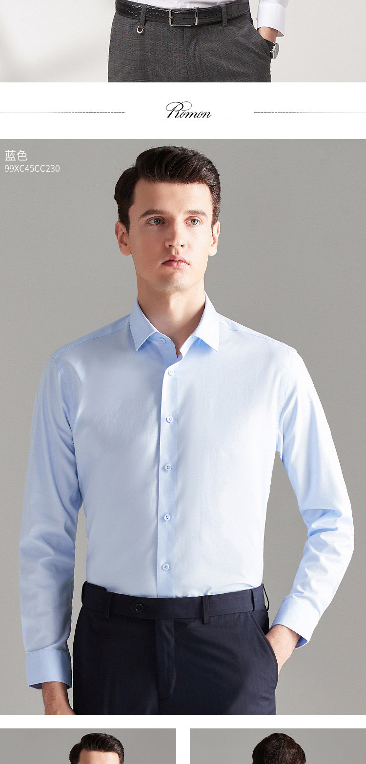 【97棉抗皱免烫】罗蒙春夏长袖衬衫男士正装商务通勤纯色微弹衬衣男
