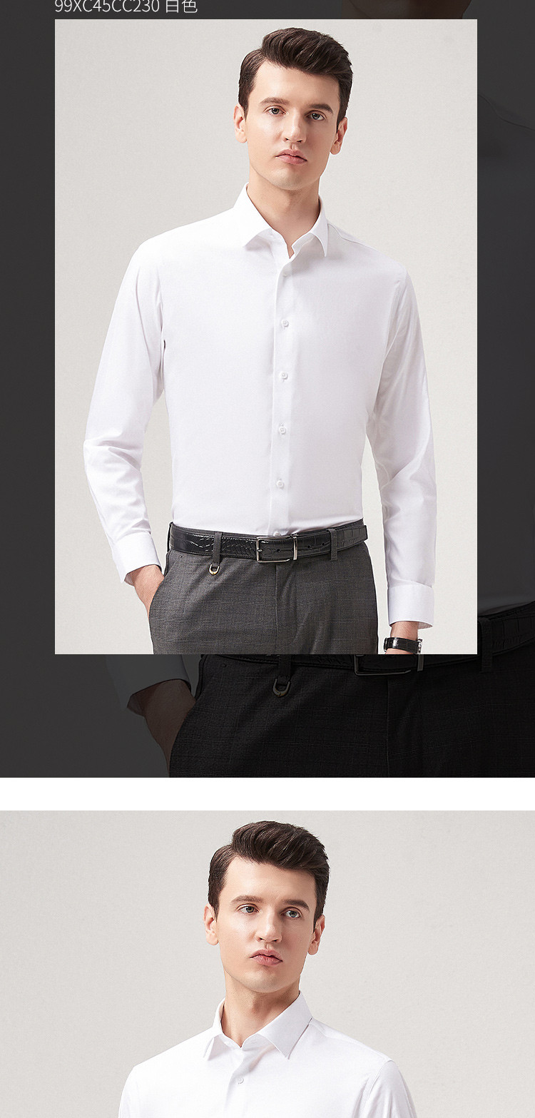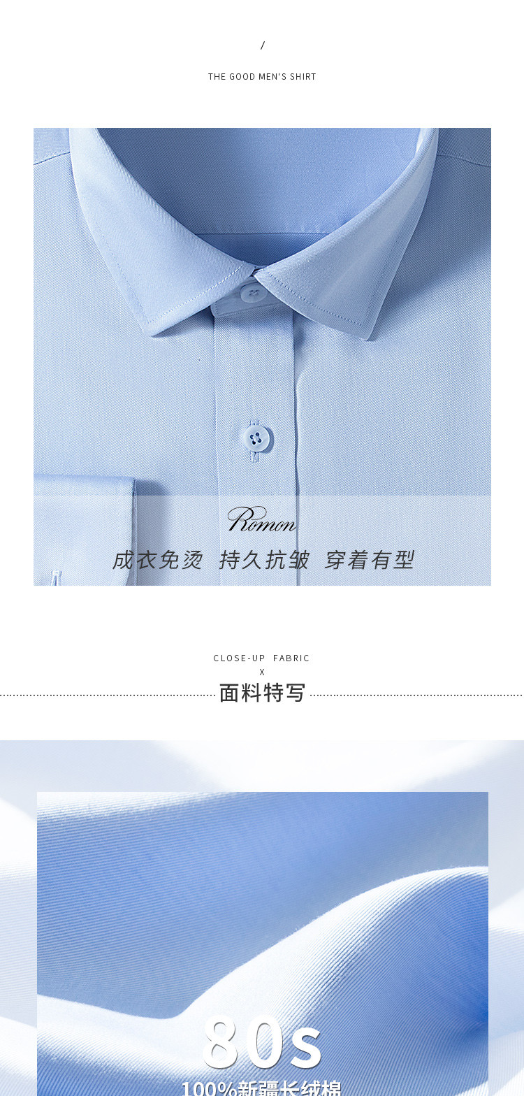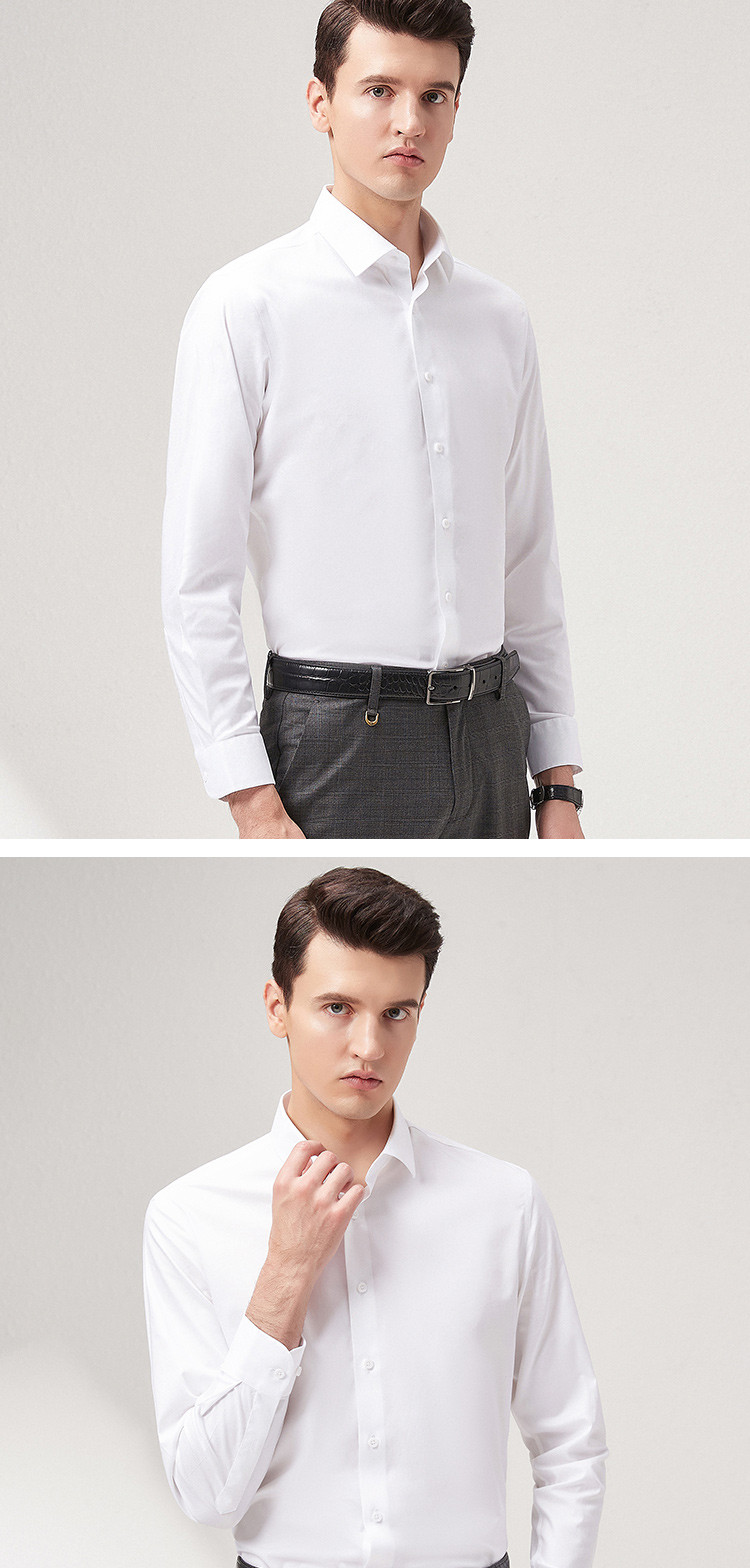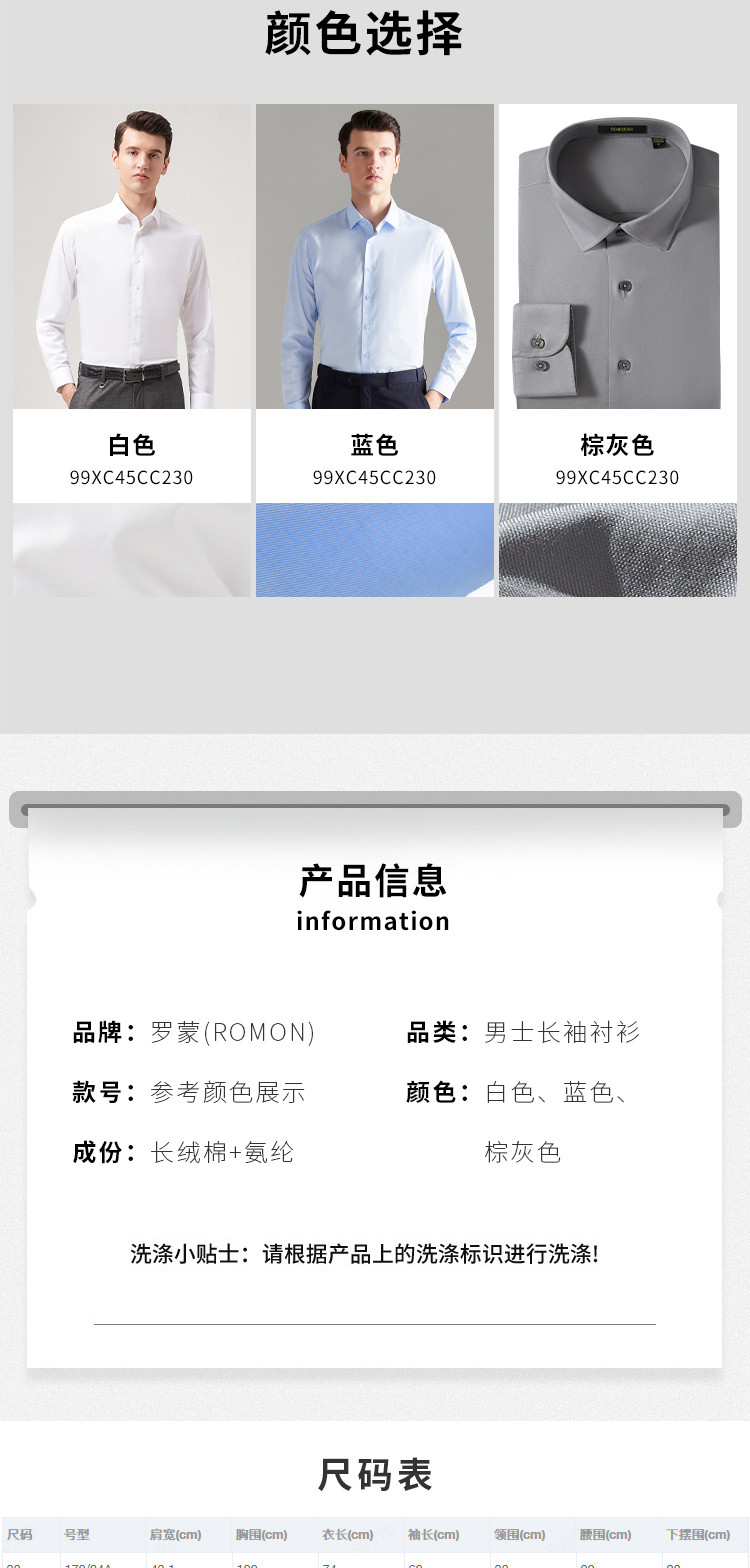 【97棉抗皱免烫】罗蒙春夏长袖衬衫男士正装商务通勤纯色微弹衬衣男