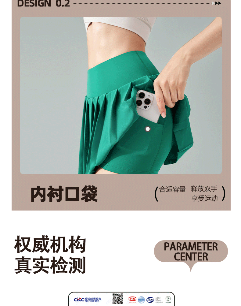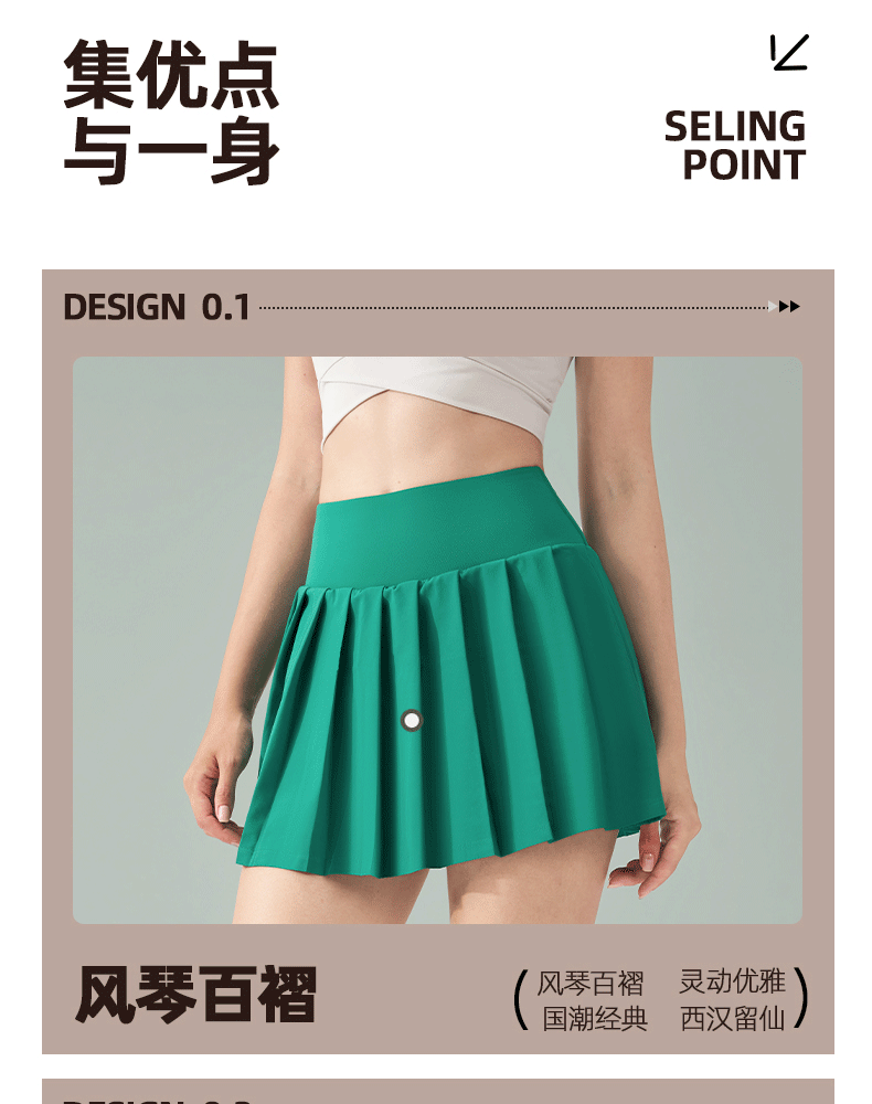 跃牌【轻匀系列】SZ莱卡百褶防走光一体式弹力健身跑步运动短裙DQ1472