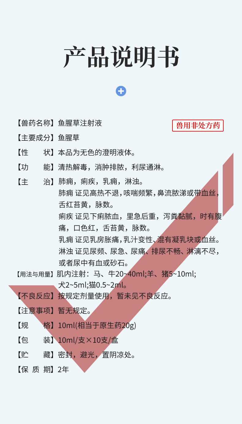 华畜鱼腥草注射液 产后康清热解毒消脓排肿
