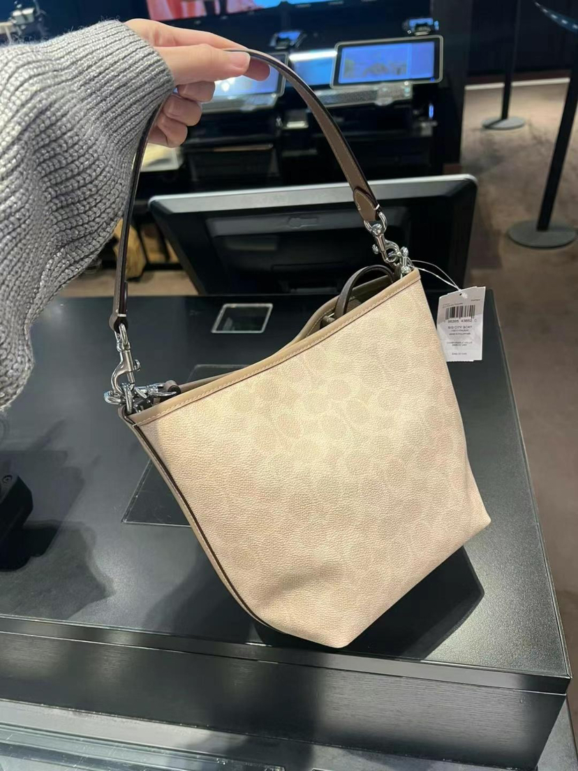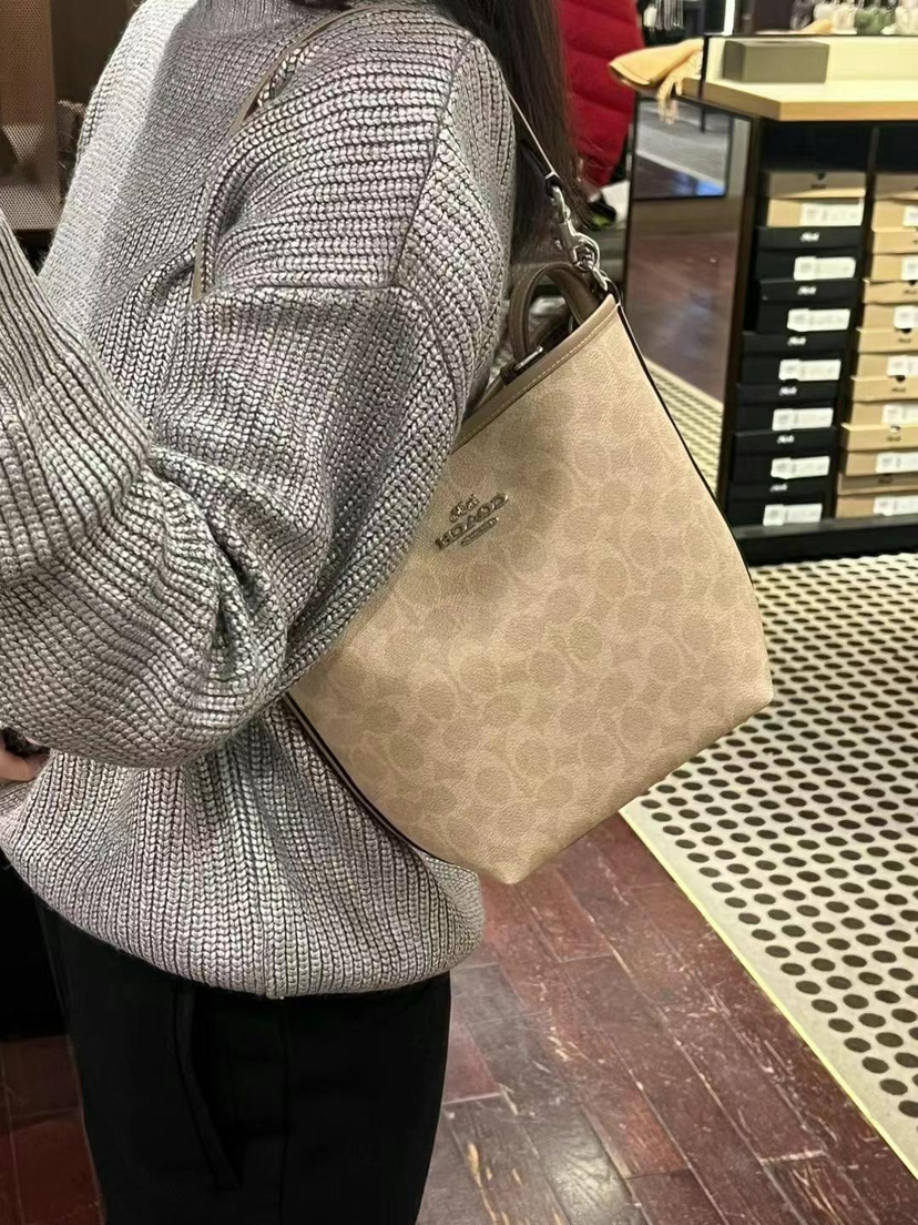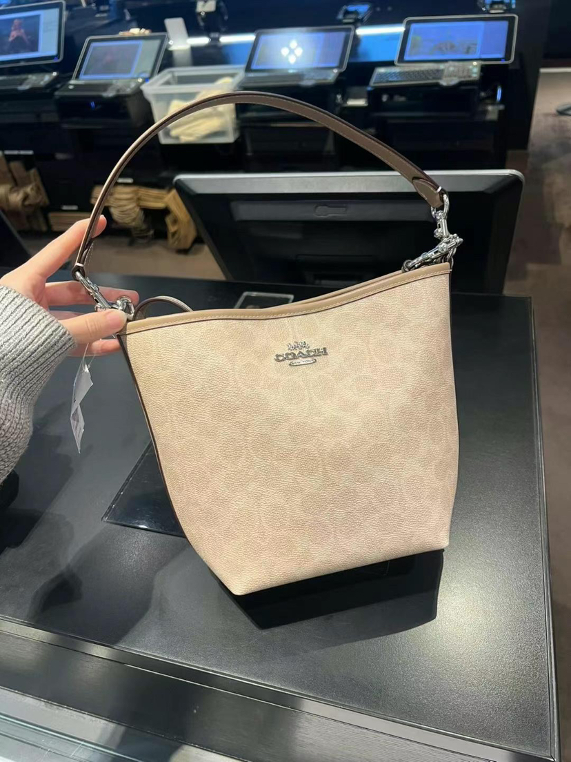 🎁限时低价,1250直邮到手最新色❗️奶茶卡其拼色logo,Coach 新款city logo水桶包,一长一短两根肩带,超轻且容量大,21X16.5cm
