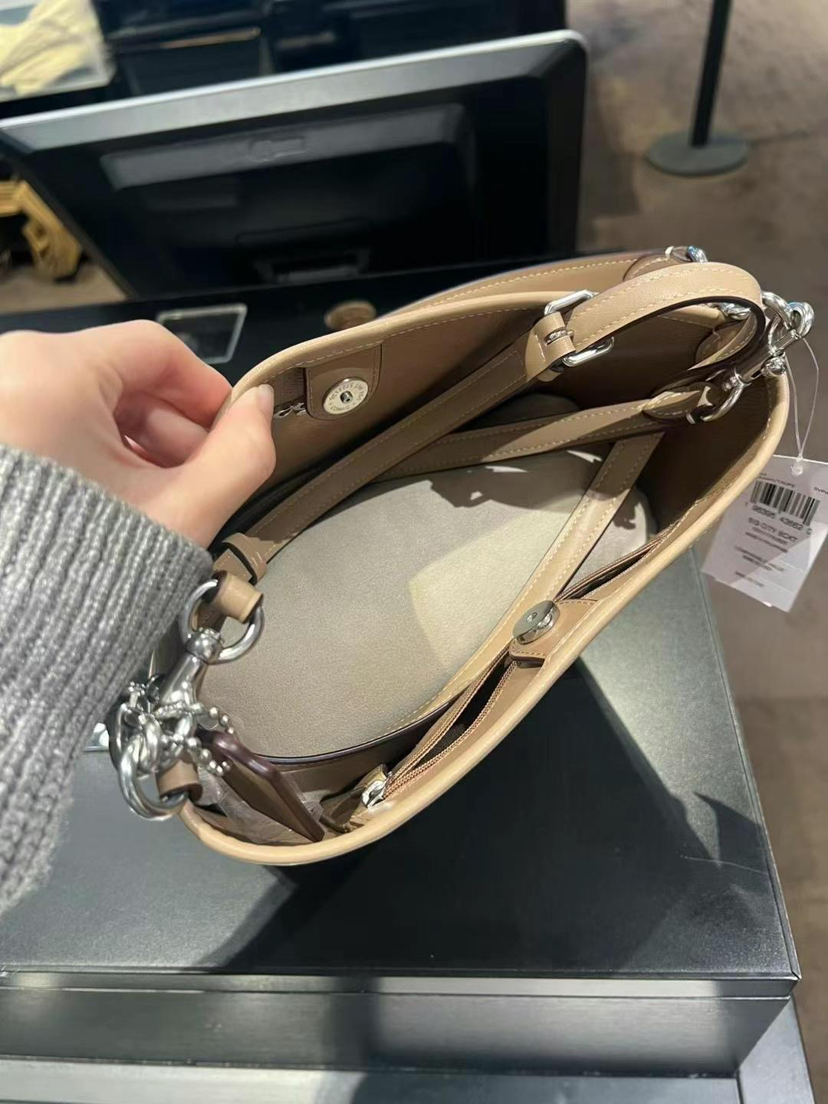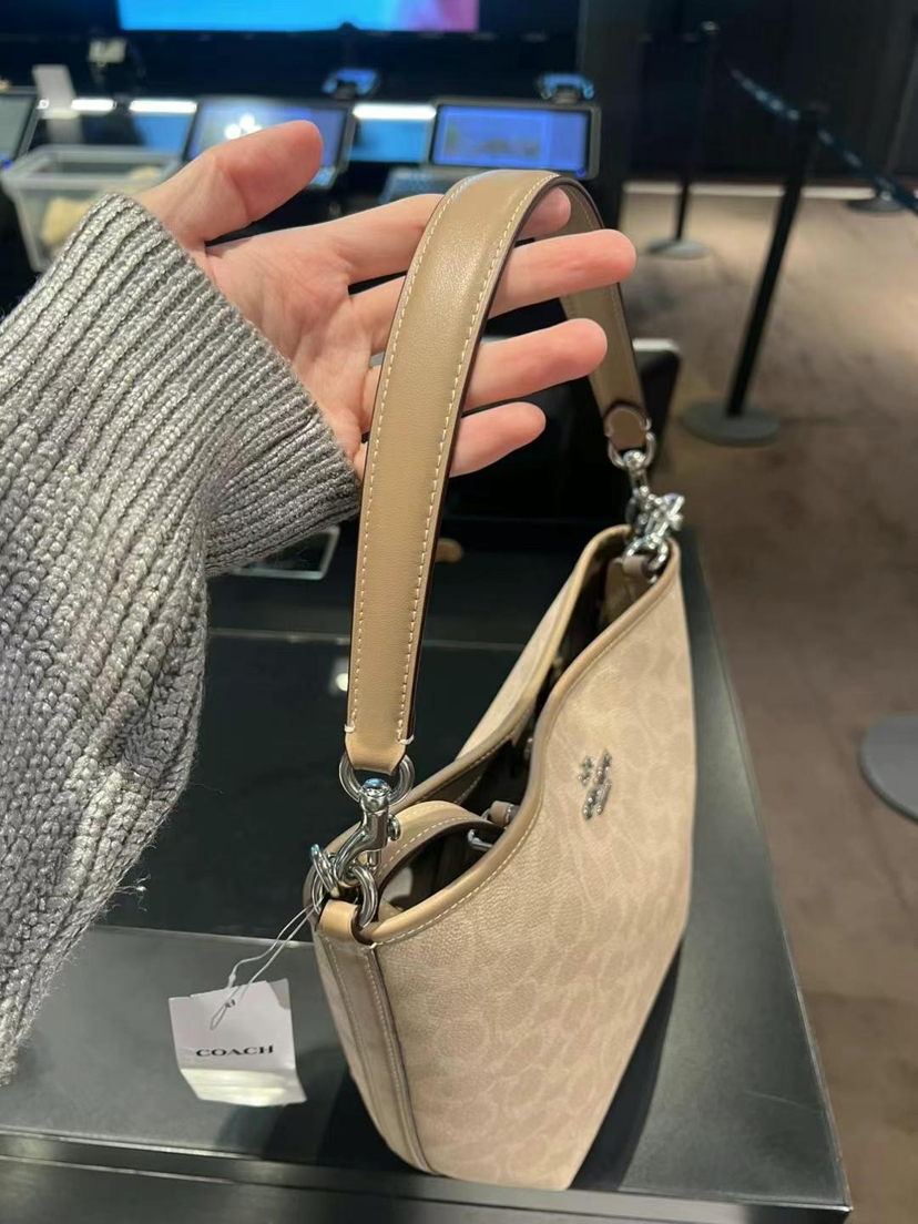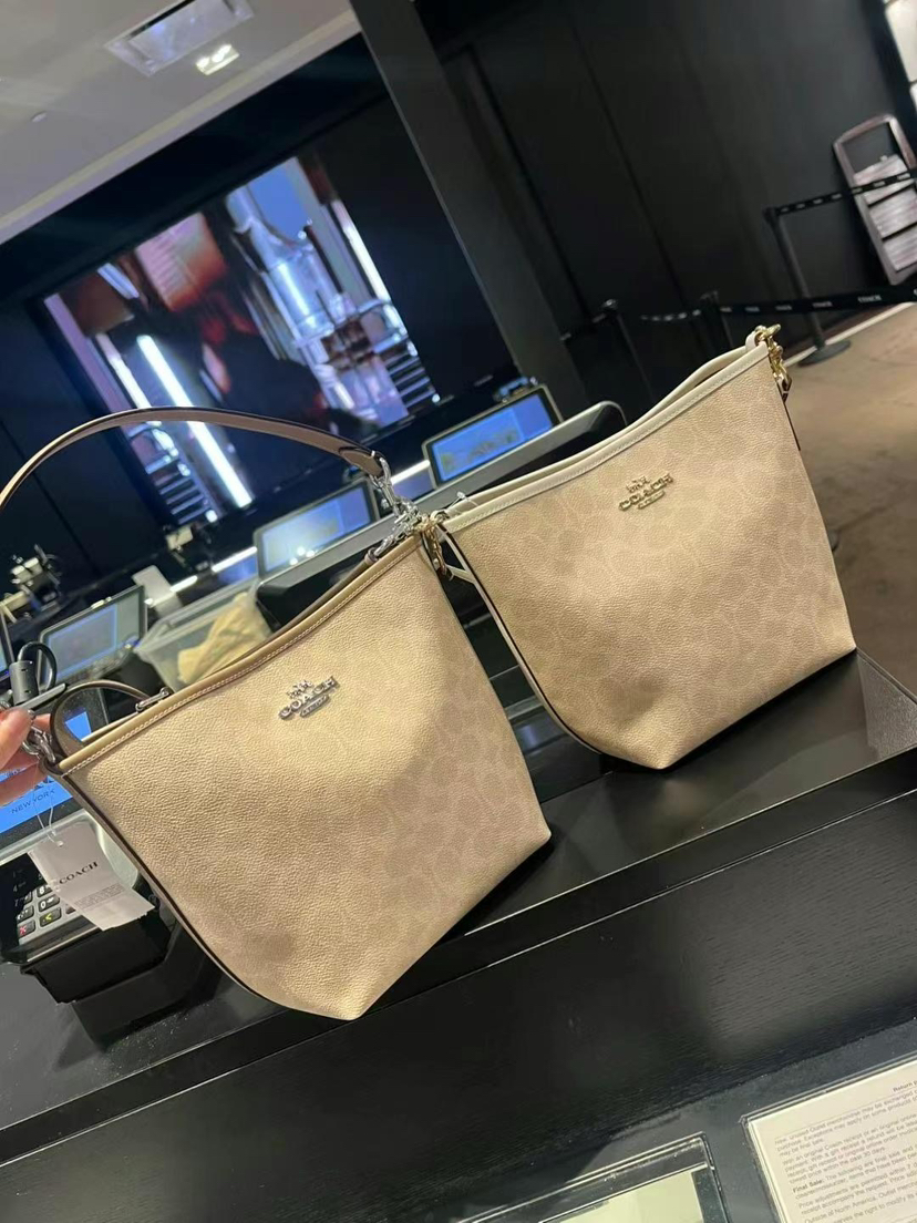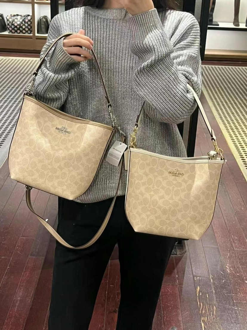 🎁限时低价,1250直邮到手最新色❗️奶茶卡其拼色logo,Coach 新款city logo水桶包,一长一短两根肩带,超轻且容量大,21X16.5cm