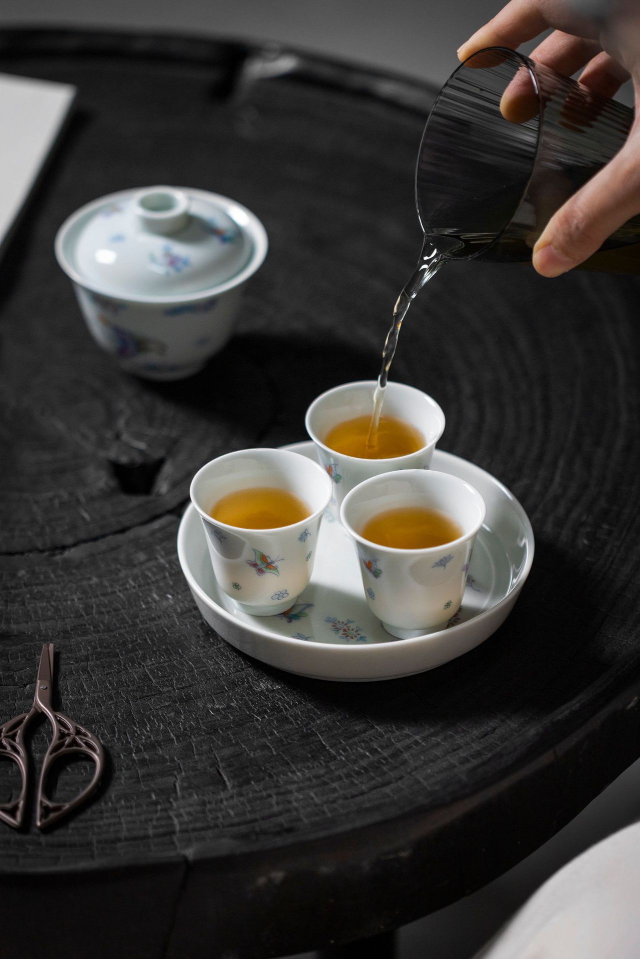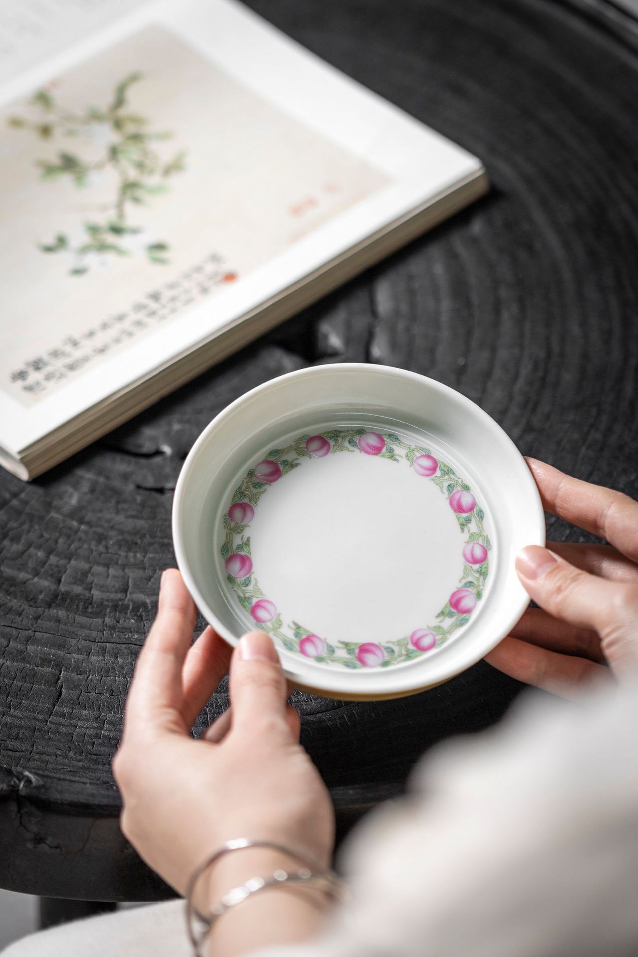 永利汇|仿古蝶恋花干泡盘茶盘壶承13.5cm 实用茶具底托养壶多色