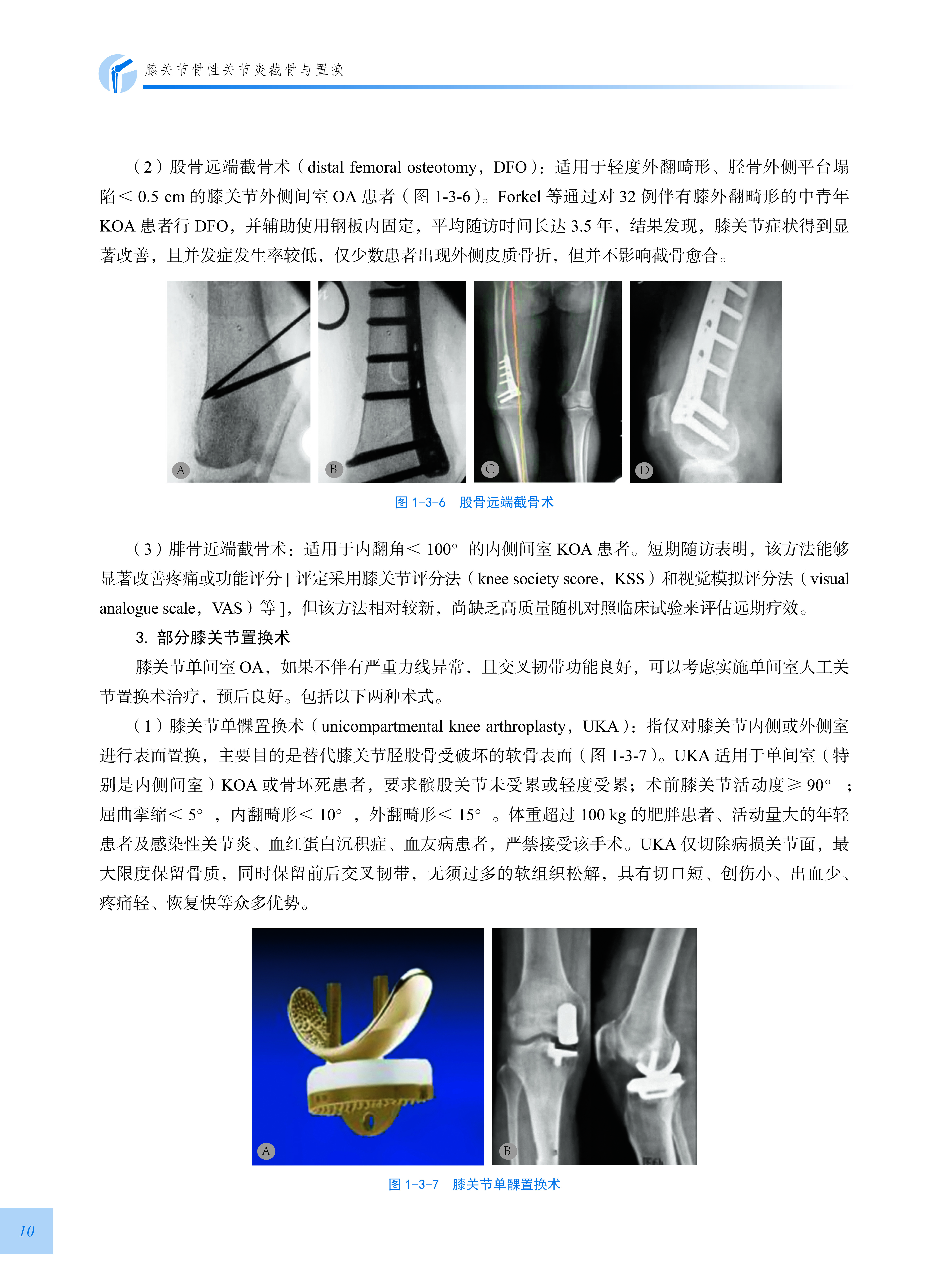 保膝不是人人皆宜,换膝不是一劳永逸。膝关节骨性关节炎治疗方法的选择要严格掌握好适应证,有绝对适应证,也有交叉适应证。截骨术可保留自己的全部关节结构,单髁置换术会保留前后交叉韧带,可获得良好的本体感觉。而全膝关节置换术的假体又分为保留后交叉韧带和切除后交叉韧带的假体,如果韧带功能不全,还要使用 CCK 假体和 RHK假体等。严格的适应证选择是基础,过硬的手术技术是关键,有效的并发症防治是保障,再加上术后镇痛及快速康复的完美配合,才能收到更好的效果,使患者受益最大化。未来会进入到人工智能、机器人时代,会极大提高手术的精准性及疗效。