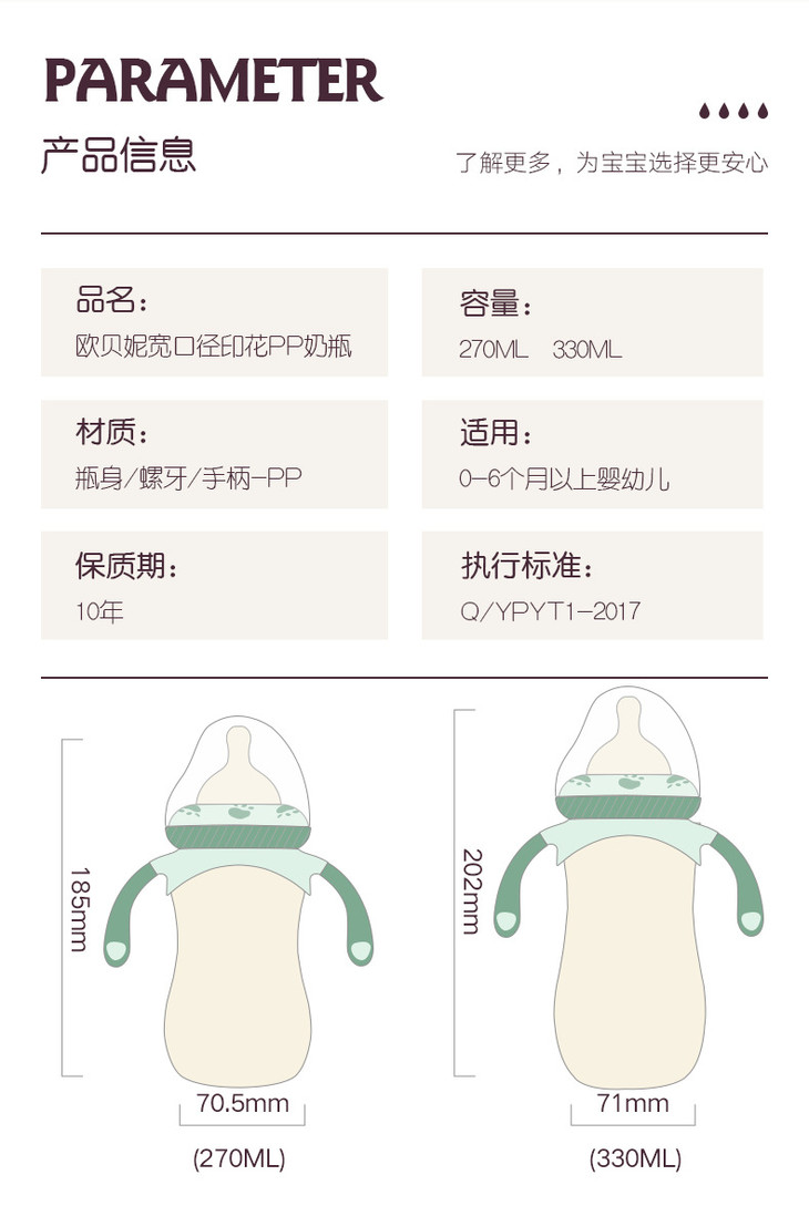【母婴】*婴儿奶瓶pp宽口径防胀气宝宝幼儿奶瓶 防摔奶瓶