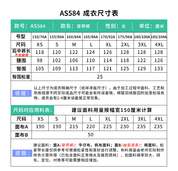 裁缝学苑AS584新款牛仔背带裤纸样女装休闲裤子服装打板图