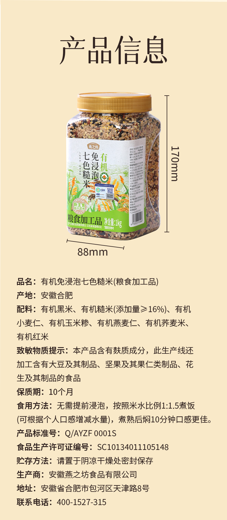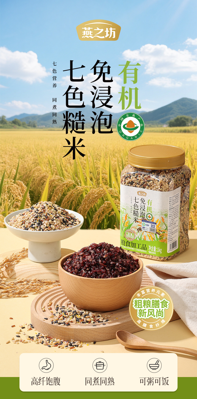 【商城专属】燕之坊有机免浸泡七色糙米1kg 新米五谷杂粮米粗粮糙米饭健身代餐孕妇控糖主食粥饭