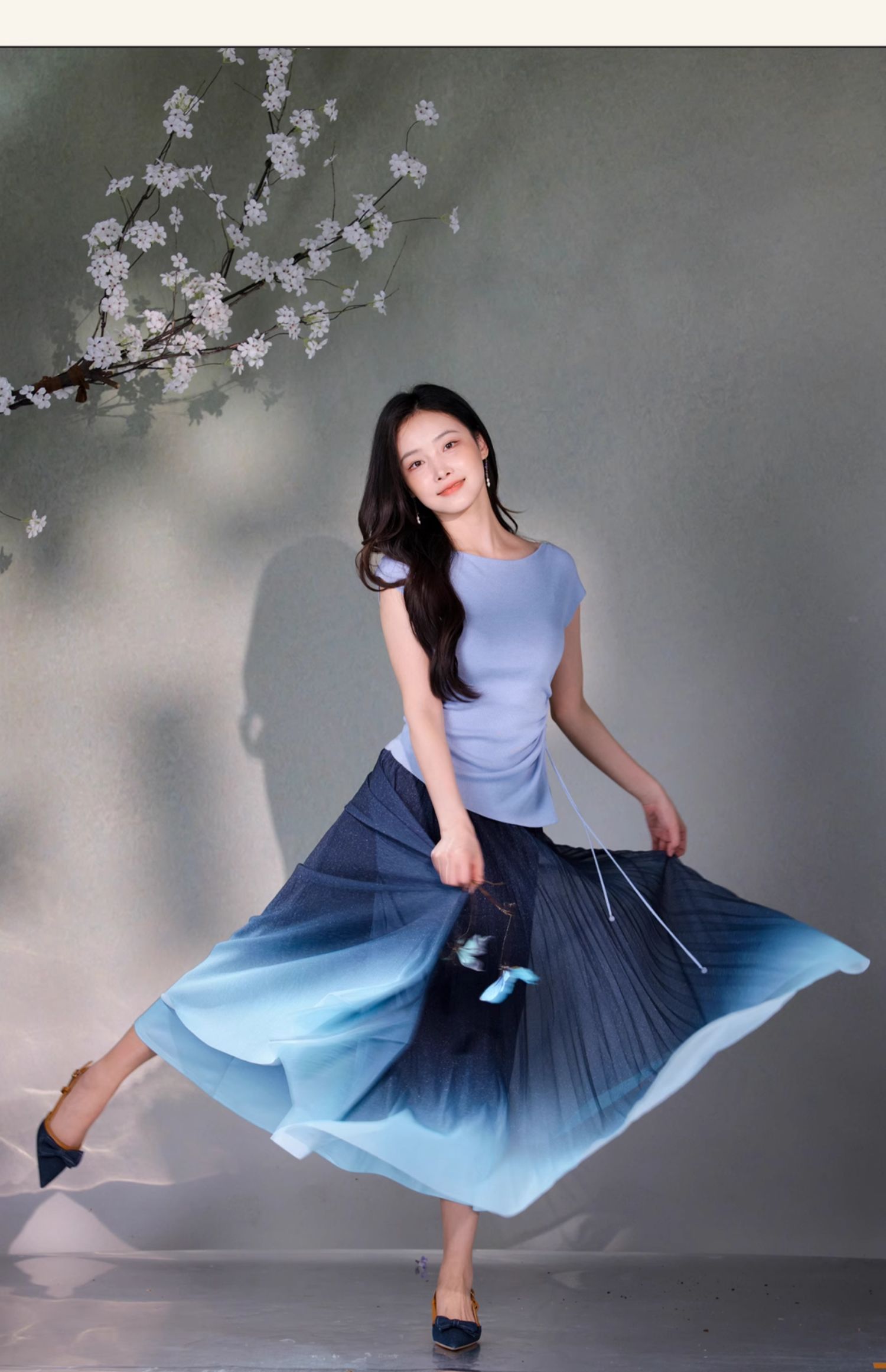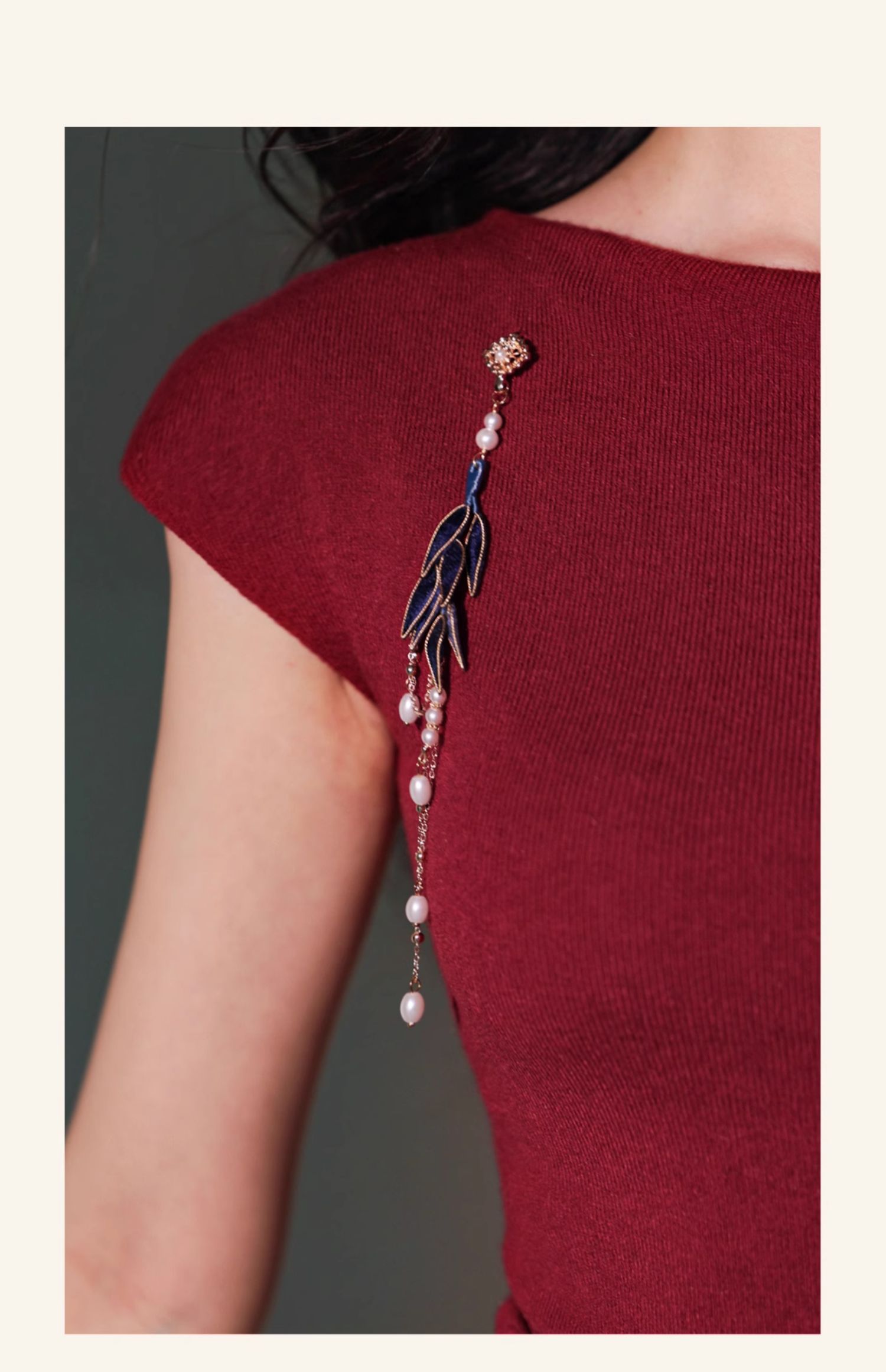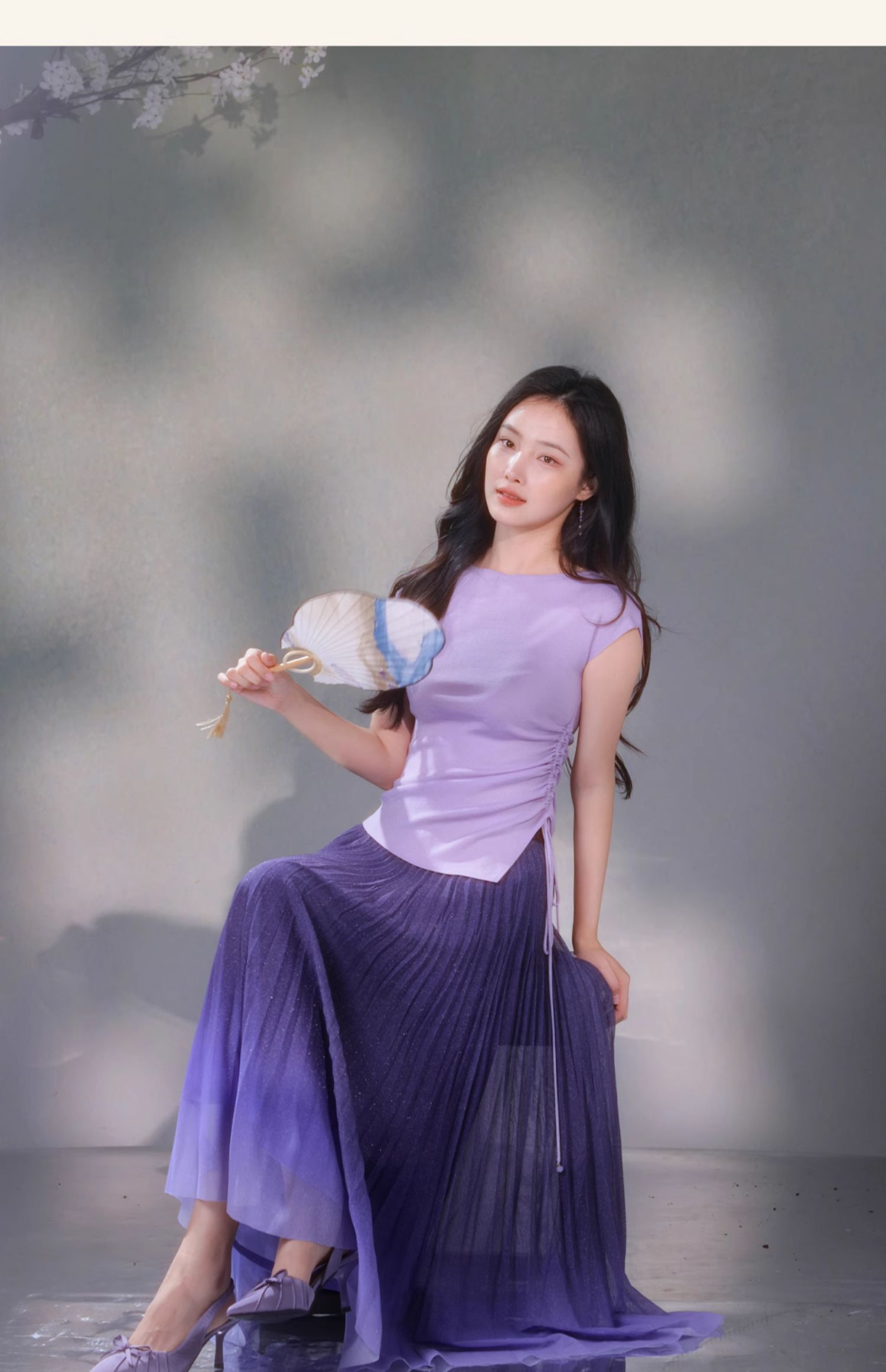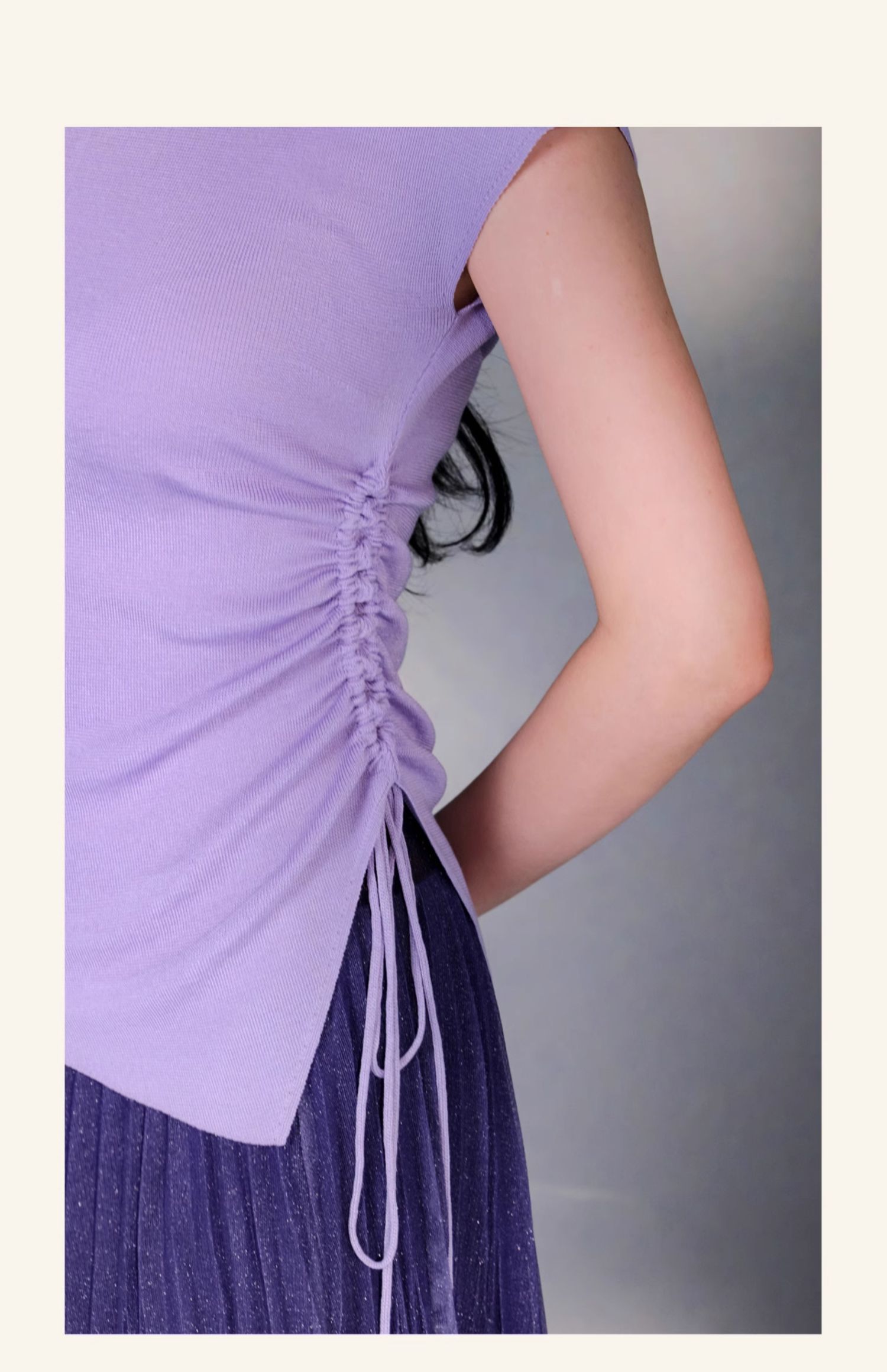逸红颜博初2025夏新款冰感醋酸羊毛抽褶一字领针织衫新中式上衣女