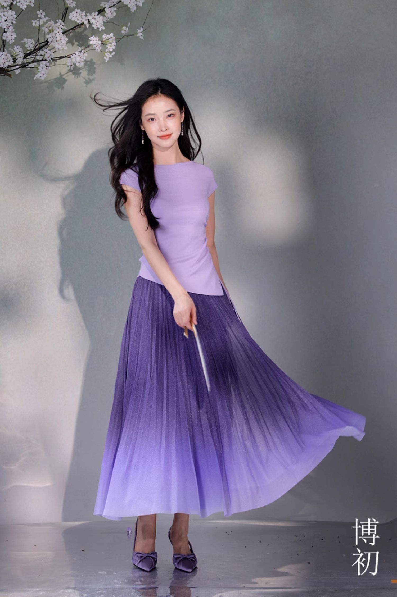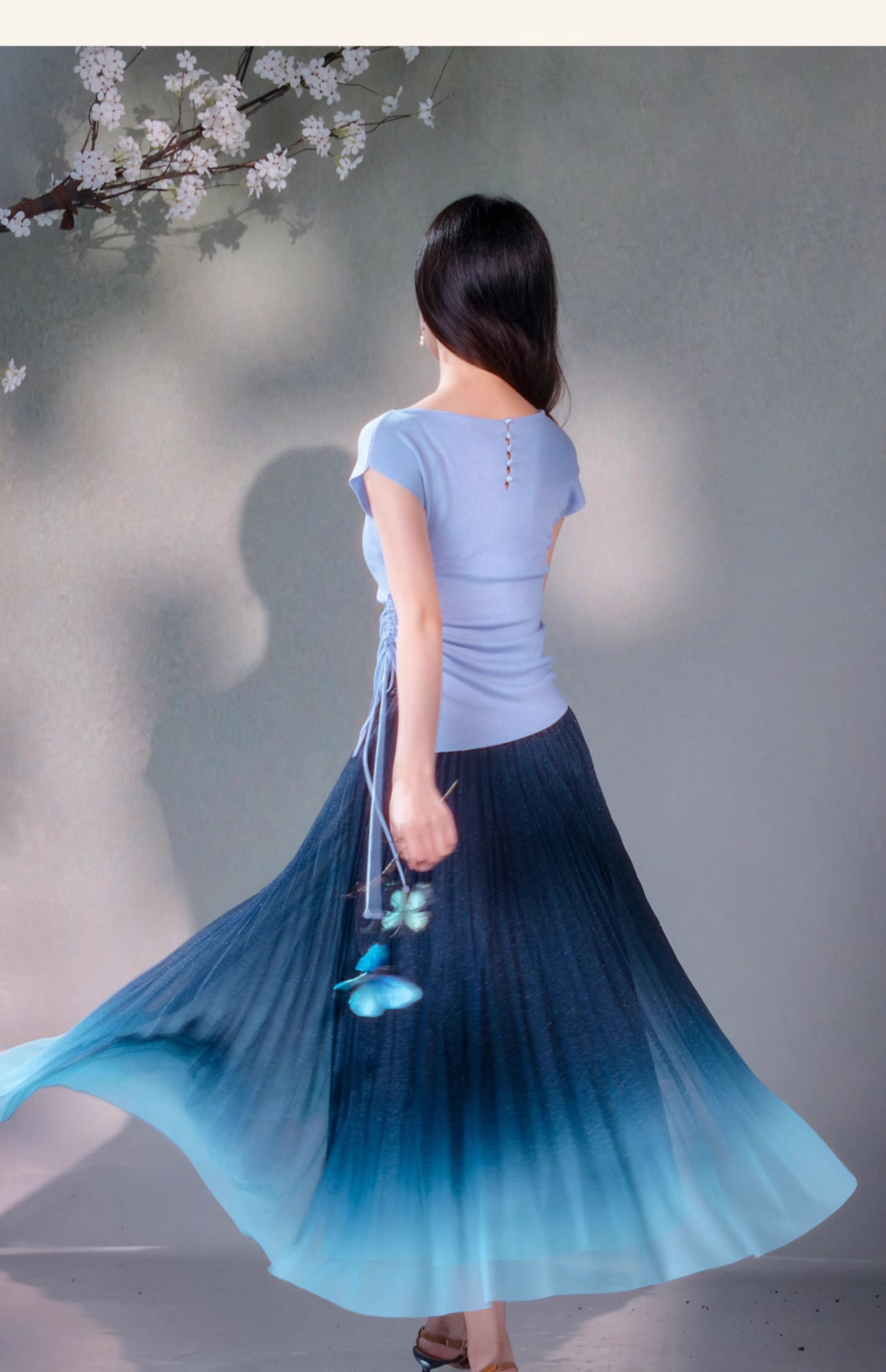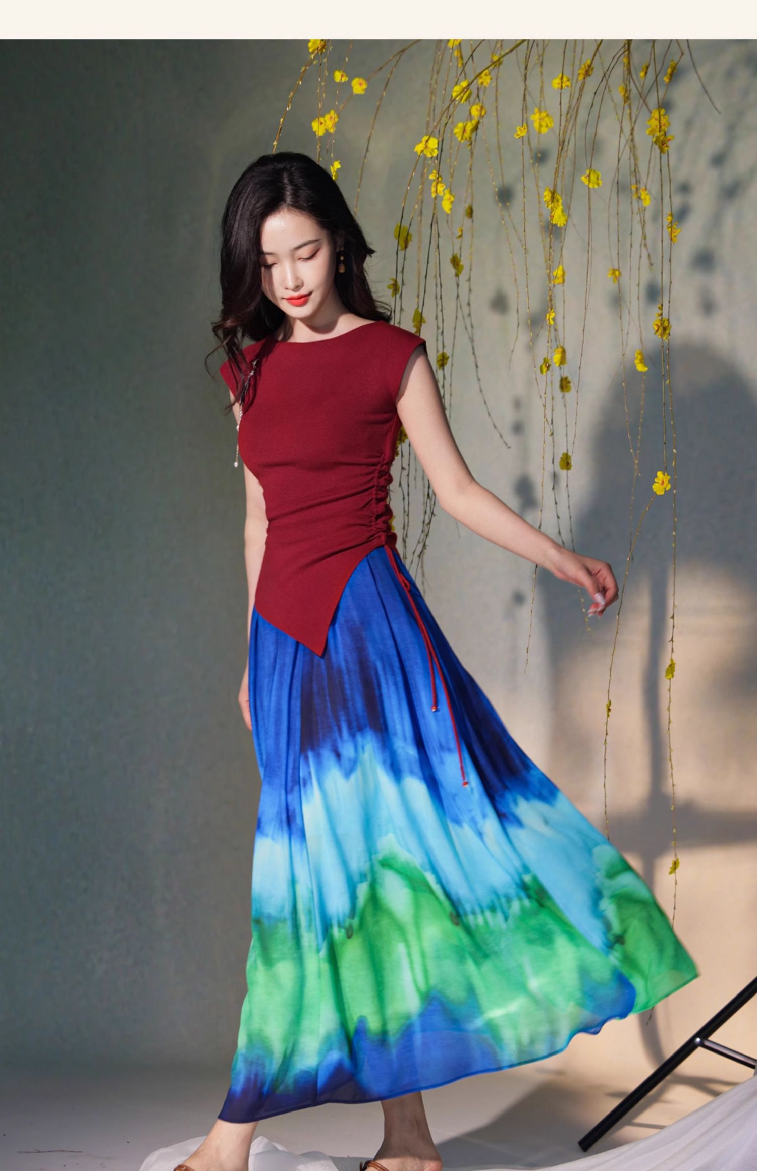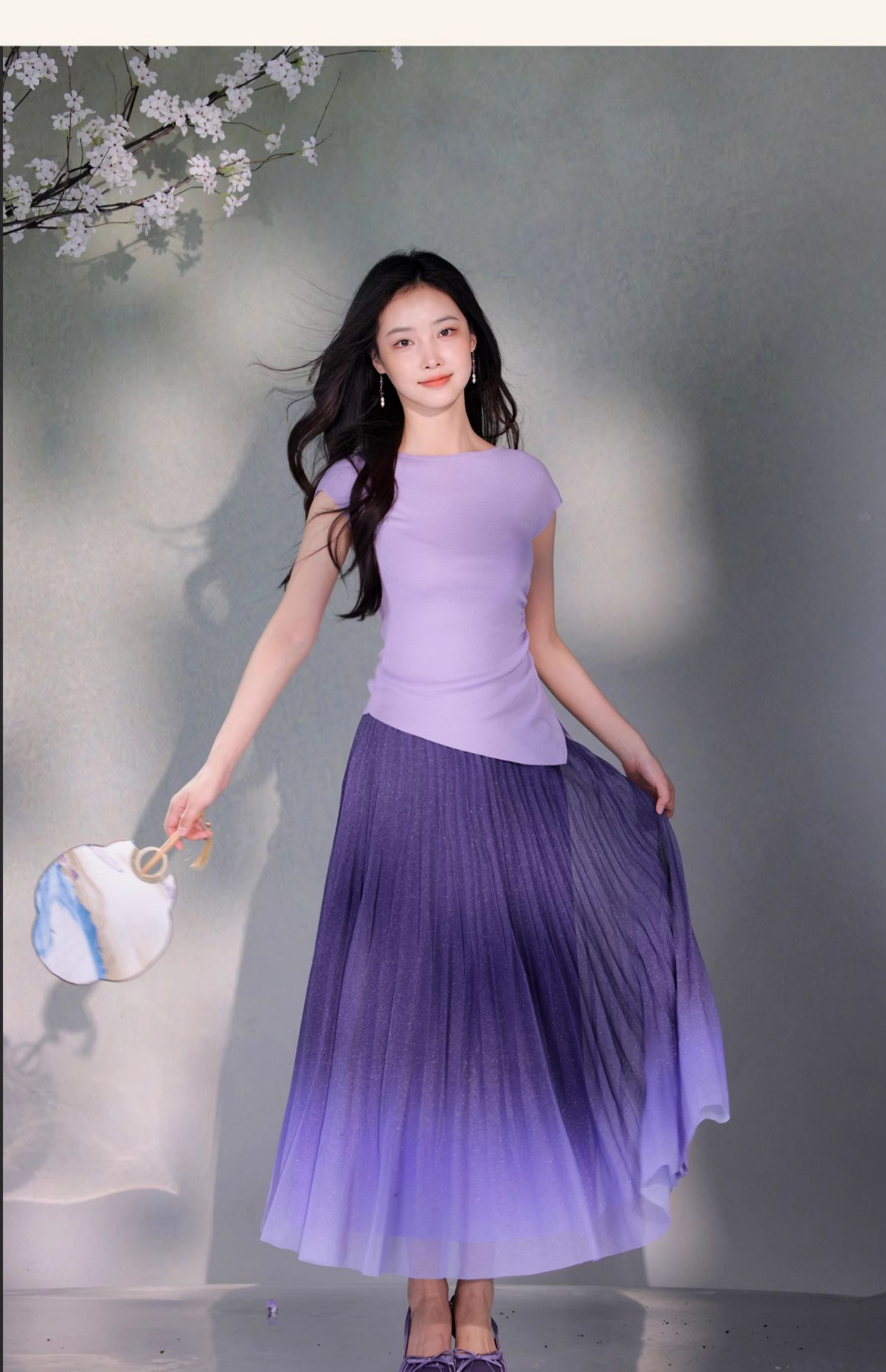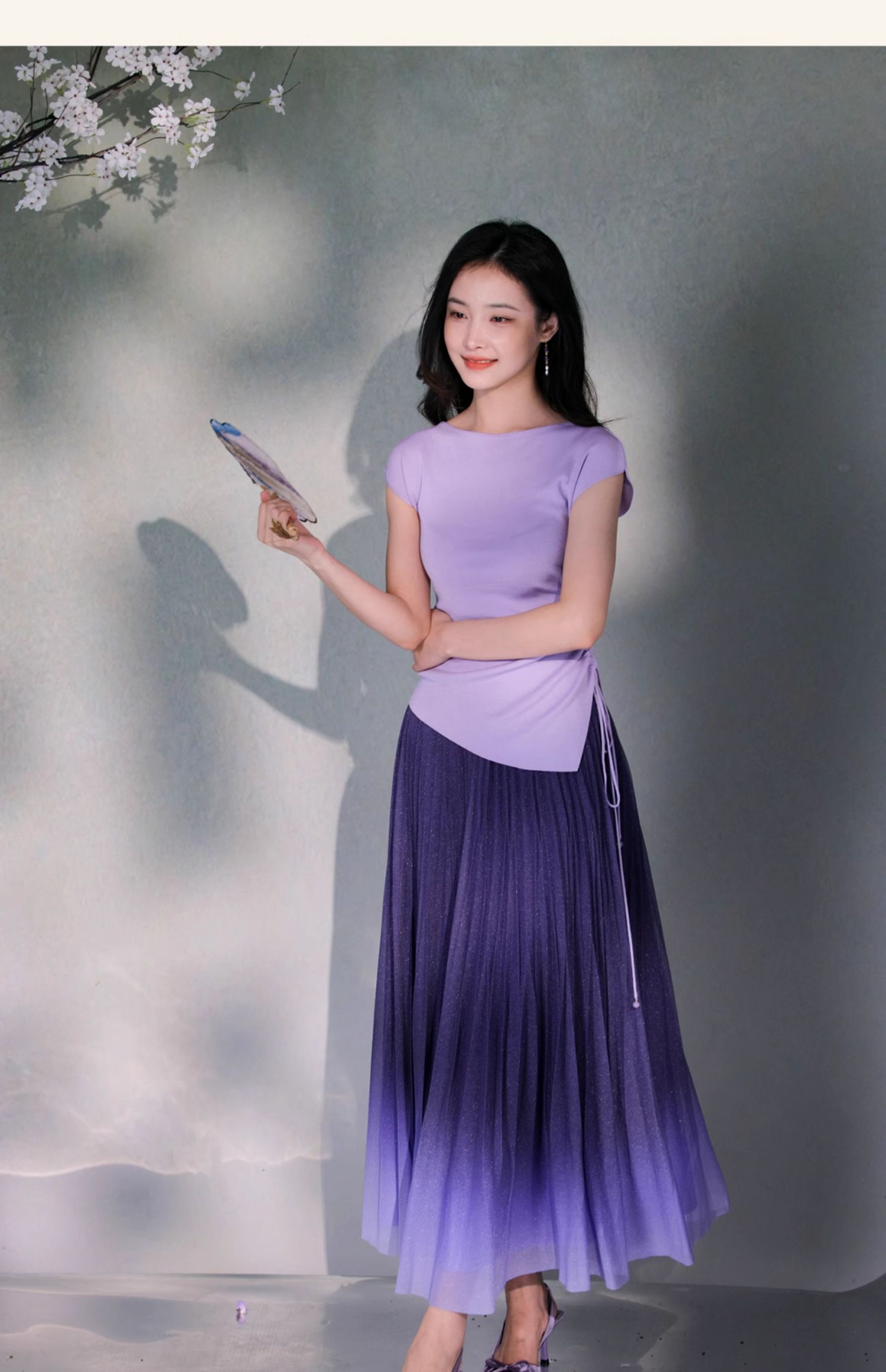 逸红颜博初2025夏新款冰感醋酸羊毛抽褶一字领针织衫新中式上衣女