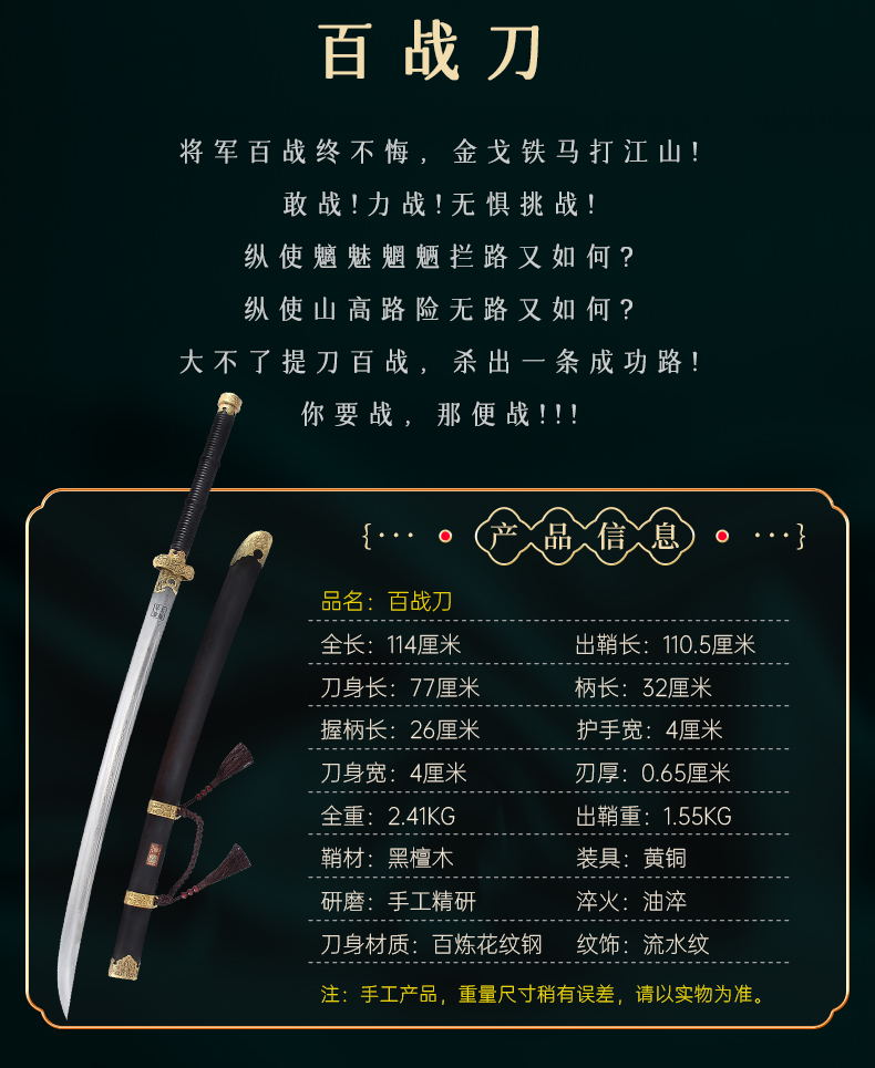 龙泉宝剑厂经典款作品百战刀(未开刃)