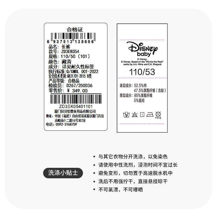迪士尼束脚长裤男童藏青新品长裤ZD3EK054