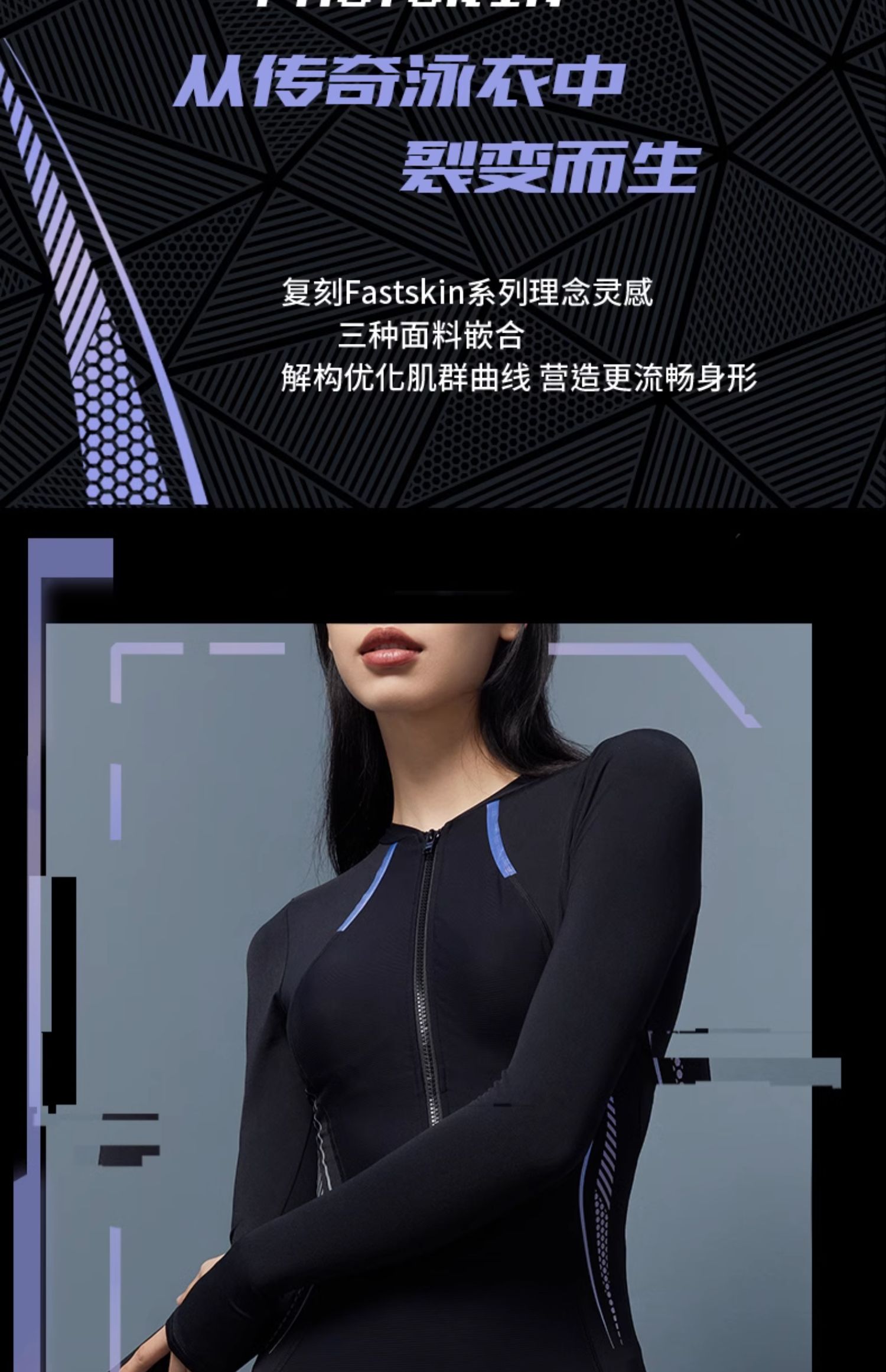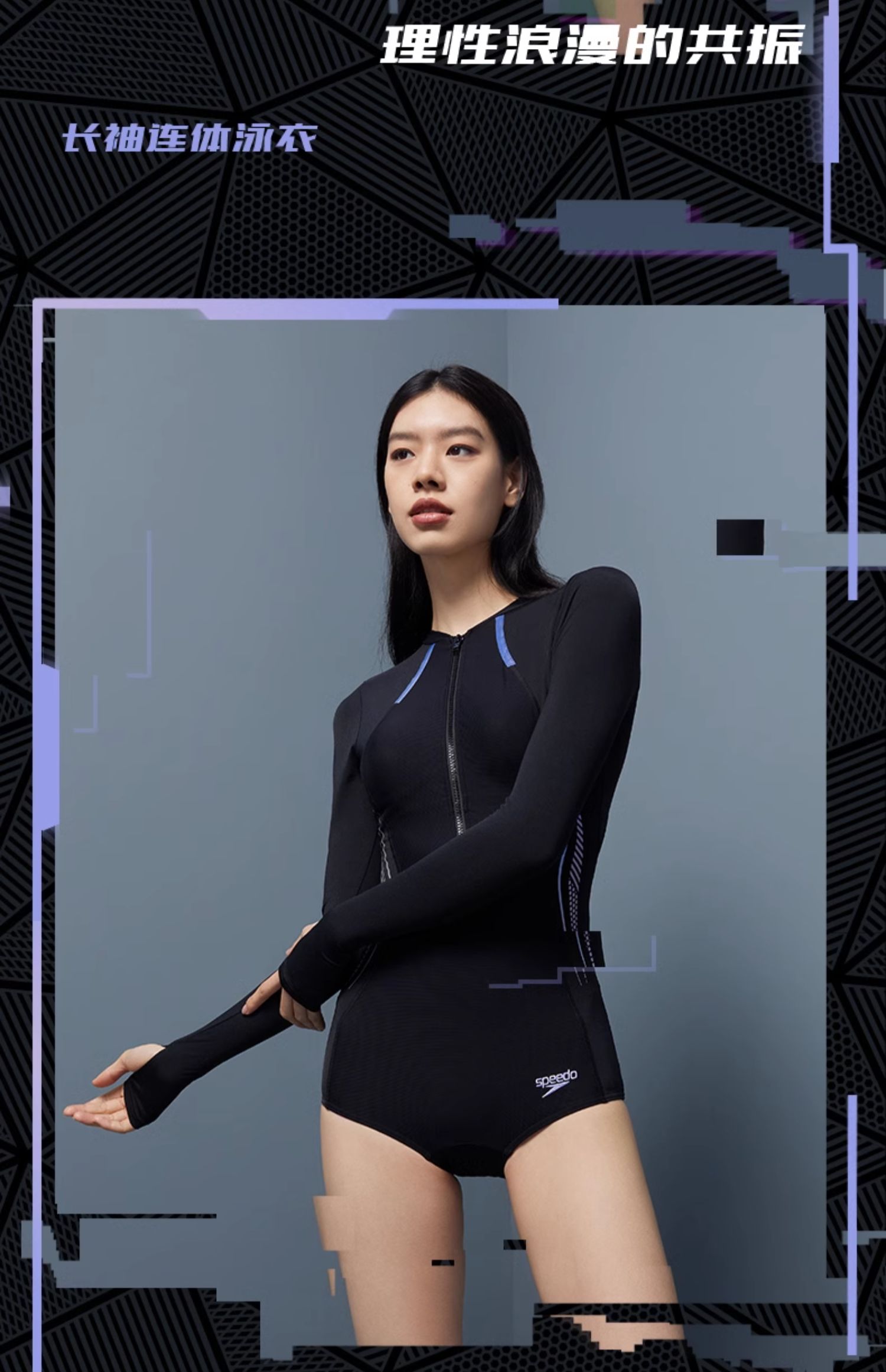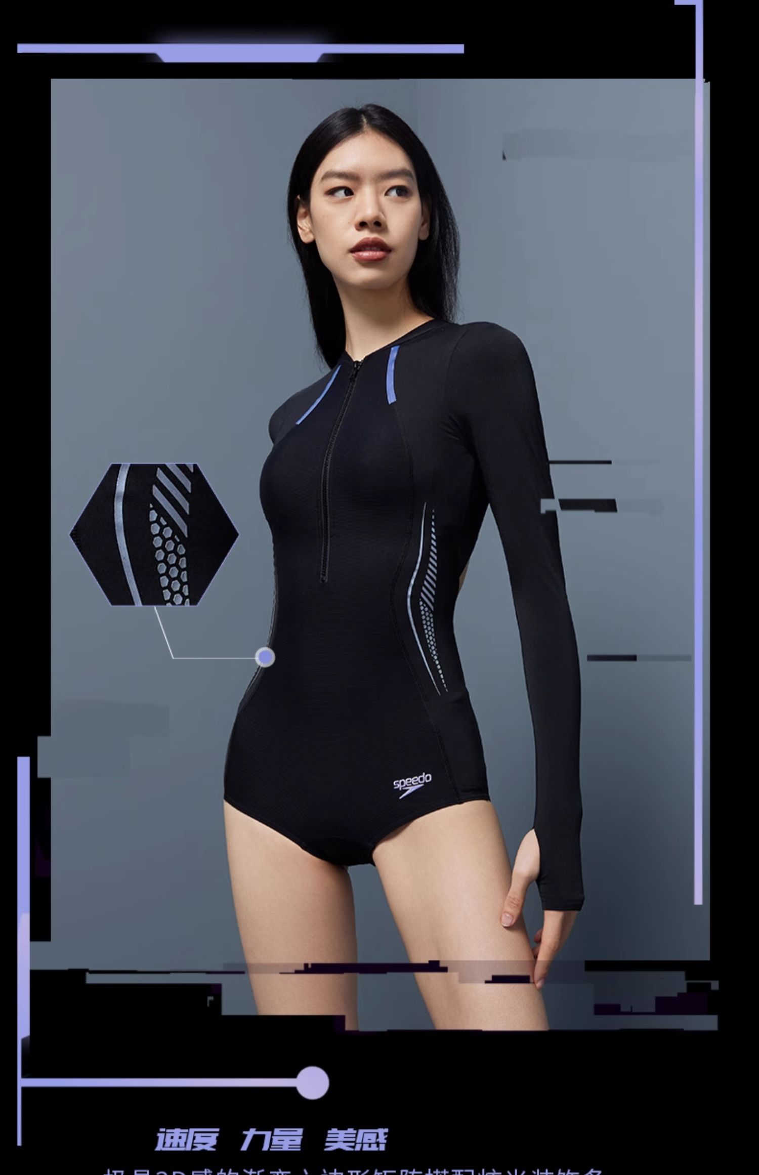 Speedo/速比涛 全新电气矩阵 黑标复刻鲨鱼皮泡温泉长袖泳衣女