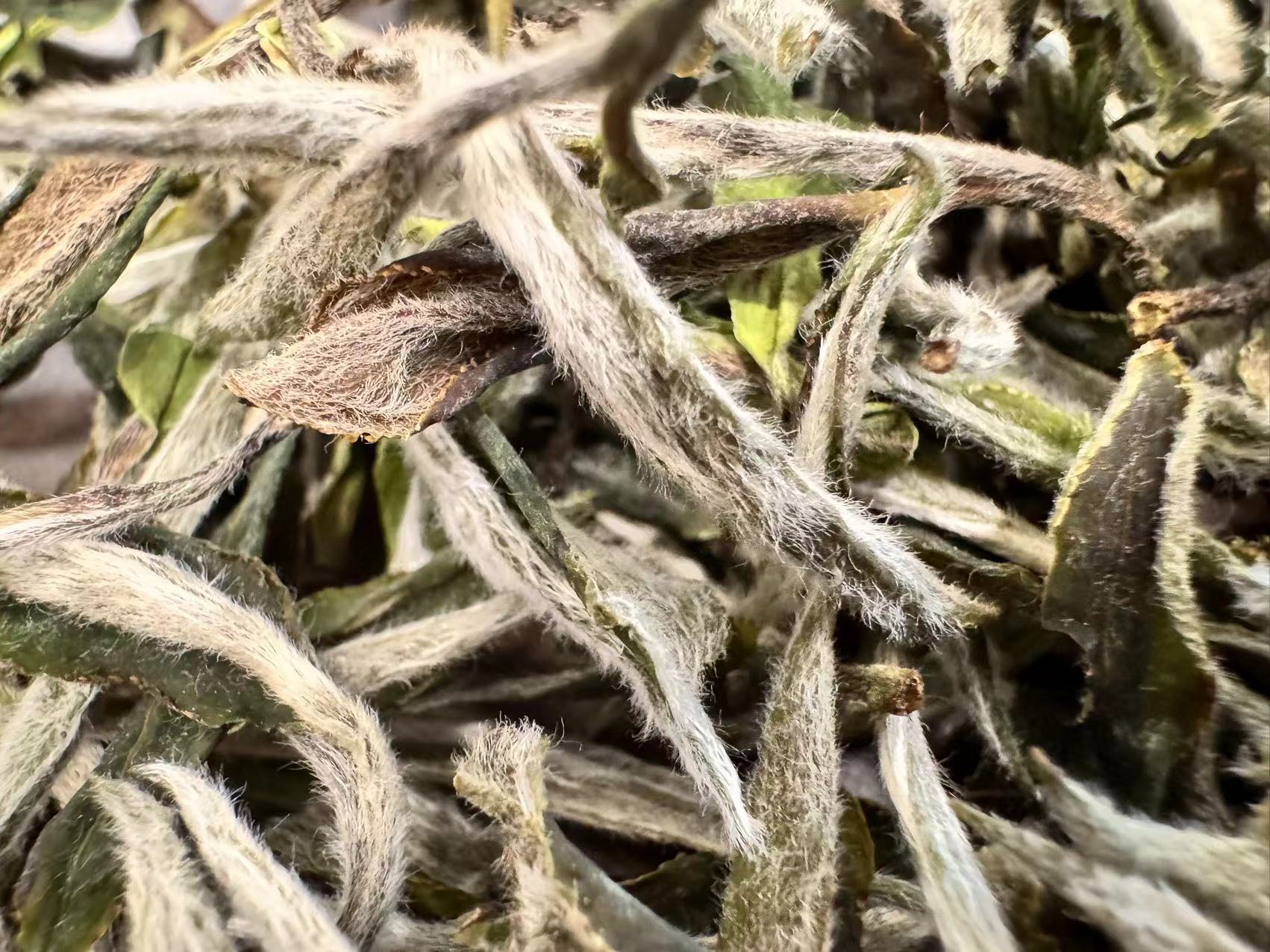 今年的芽头茸毛非常多,这样的茶将来毫香蜜韵更足,气候原因成就的。