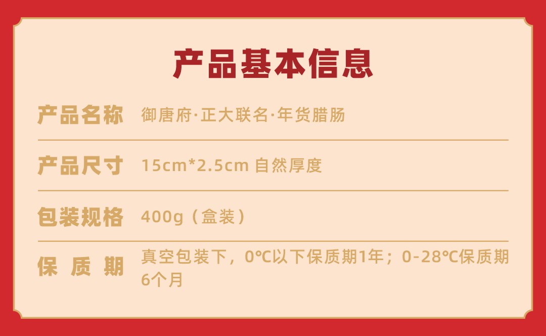 御唐府广式腊肠独立包装400克