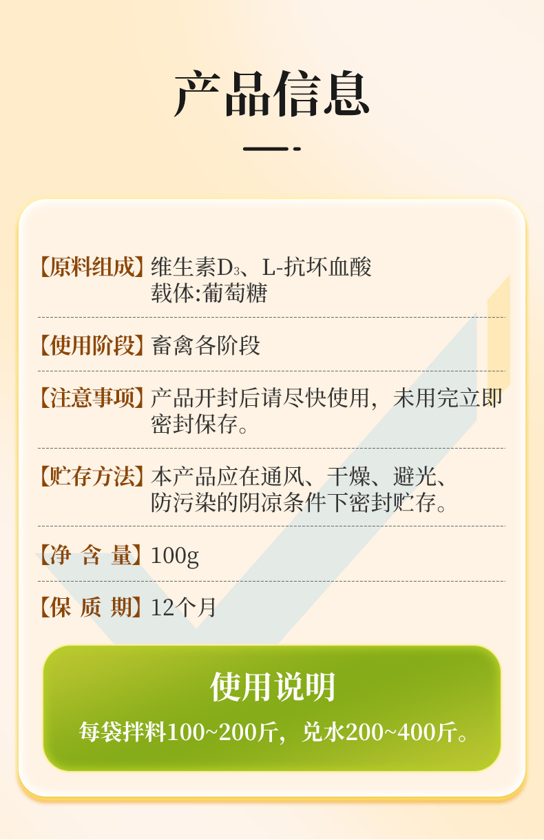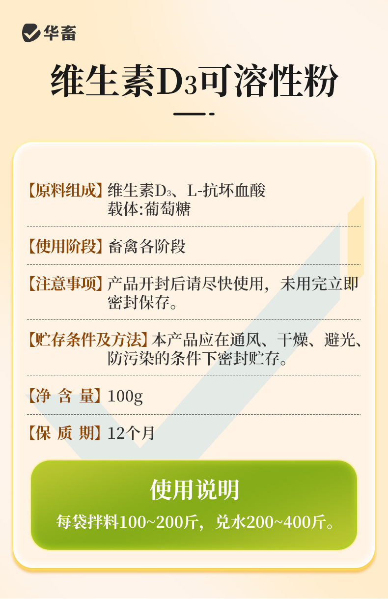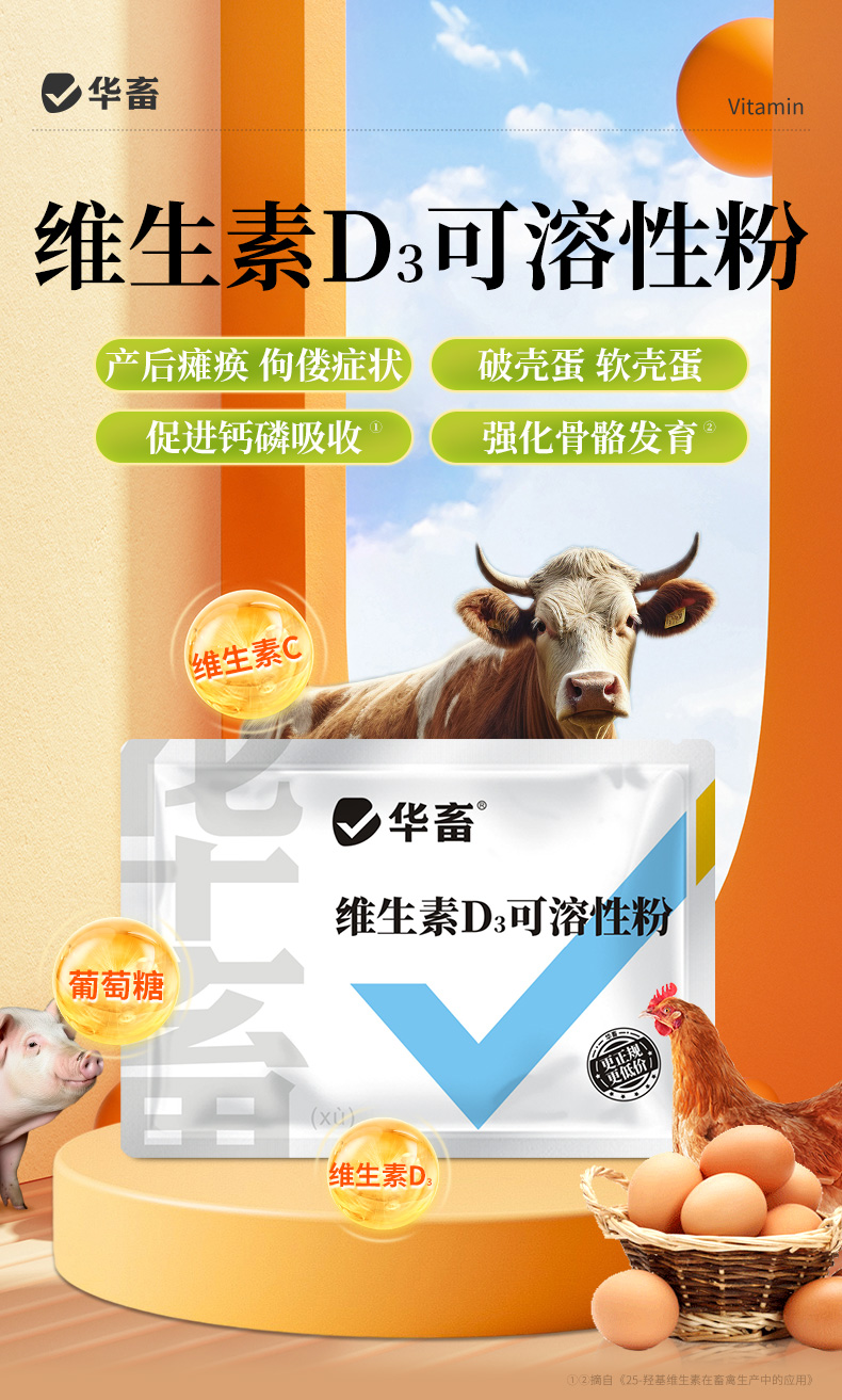 华畜兽用维生素D3可溶性产后瘫痪佝偻病软骨软壳蛋禽鸡猪牛羊腿疼