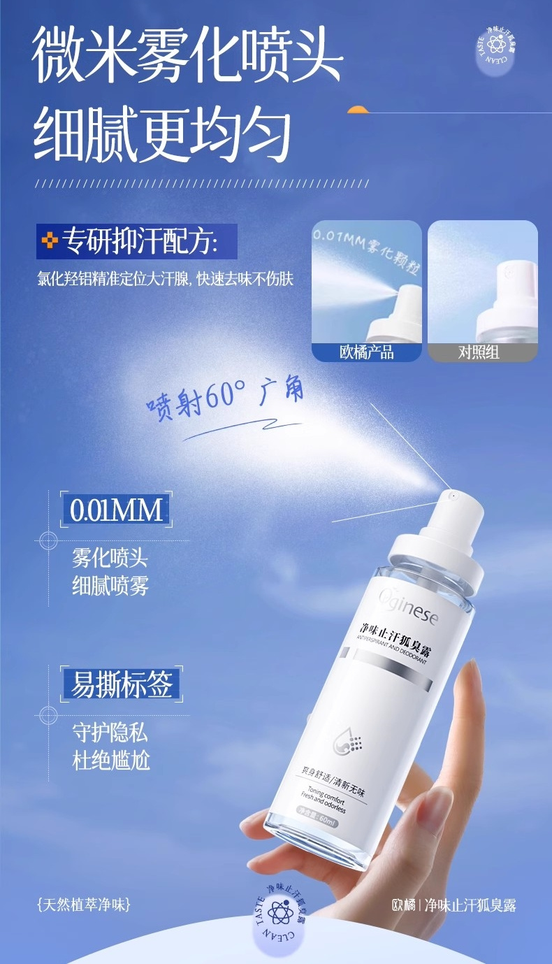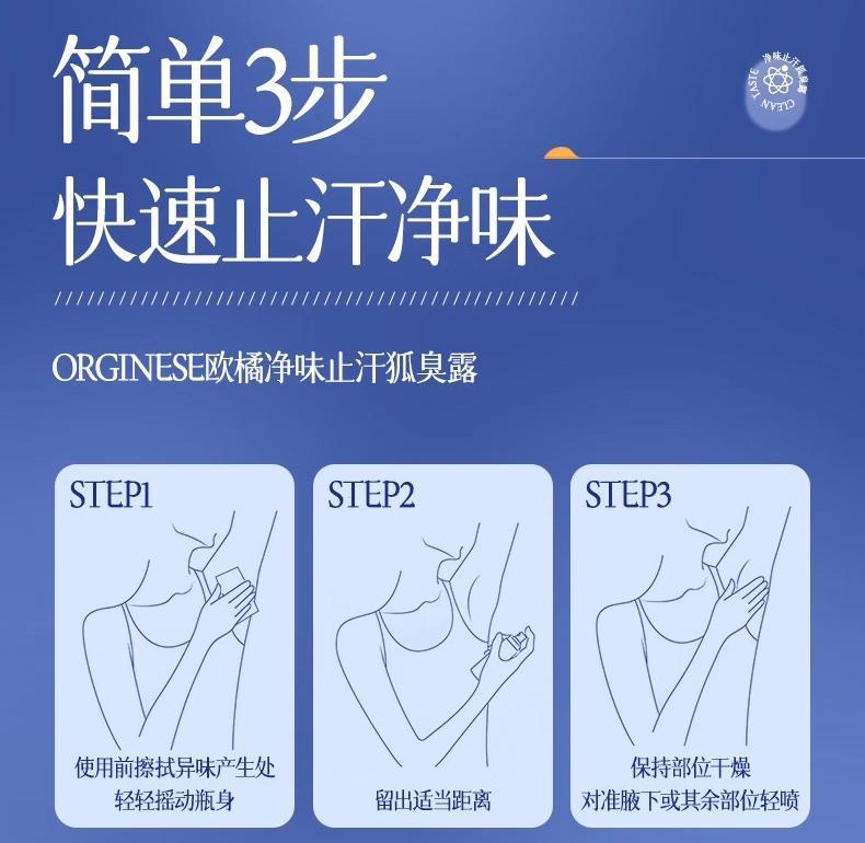 夏日必备【Orginese欧橘去味香体止汗露】让流汗、异味、狐臭不再尴尬,VHLV靶向除臭,深层止汗净味 V草本精华萃取,温和持久清爽 √纳米分子喷雾,速干不脏衣服