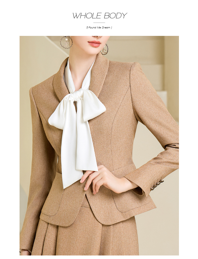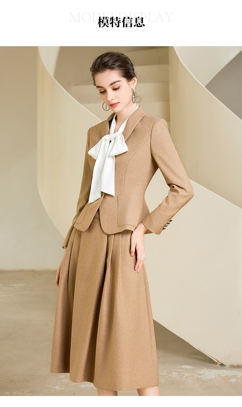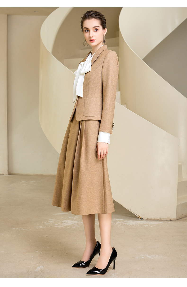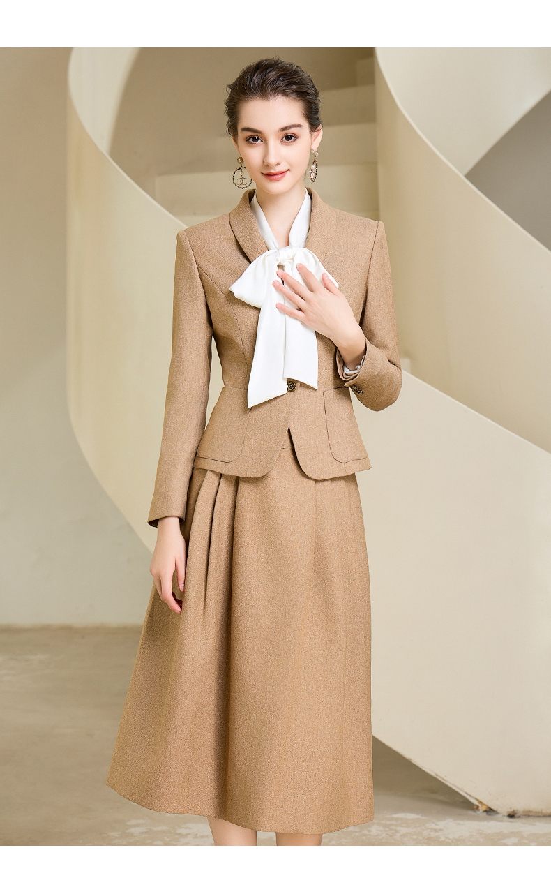 秋季高端时尚气质卡其色职业西装半身裙套装洋气宴会西服外套
