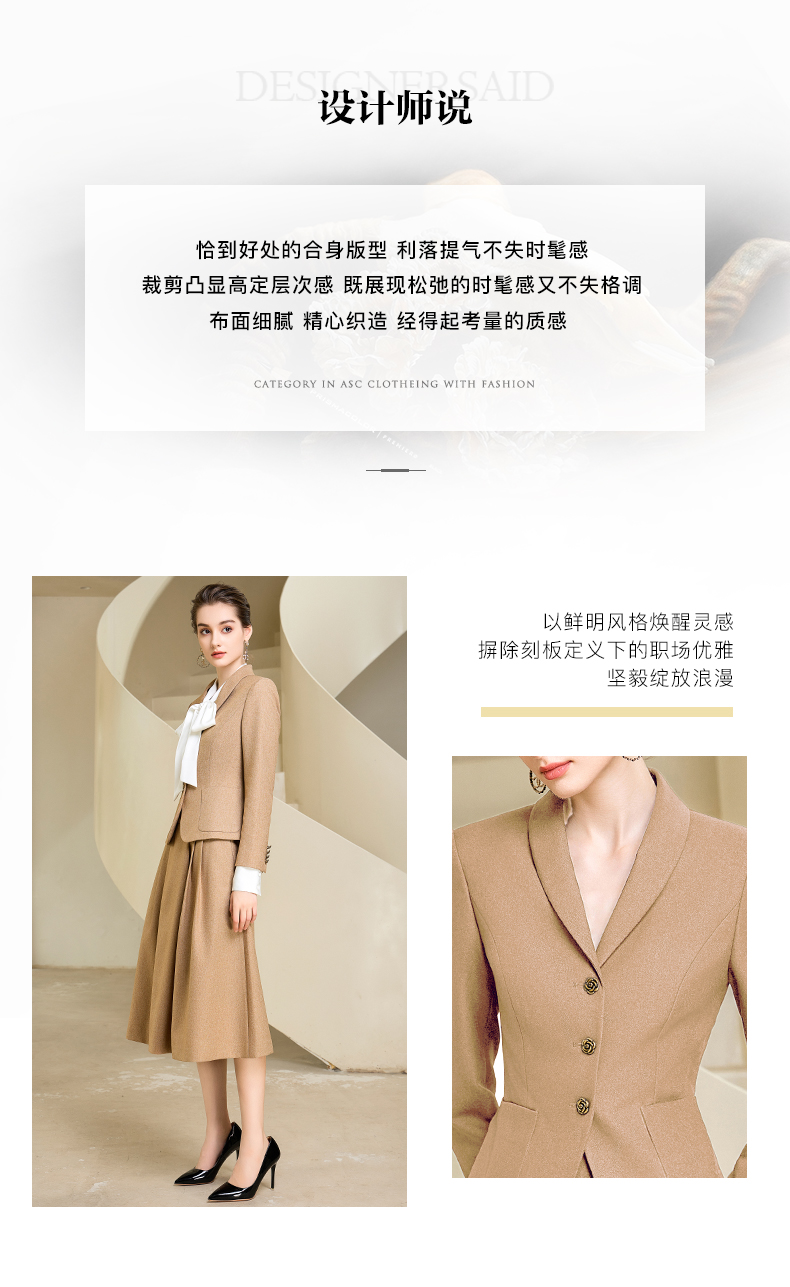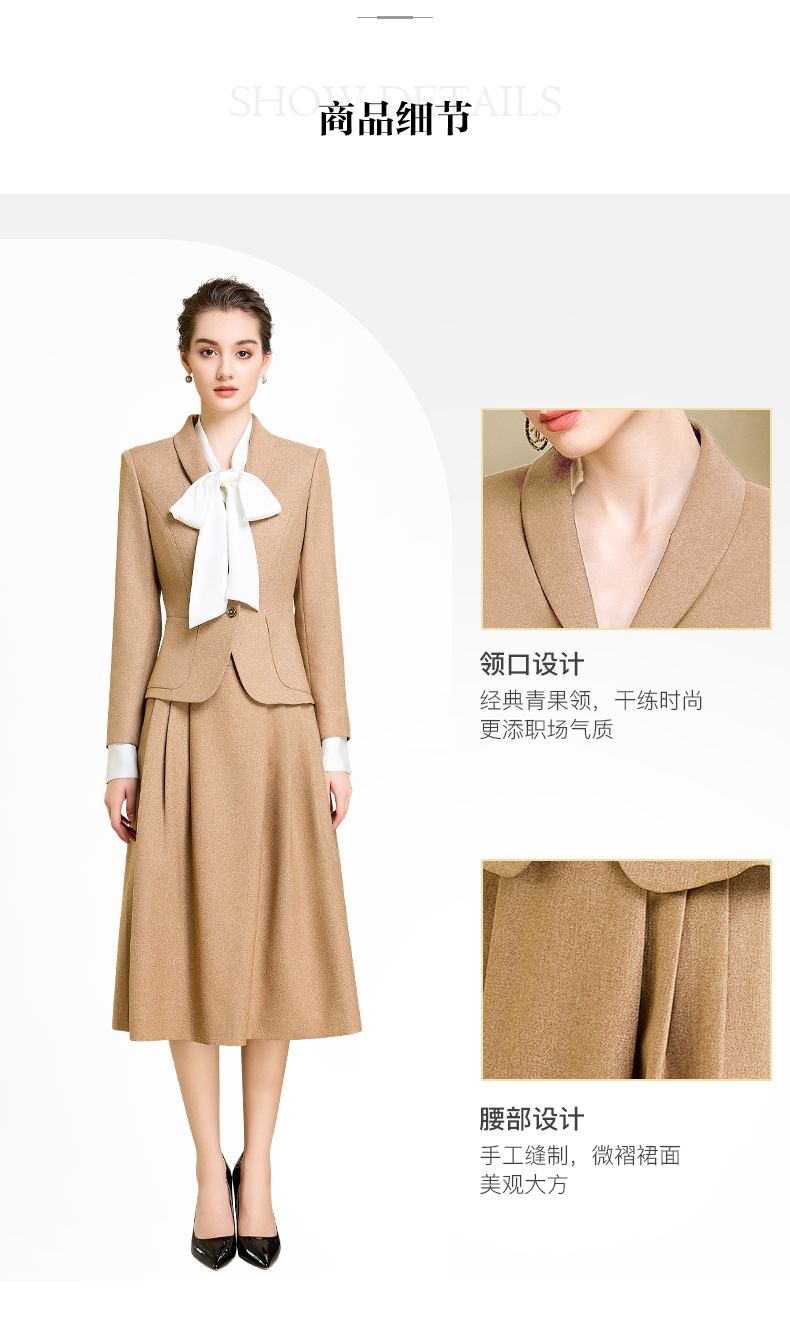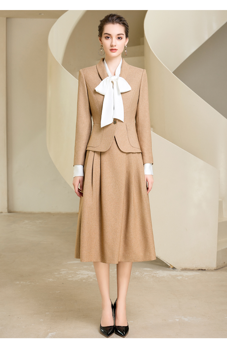 秋季高端时尚气质卡其色职业西装半身裙套装洋气宴会西服外套