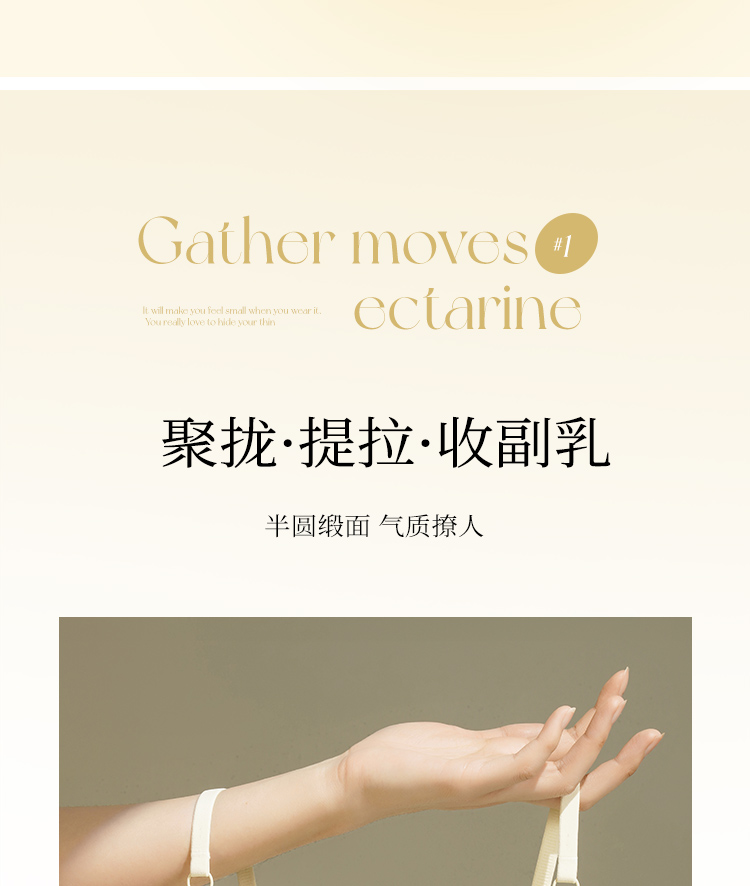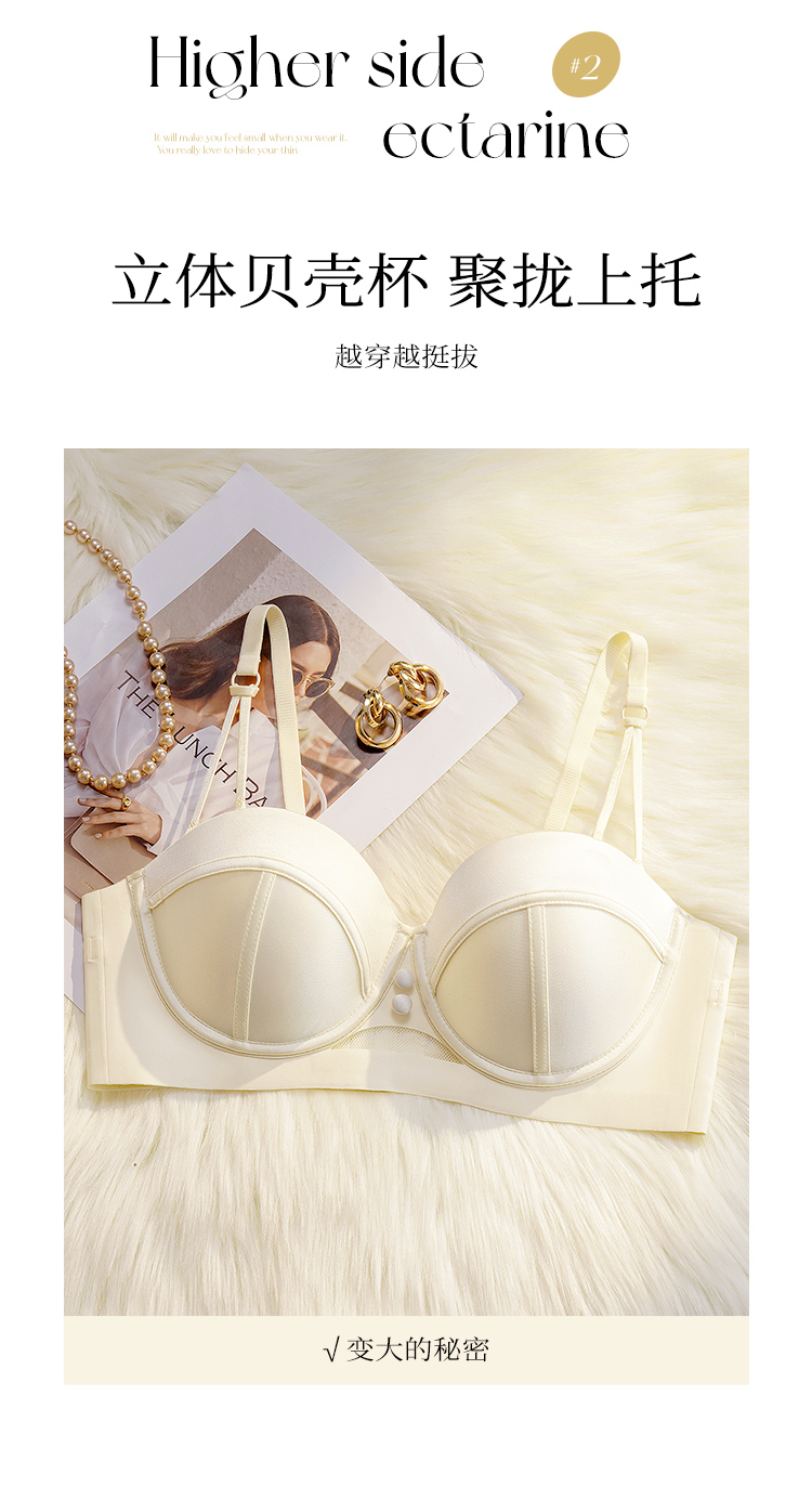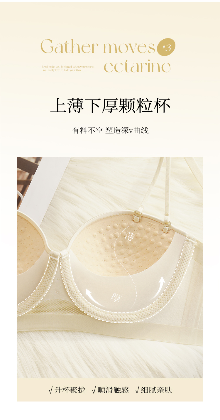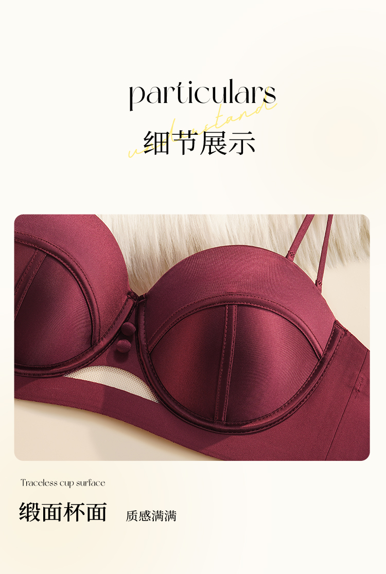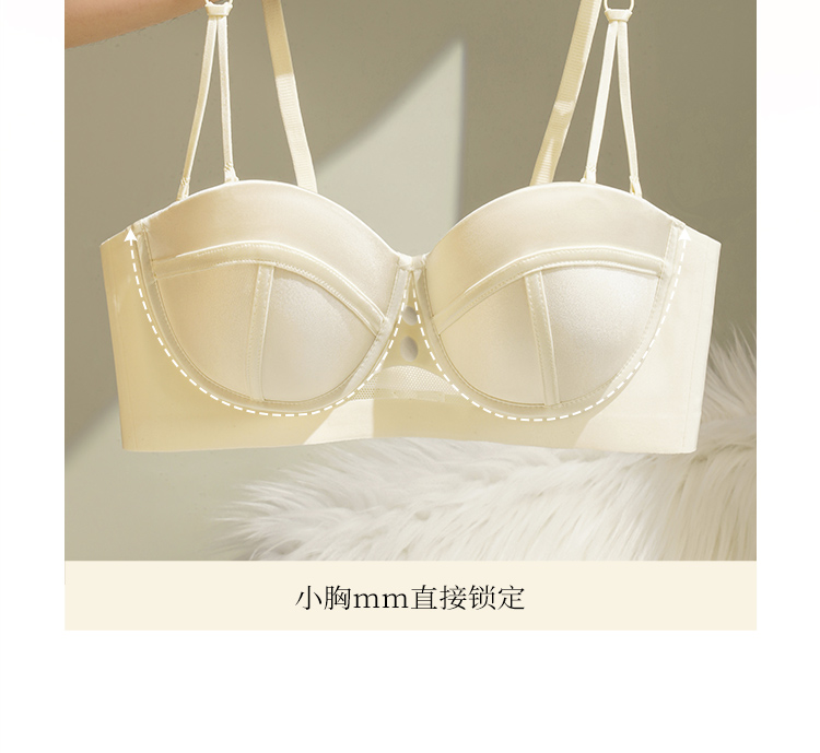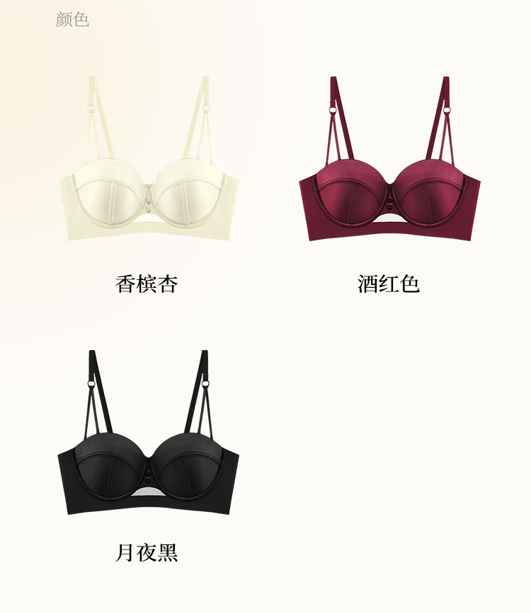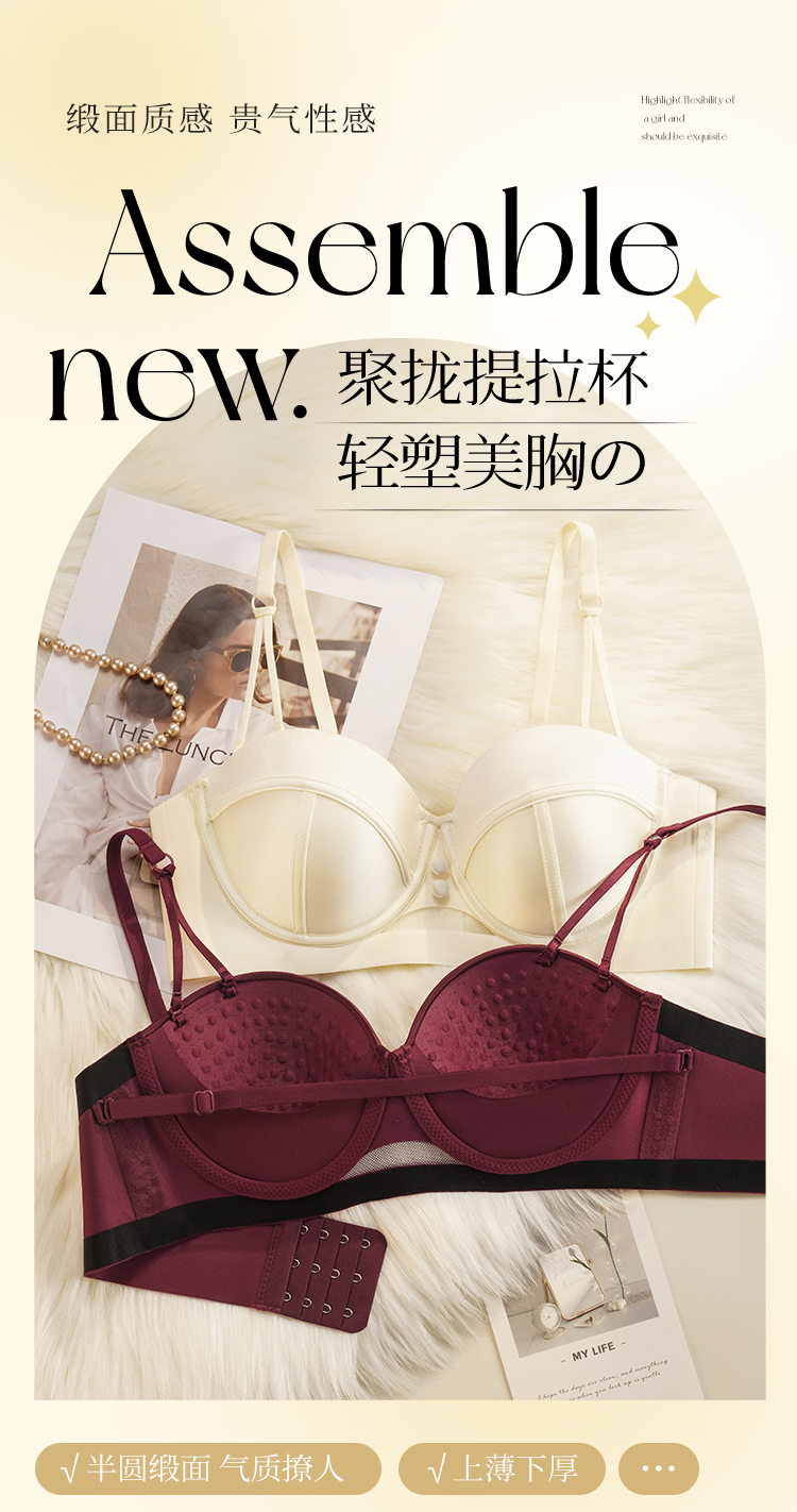 【小胸聚拢】裸感无痕气质缎面半球杯内衣女提拉防垂收副乳文胸罩玉琼佳人