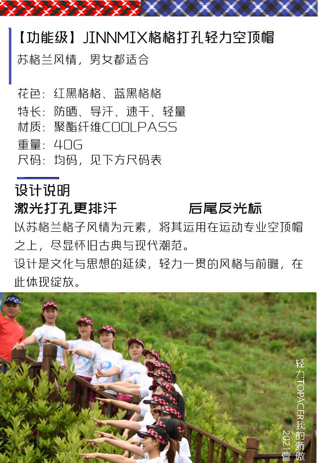以苏格兰格子风情为元素,将其运用在运动专业空顶帽之上,尽显怀旧古典与现代潮范。