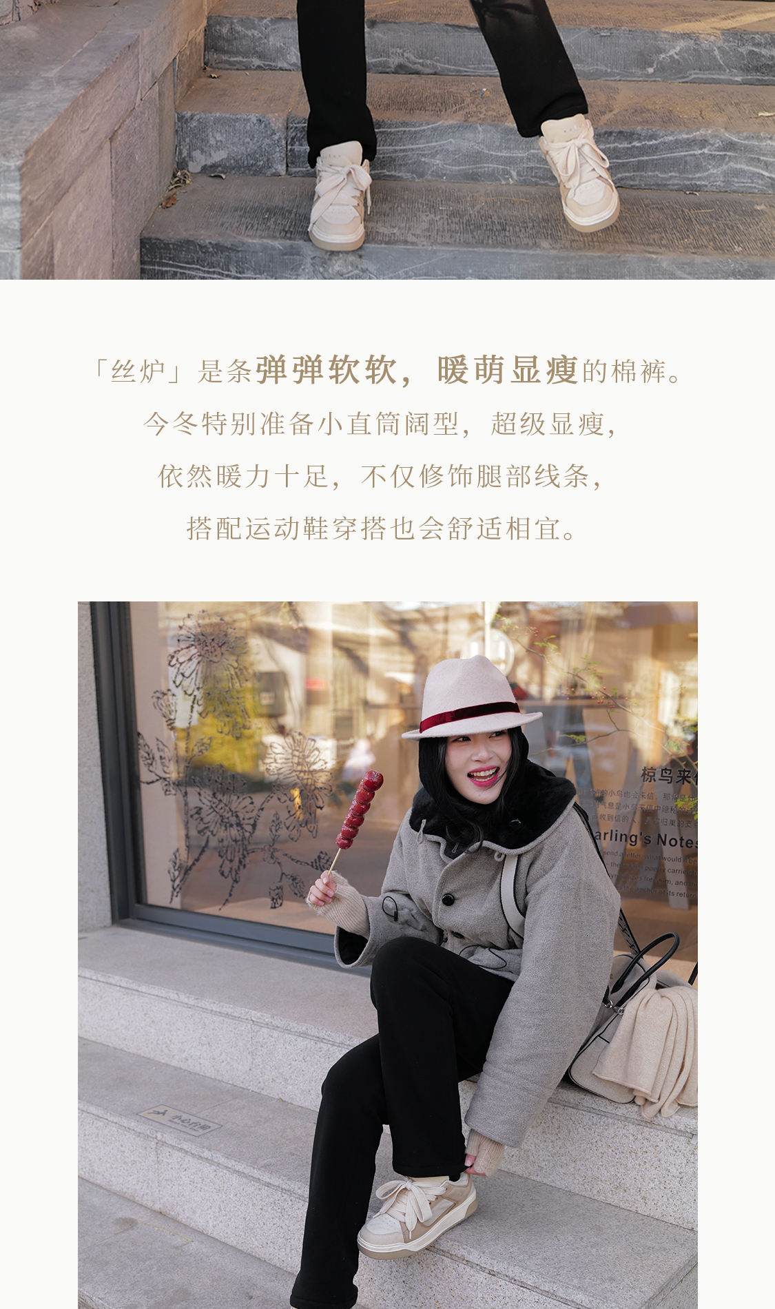 丝炉 蚕丝绒0束缚 软糯高弹松紧腰 小直筒显瘦棉裤 山林曦照