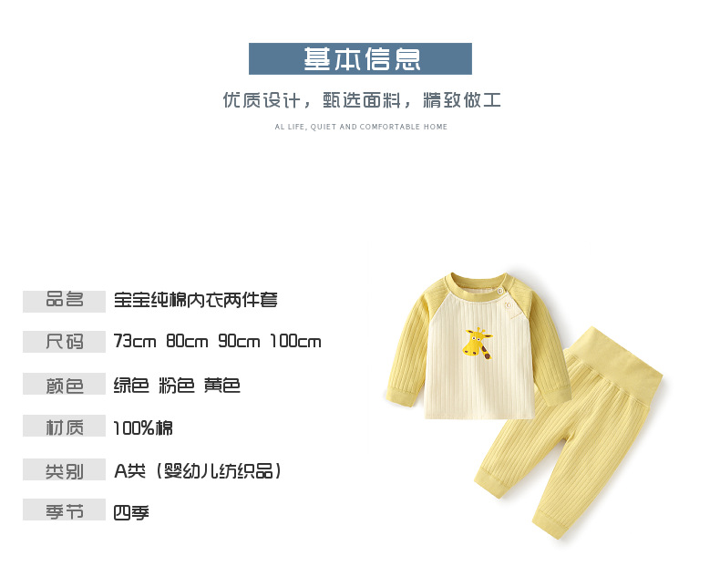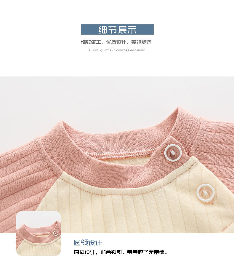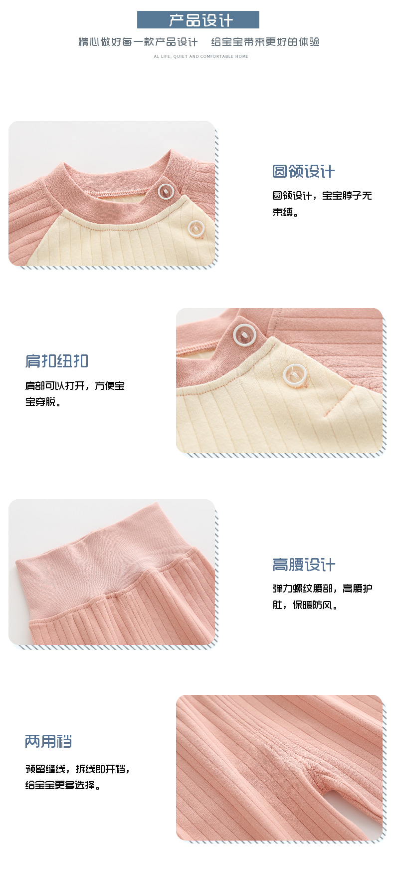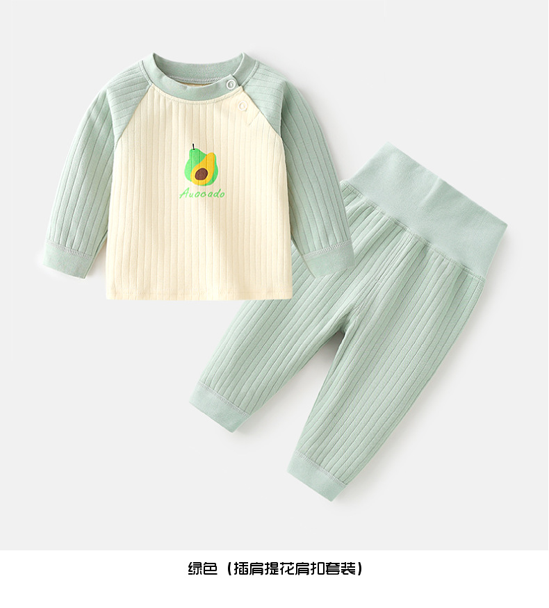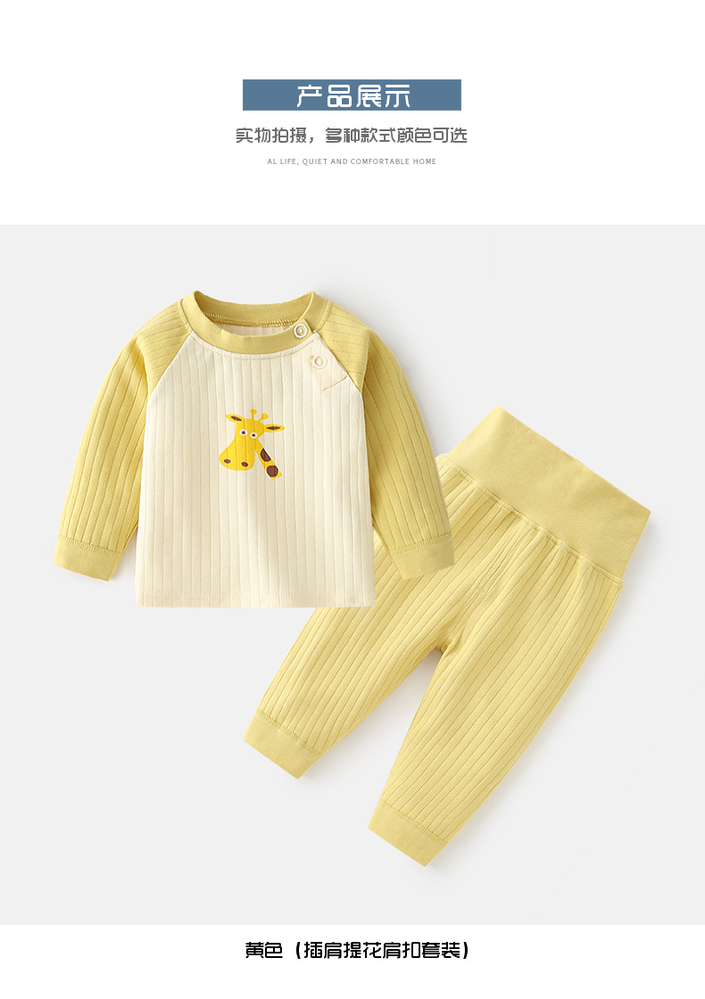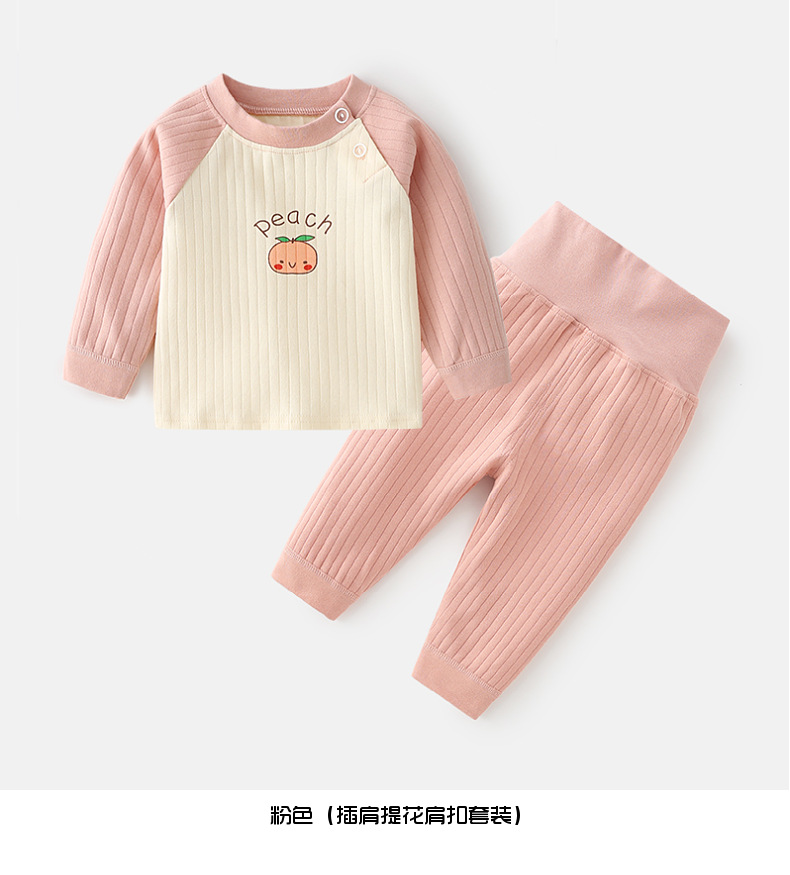 【婴儿纯棉印花内衣肩扣两件套】男女宝宝儿童秋冬提花秋衣高腰秋裤套装