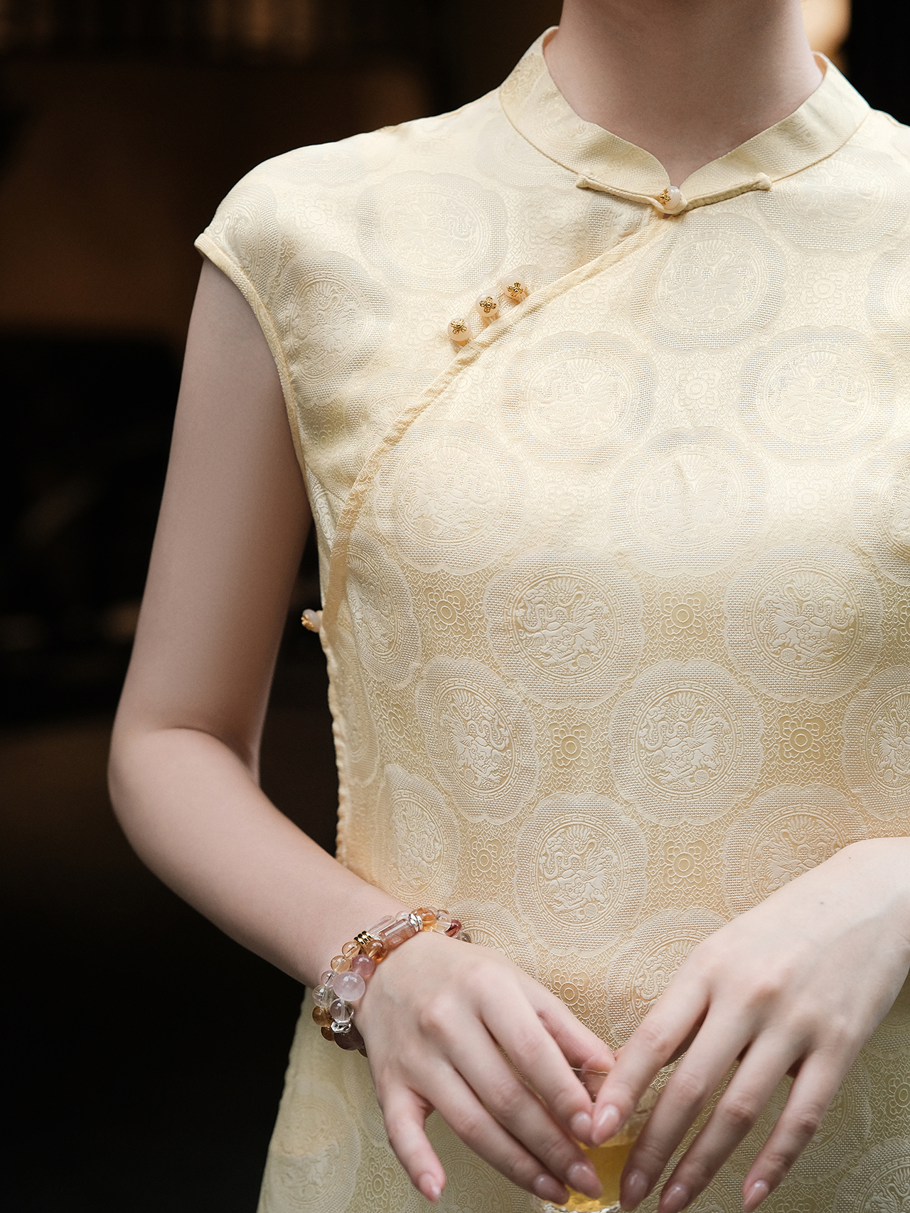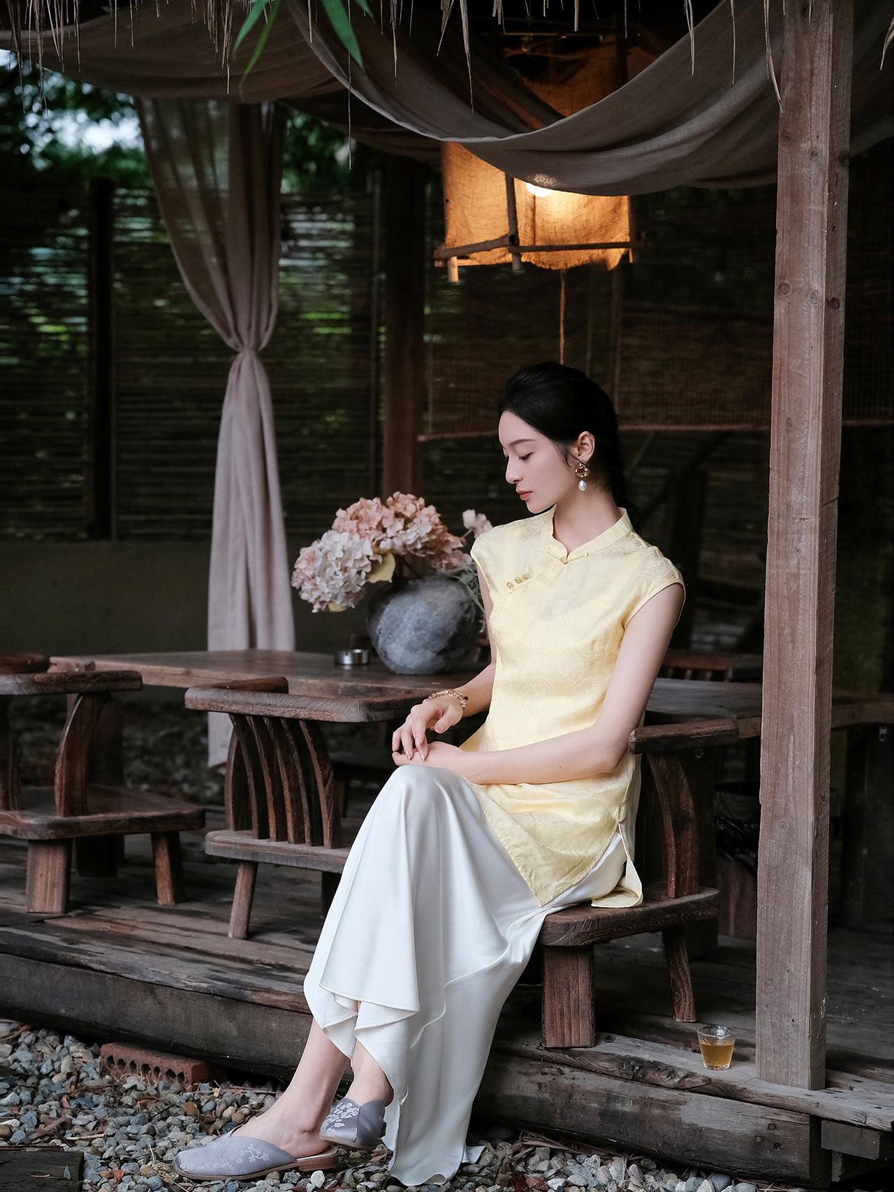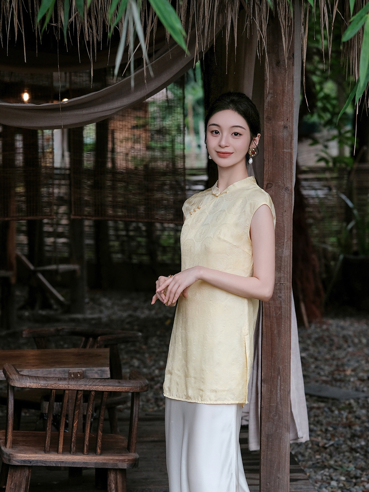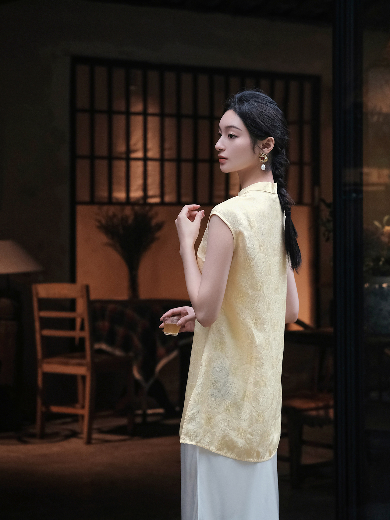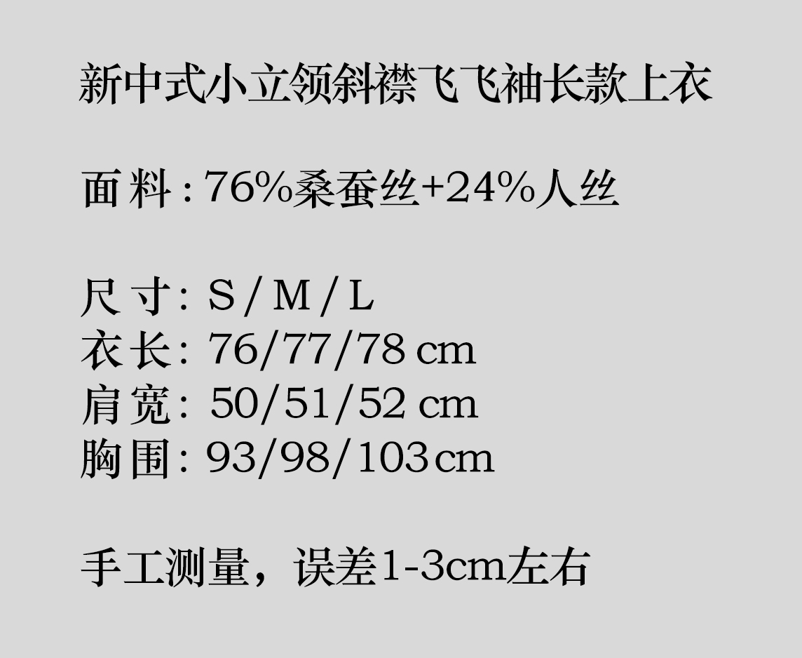 盛唐婧| 新中式小立领斜襟飞飞袖长款上衣