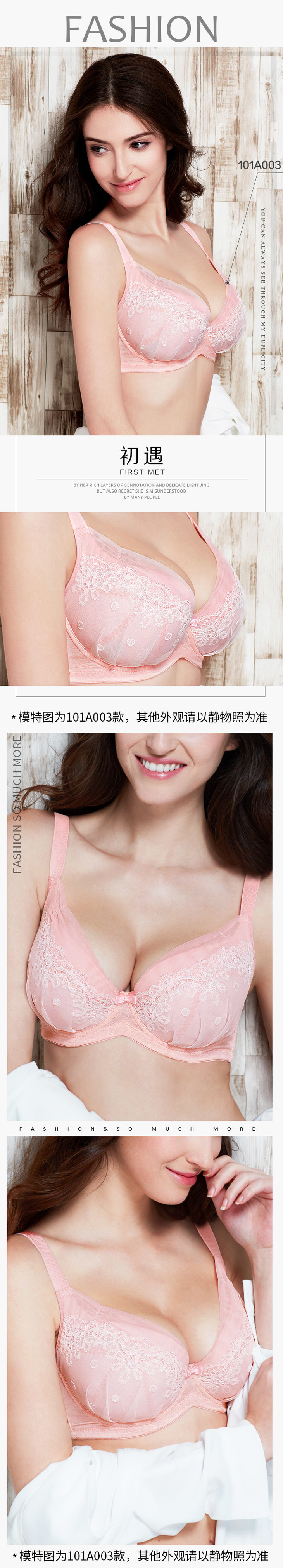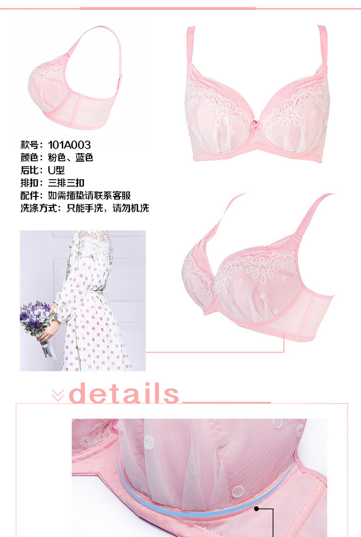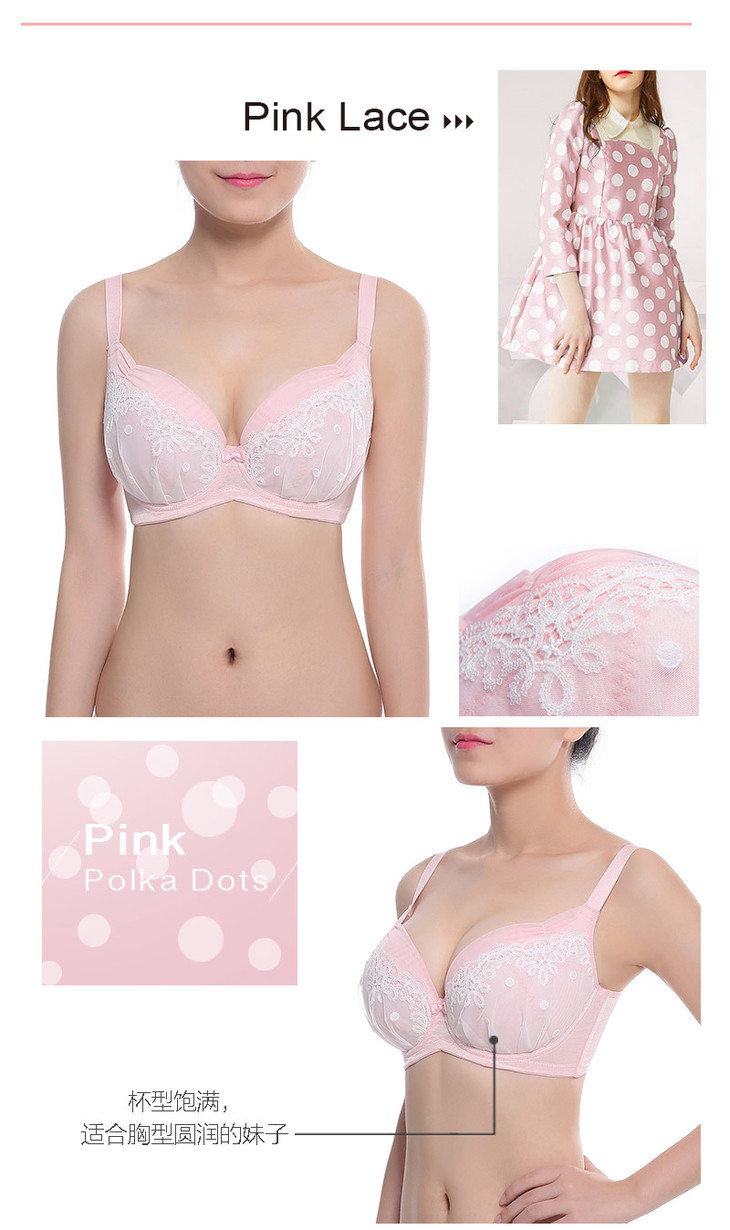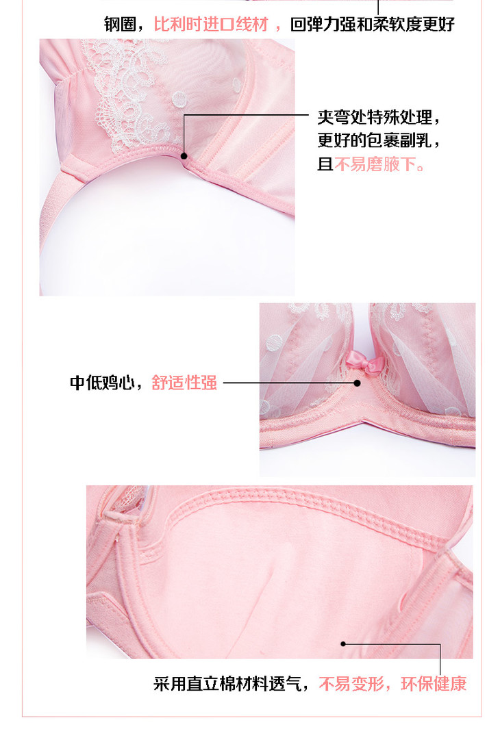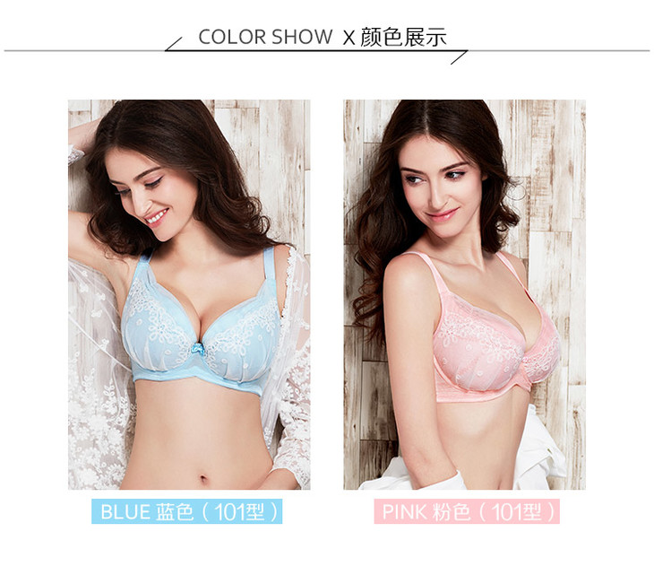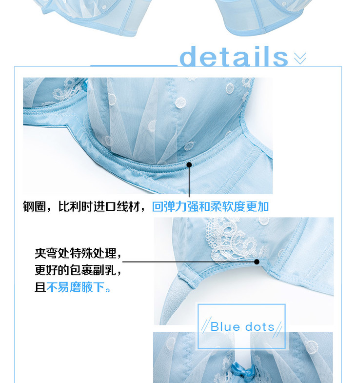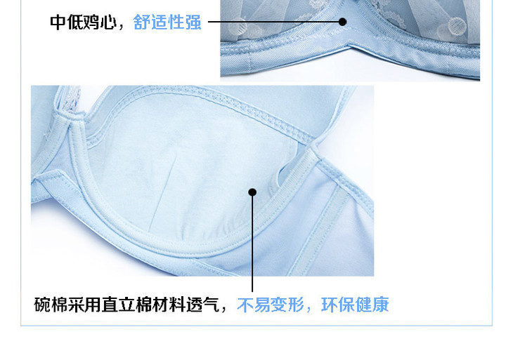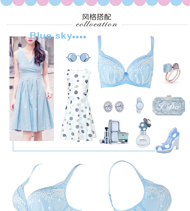 奶糖派 初遇浅蓝色 甜美可爱 少女蕾丝大罩杯文胸 大码内衣舒适