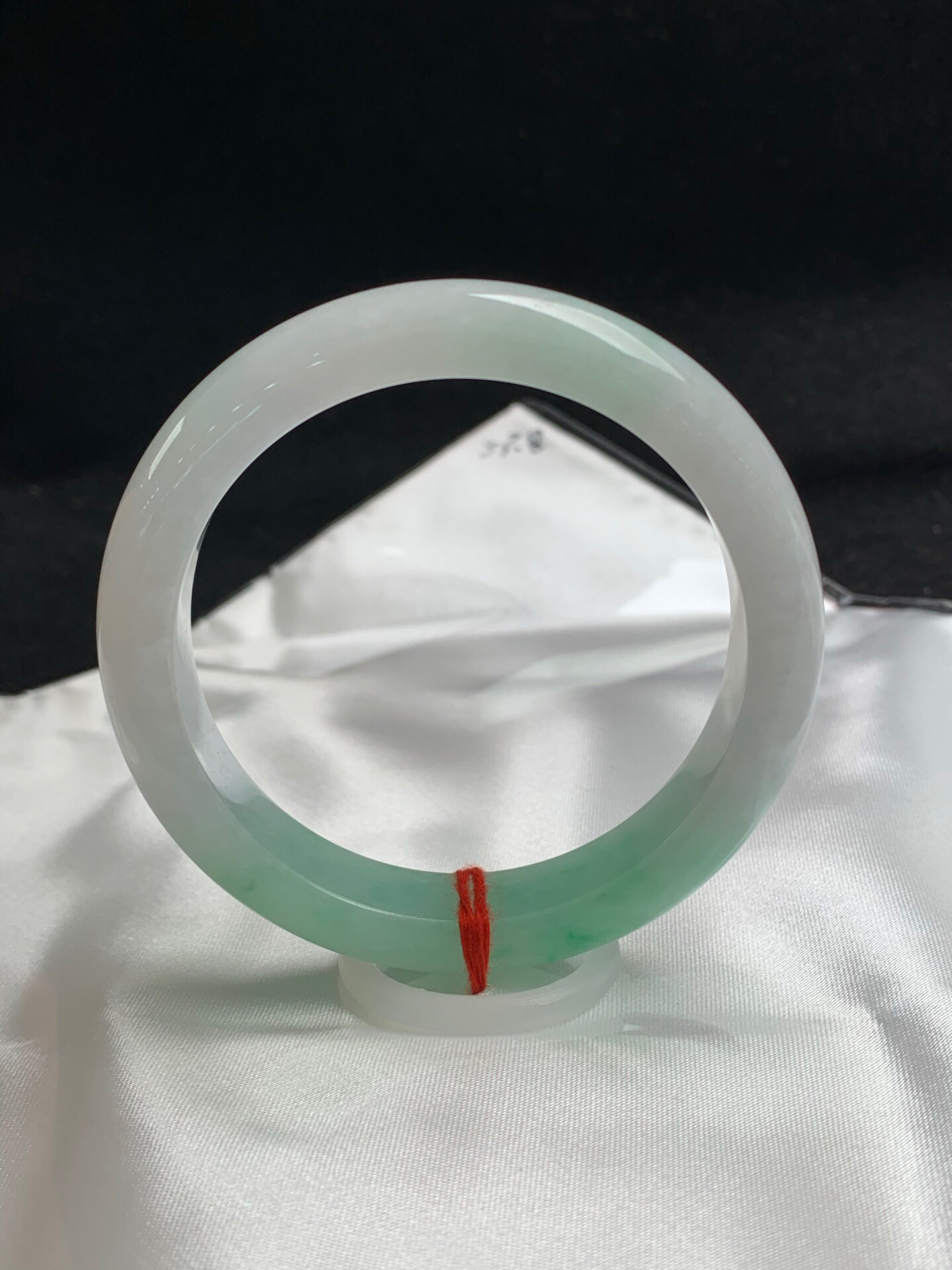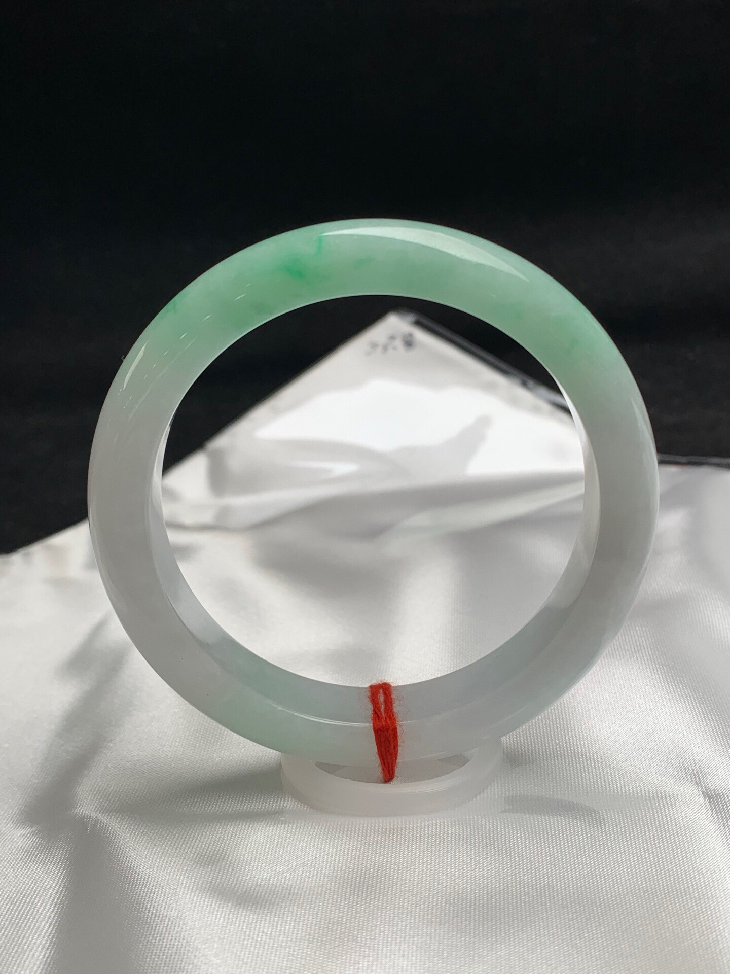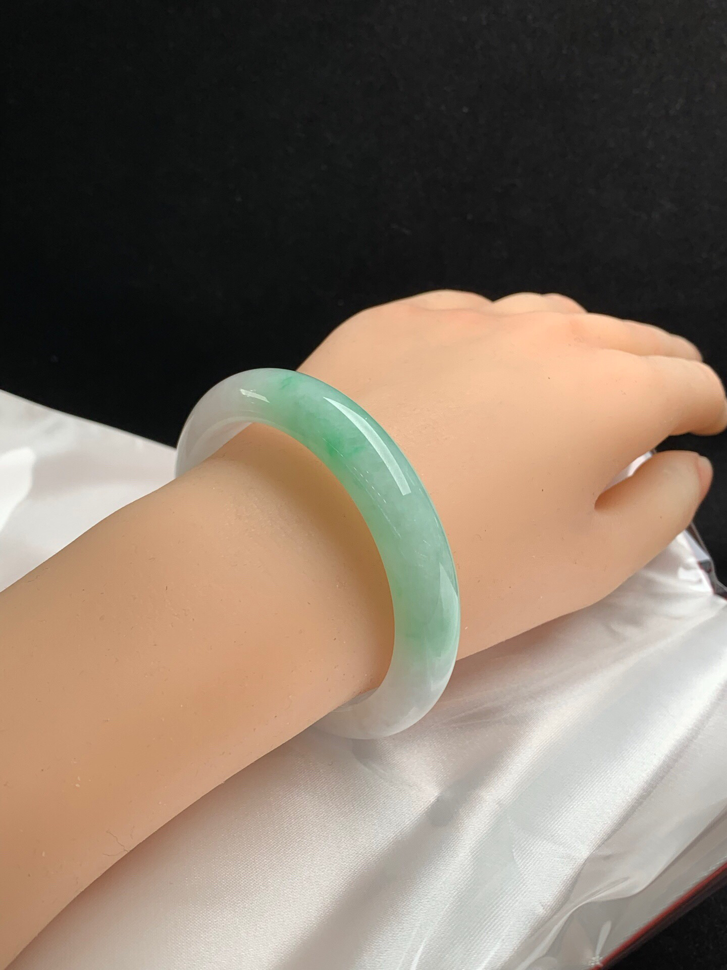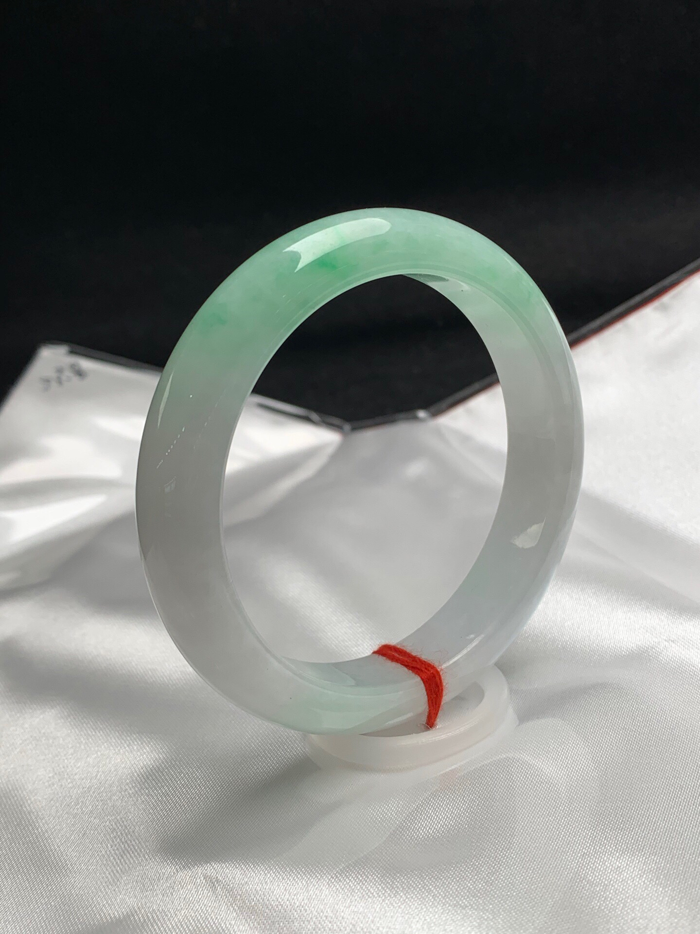 612594,53.6圈口,飘绿正圈平安镯,窄条秀气条形,白底飘一截绿,细腻完美,尺寸:53.6-11.6-8.1,超值价💰20300 #优石客珠宝#香玉荟萃