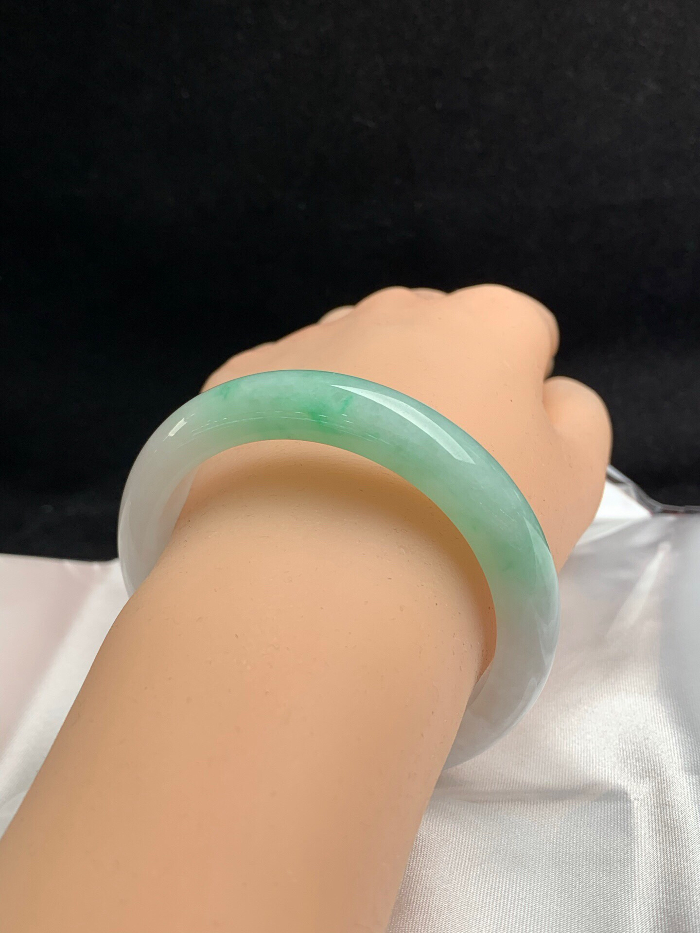 620738,55.8 晴底宽版正圈手镯,14.3-8.5mm,宽版手镯、整条带浅浅的底色,底子均匀干净完美,上手很大气!