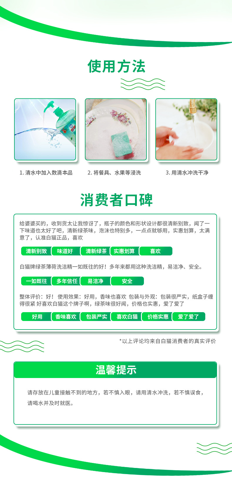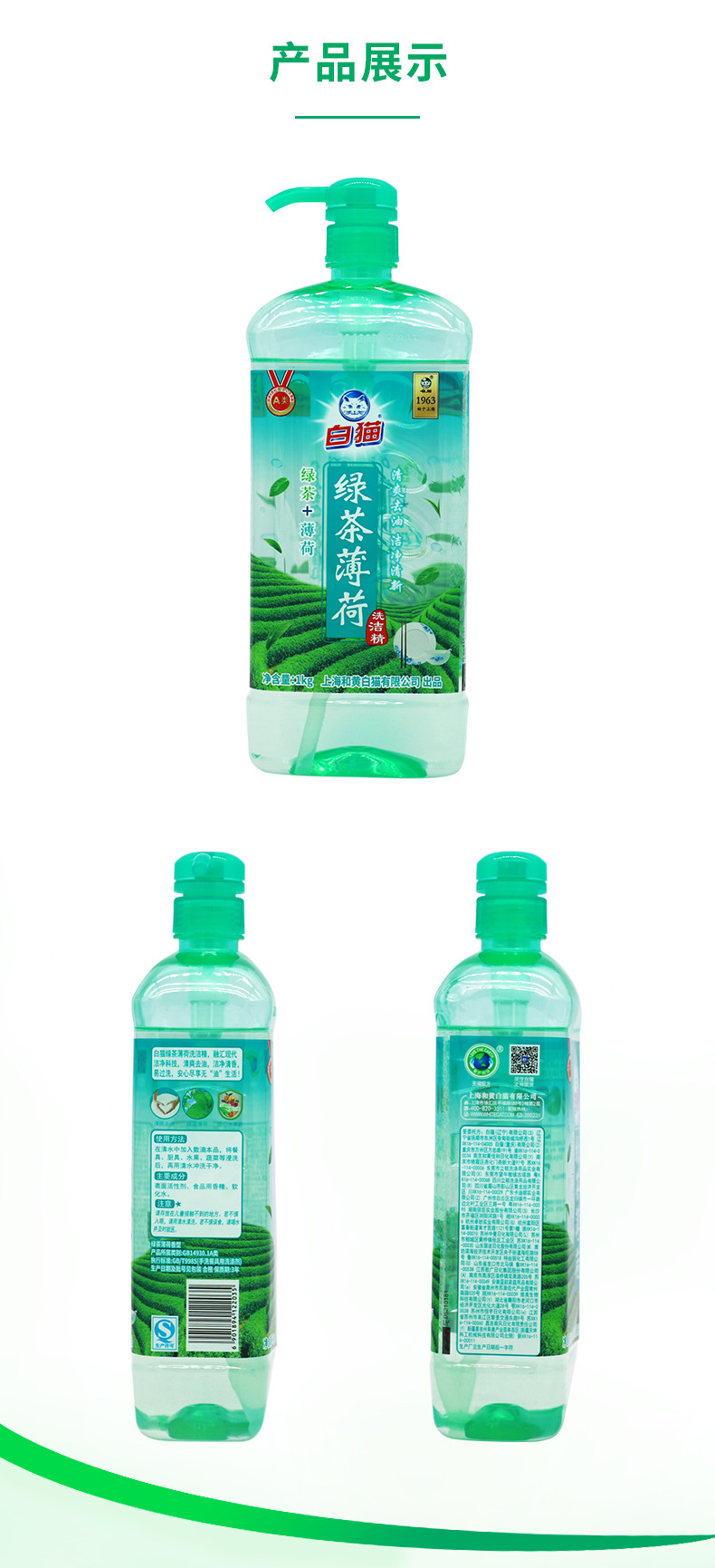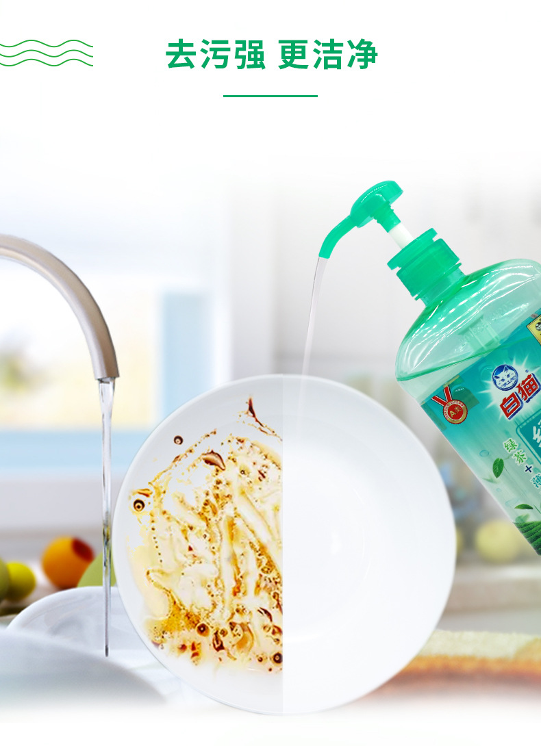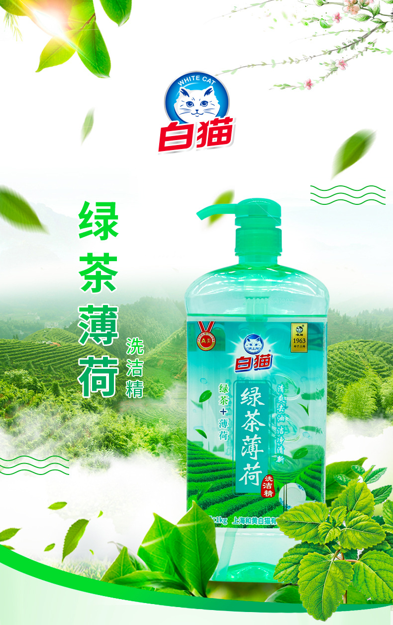 白猫洗洁精绿茶薄荷家庭装洗涤剂实惠装 1020g