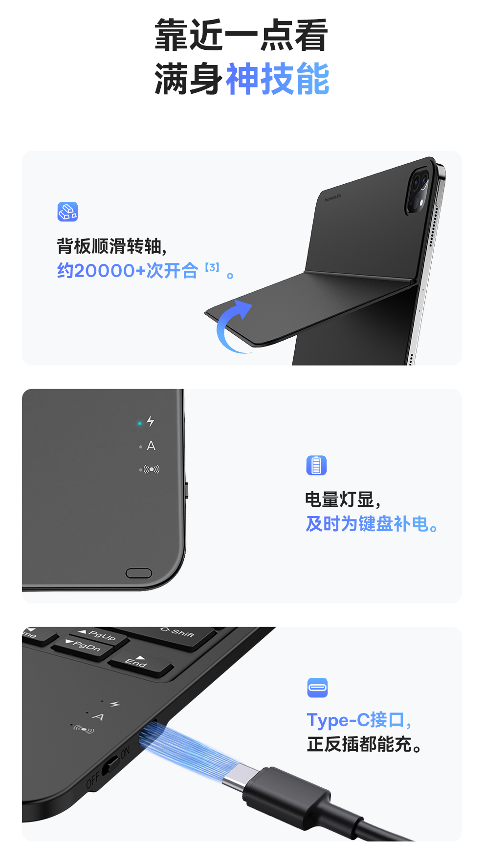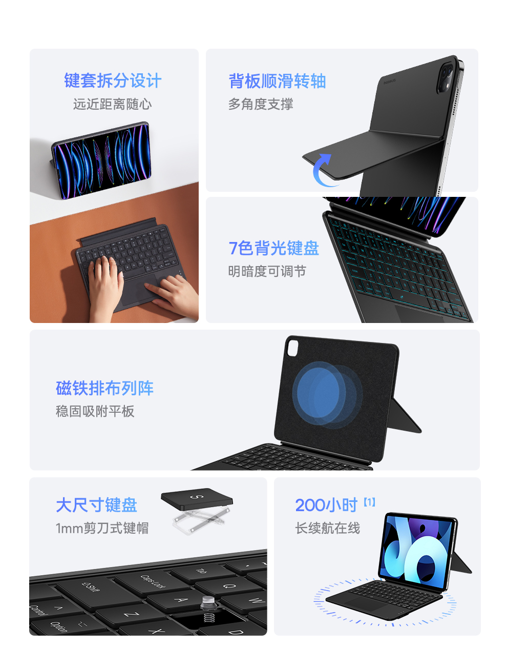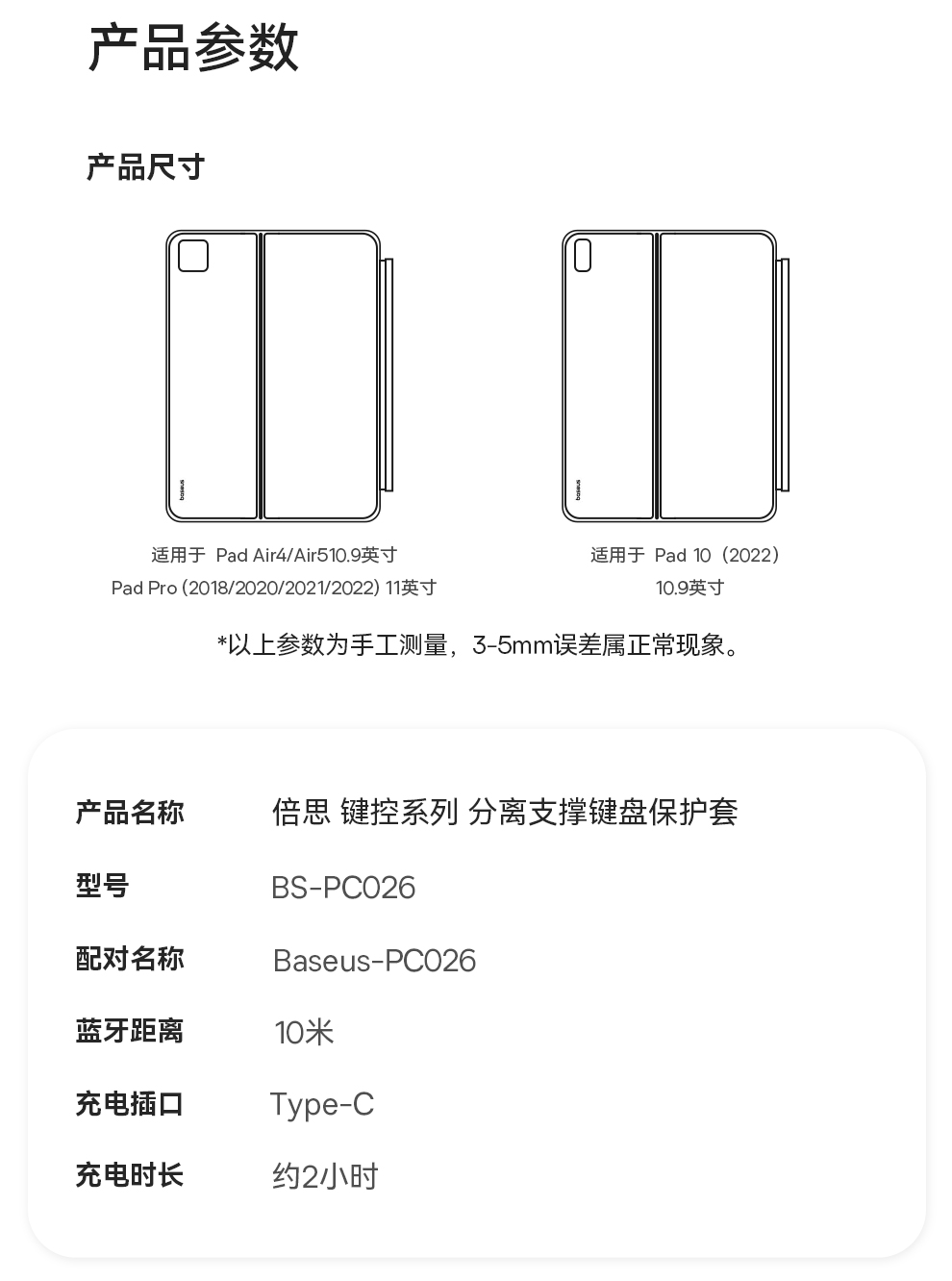 倍思 键控系列 分离支撑键盘保护套 For Pad Air4/Air5 10.9寸/Pad Pro 11寸/Pad 10(2022) 10.9寸