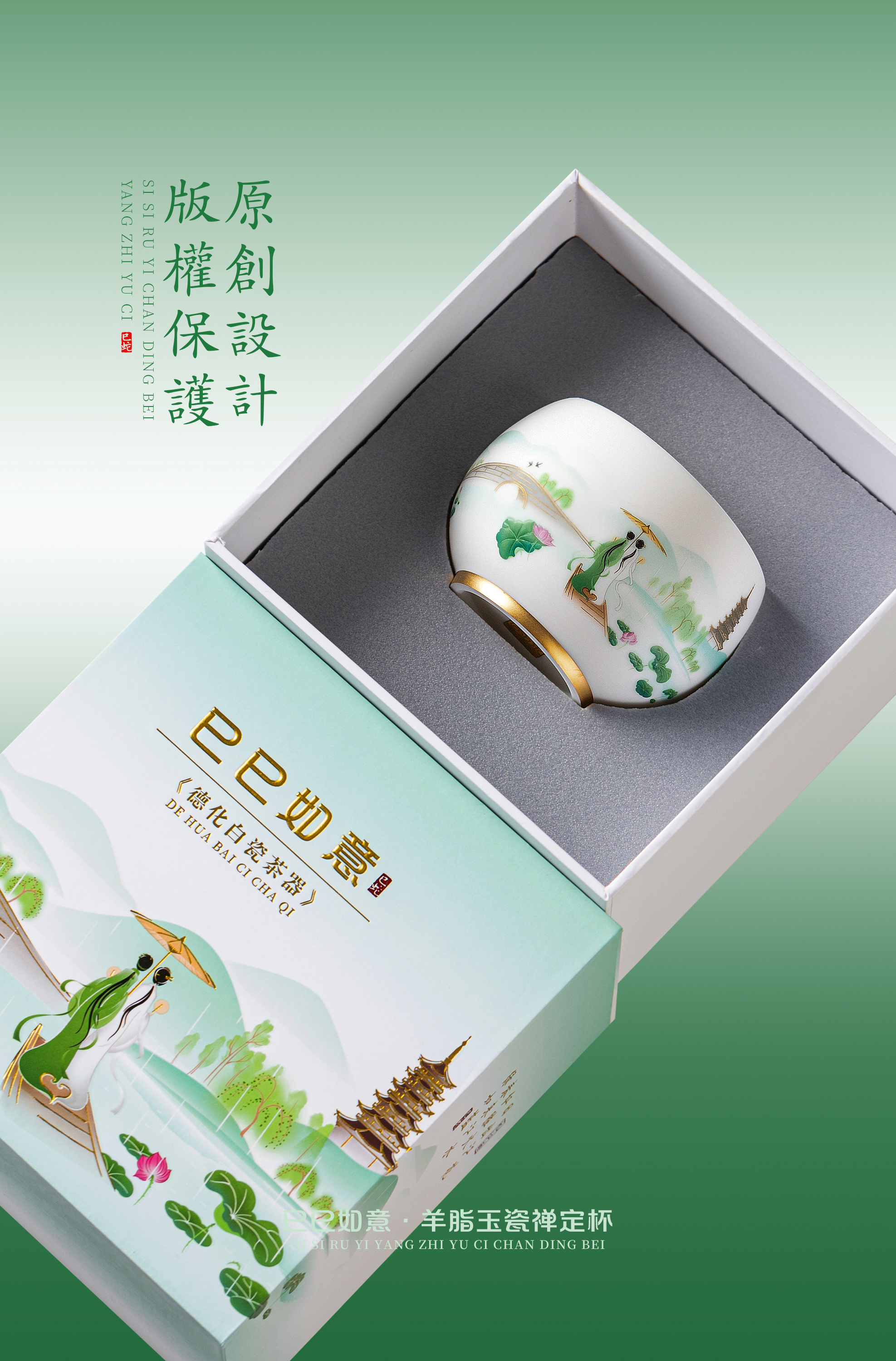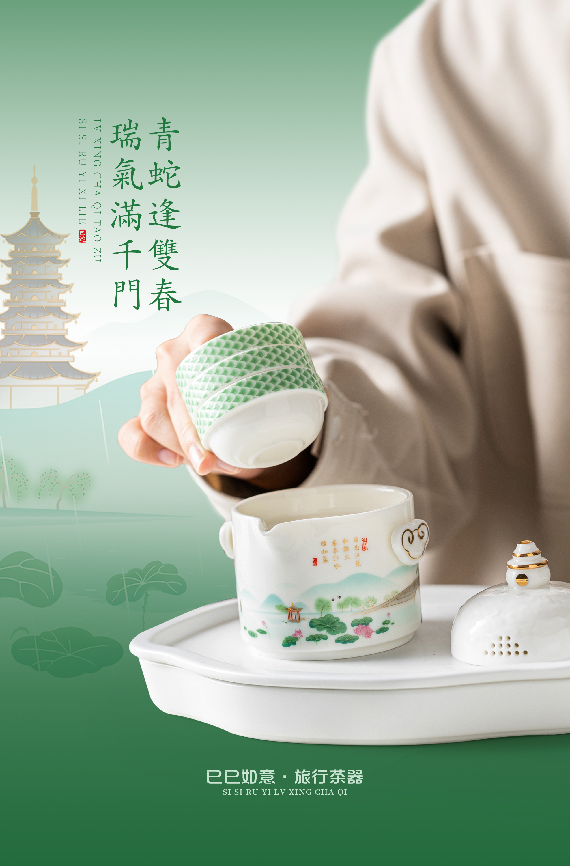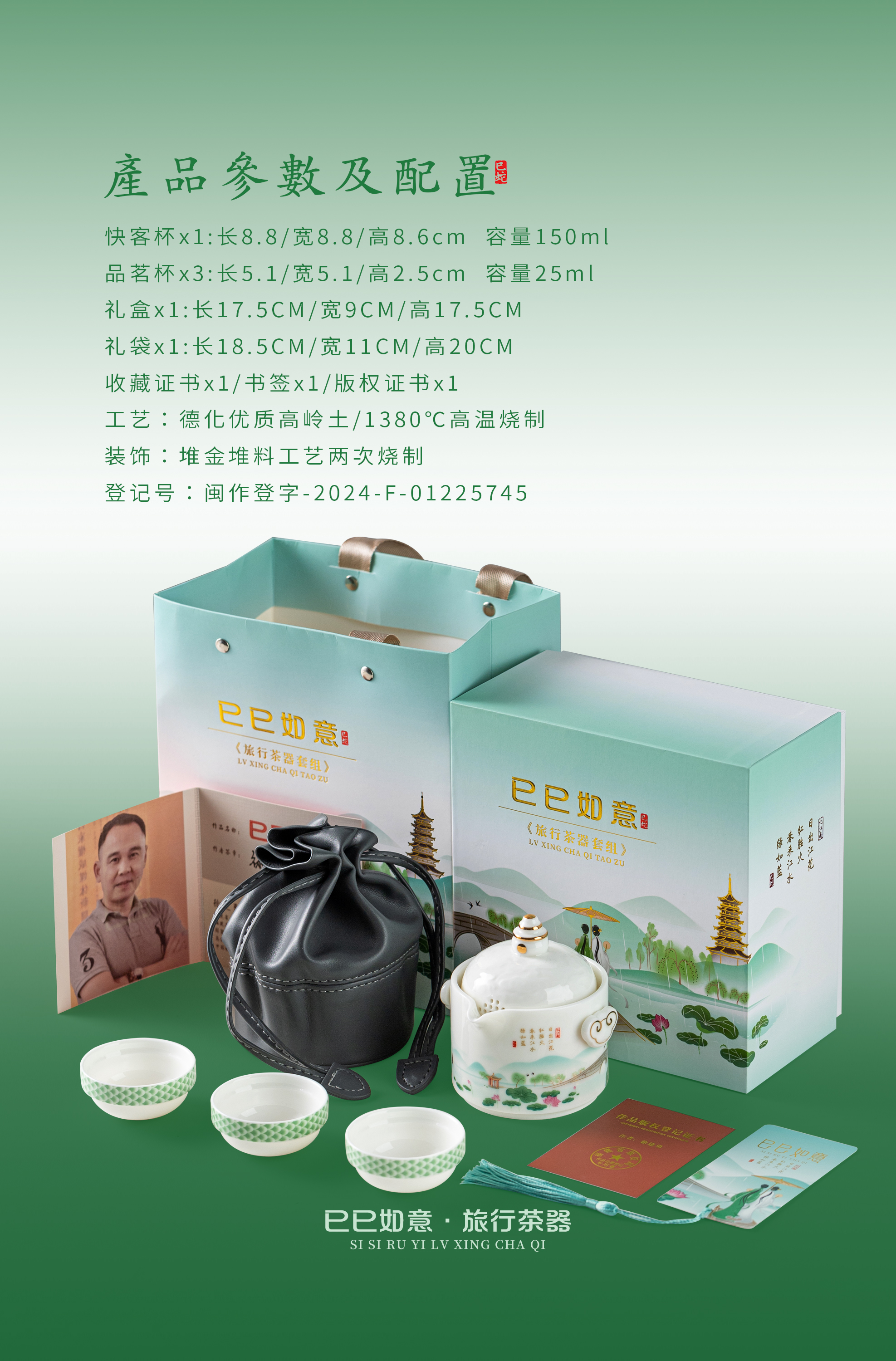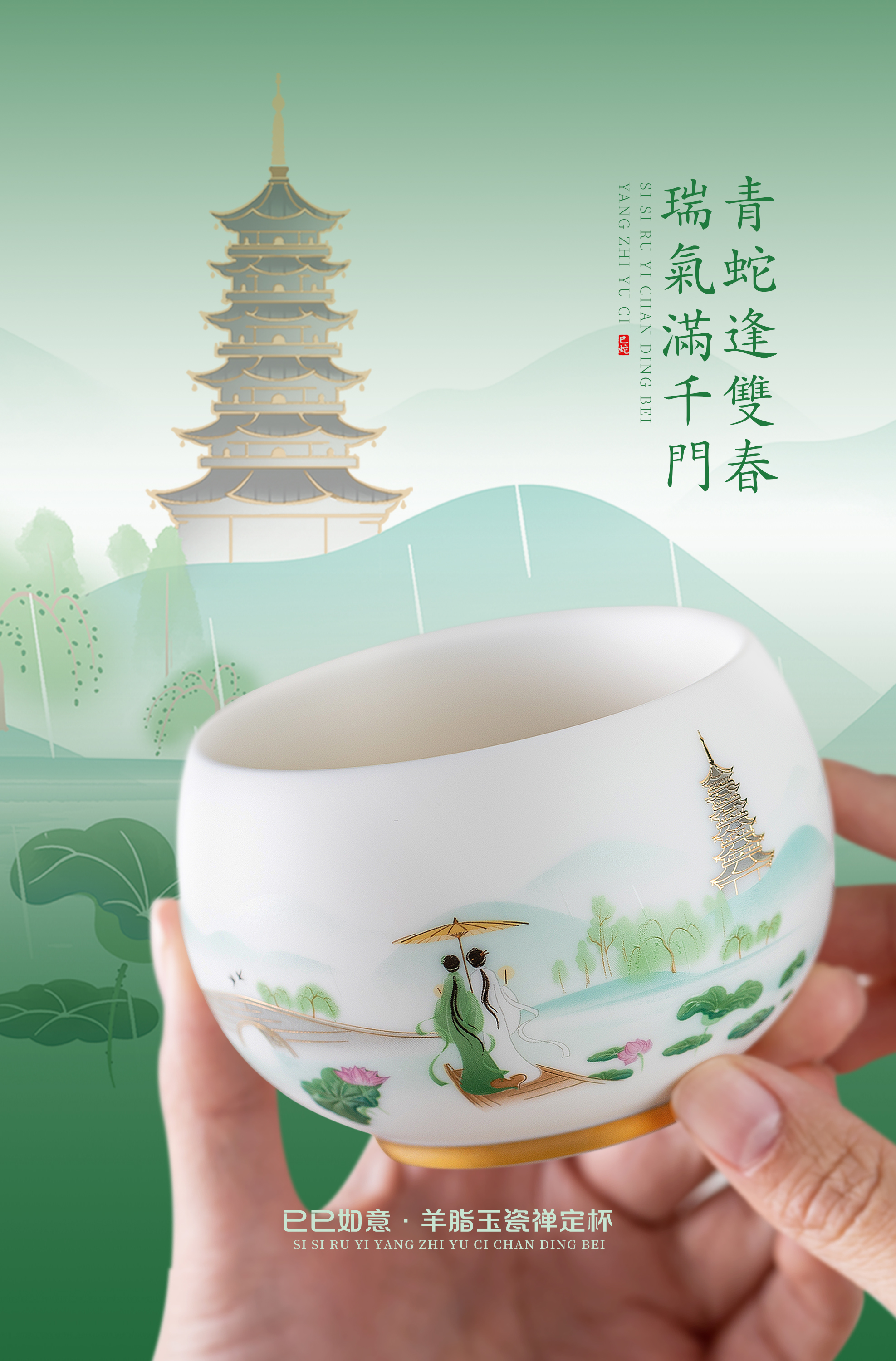 【巳巳如意】旅行茶器套组/羊脂玉瓷禅定杯 徐建勇大师签章,青蛇逢双春,瑞气满千门,精美包装 gao端豪礼