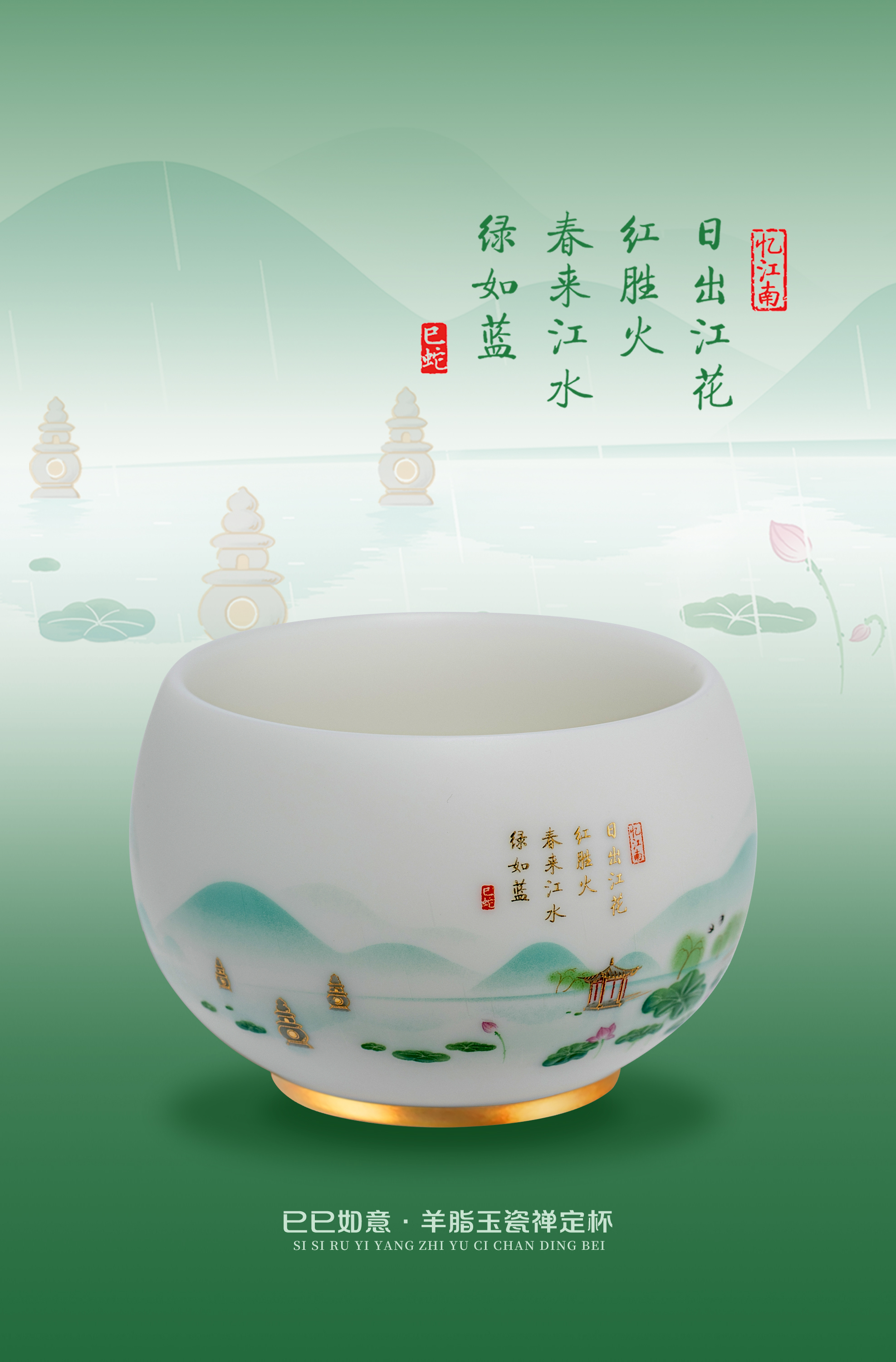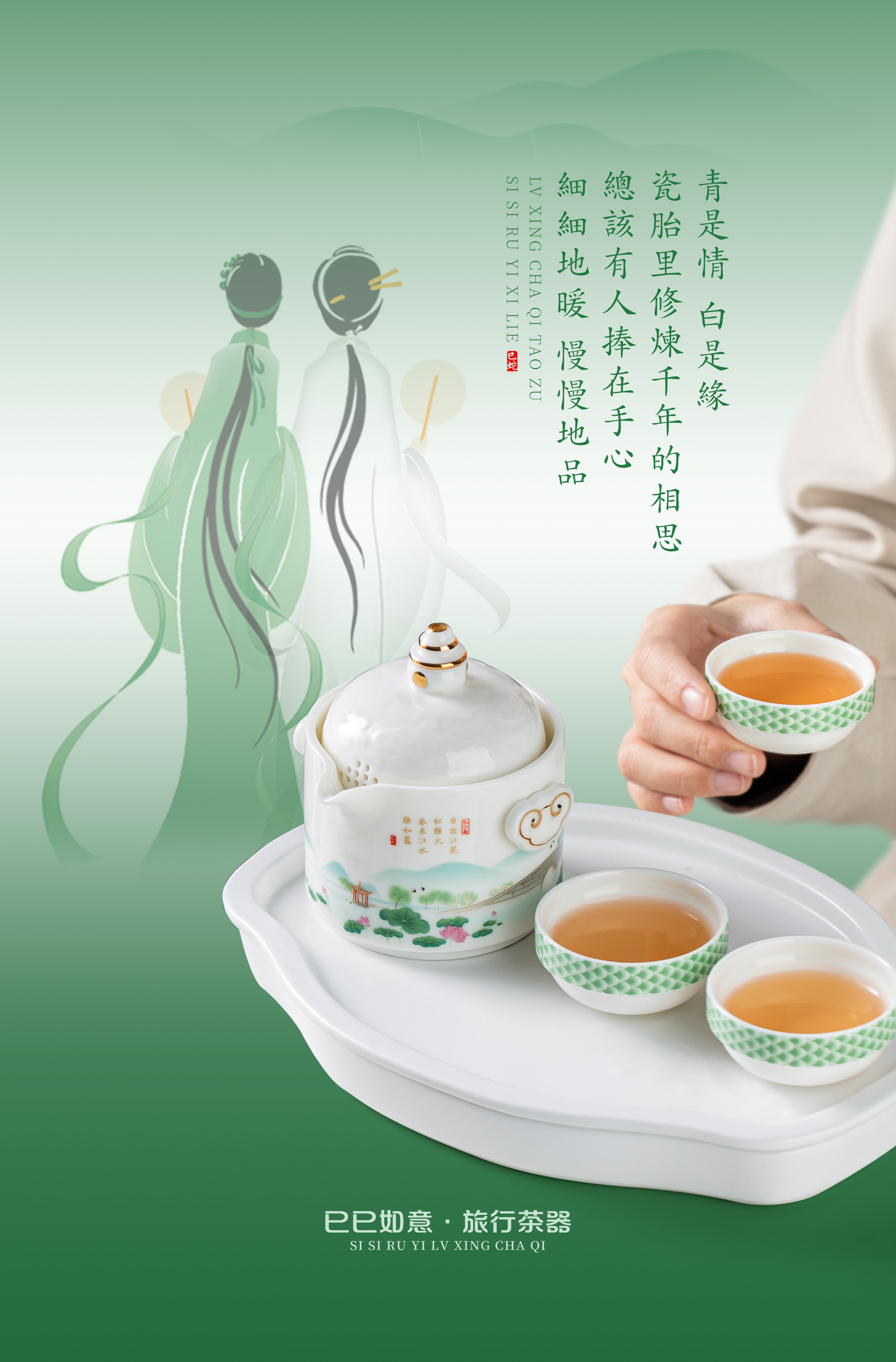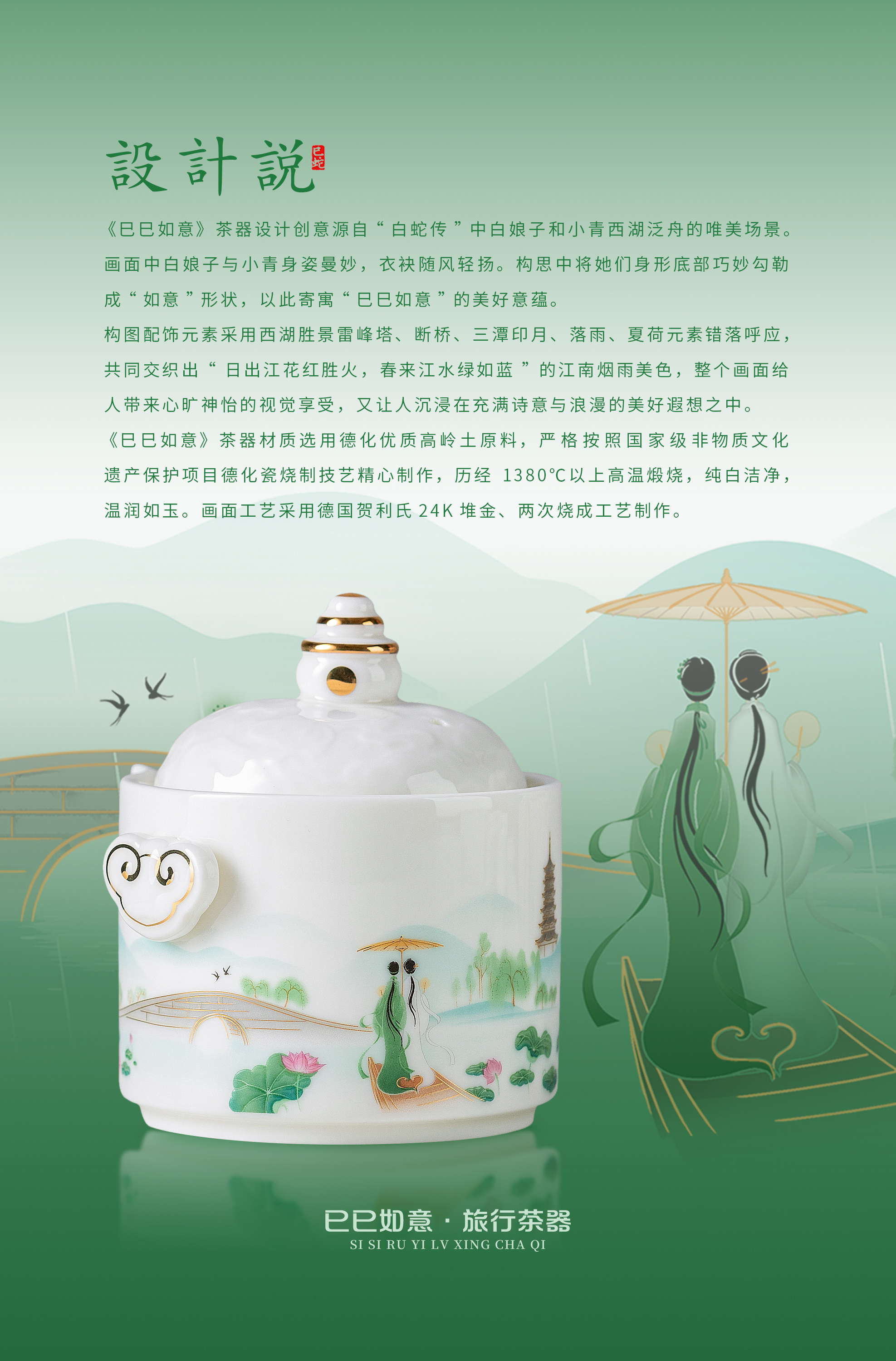 【巳巳如意】旅行茶器套组/羊脂玉瓷禅定杯 徐建勇大师签章,青蛇逢双春,瑞气满千门,精美包装 gao端豪礼