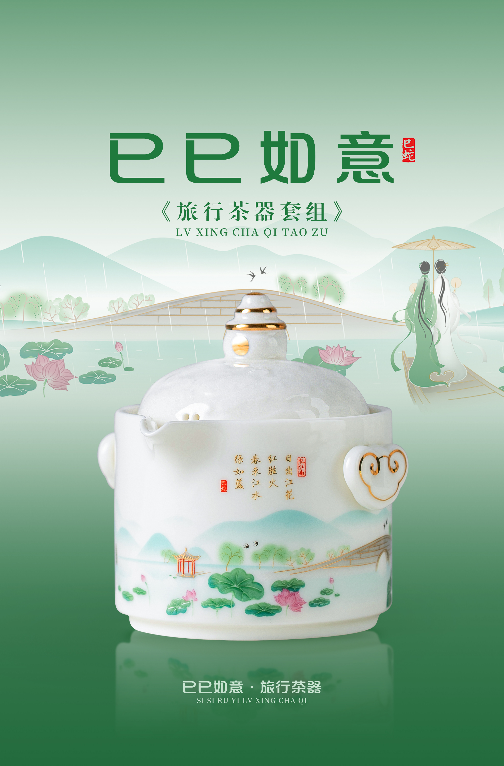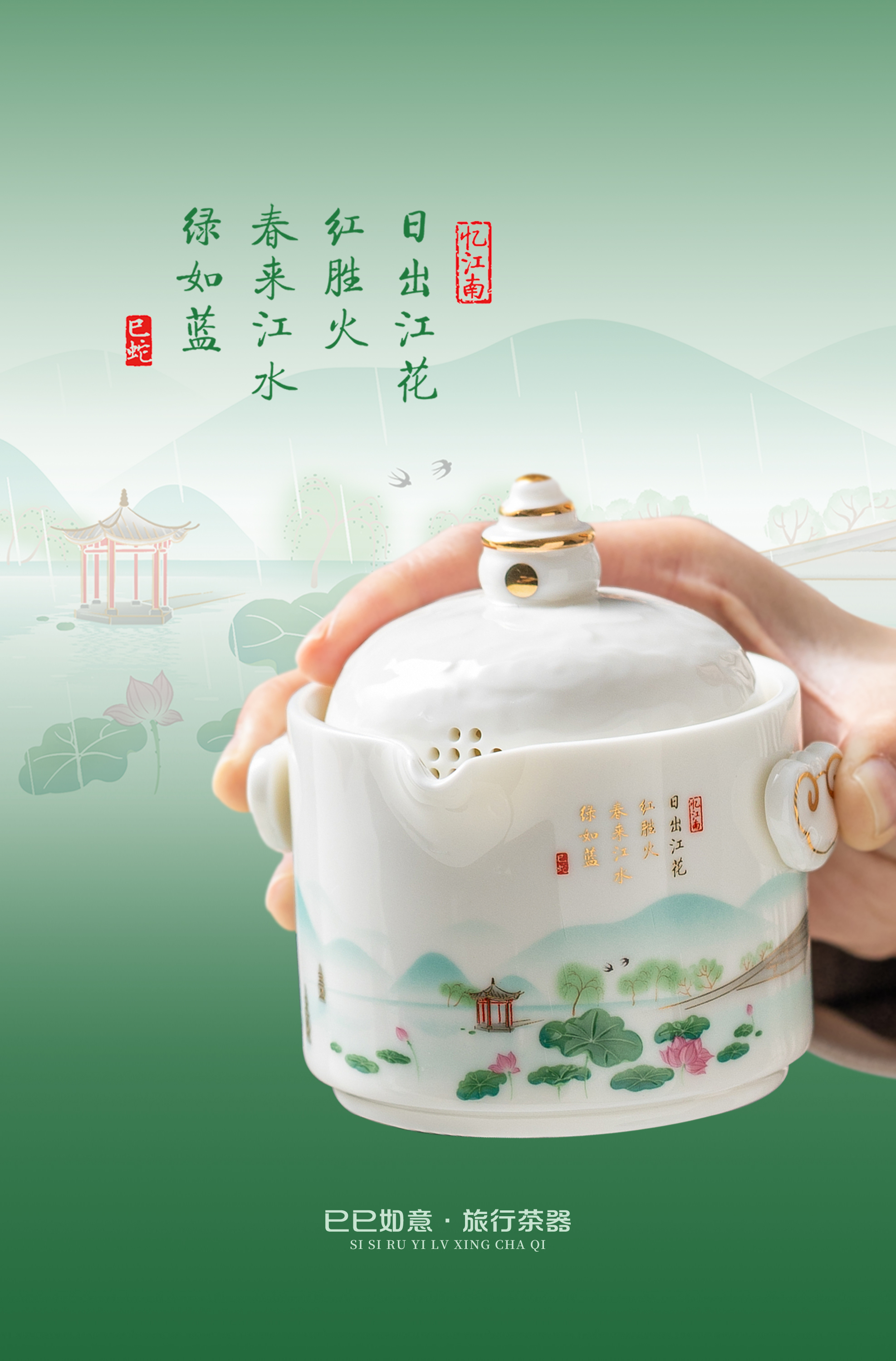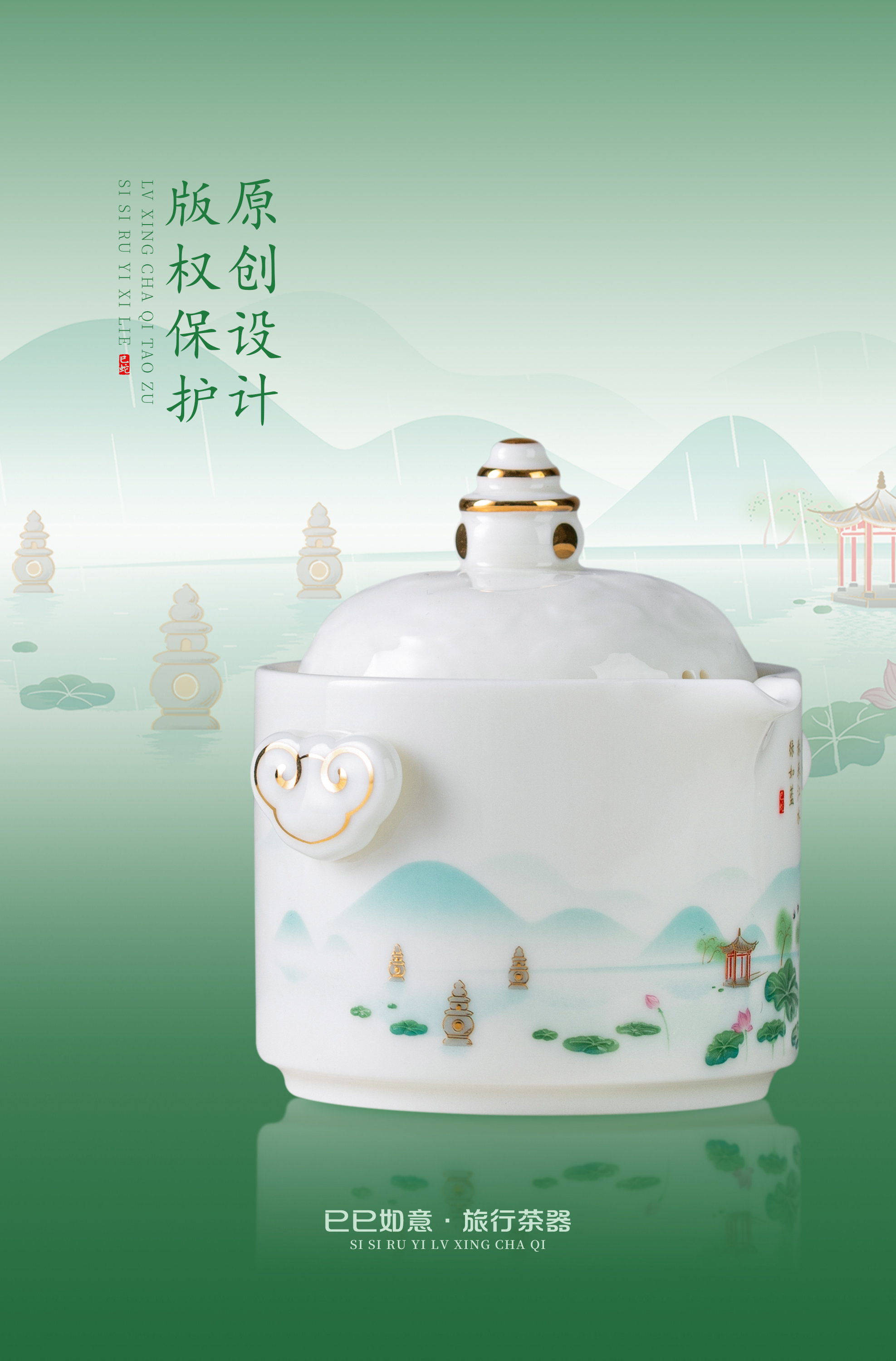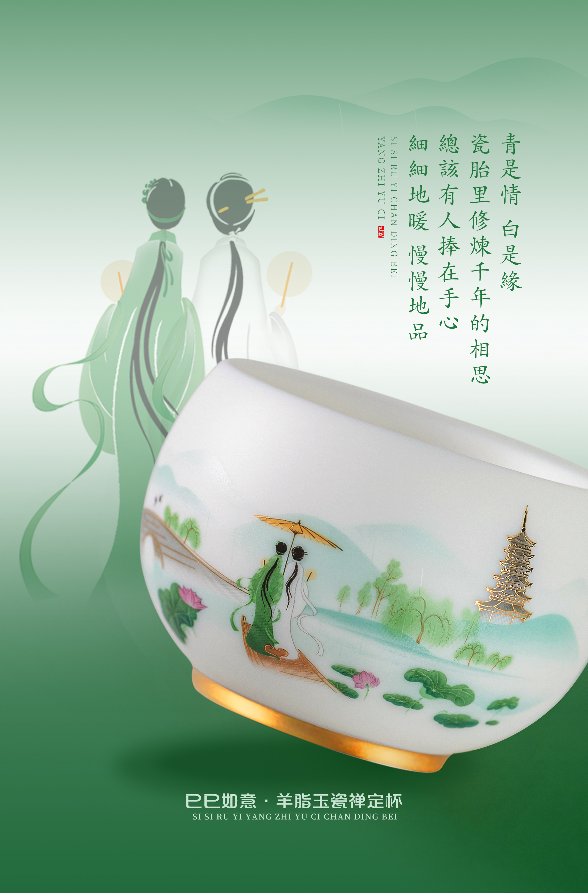 【巳巳如意】旅行茶器套组/羊脂玉瓷禅定杯 徐建勇大师签章,青蛇逢双春,瑞气满千门,精美包装 gao端豪礼