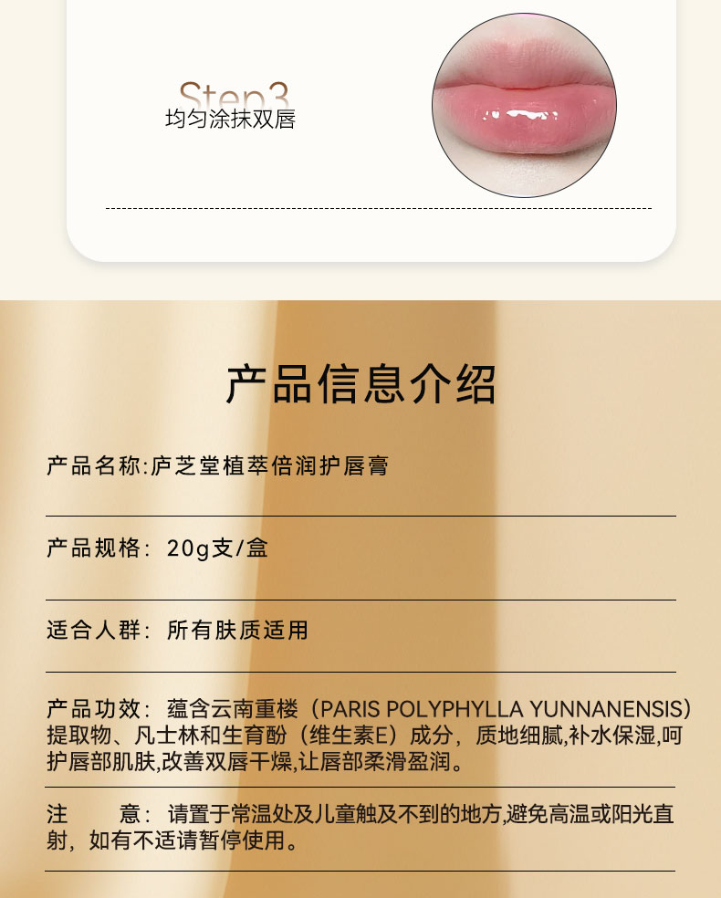 【云南草本】庐芝堂 云南草本植萃培润护唇膏 草本精萃|滋润保湿|温和不刺激|深层修复 20g/只