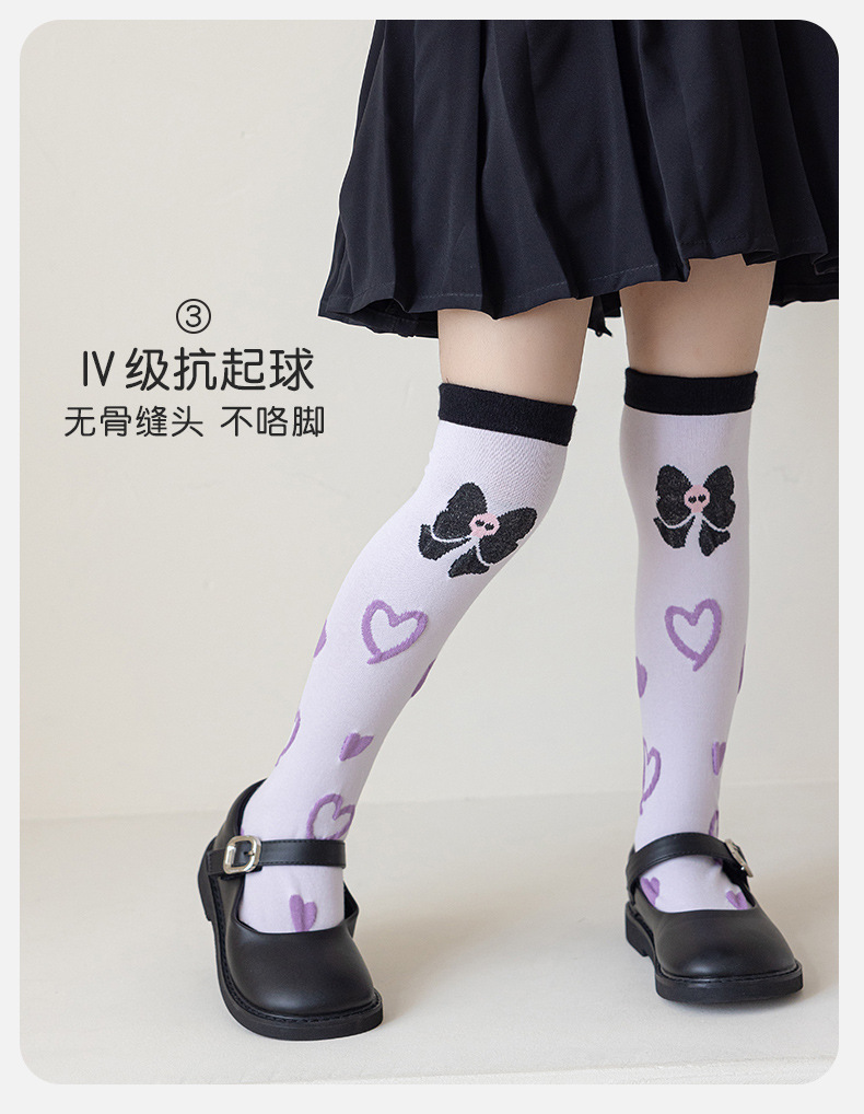 【A类纯棉童袜,抗起球!】新款女童袜子春秋精梳棉卡通儿童小腿袜,秋冬女孩蝴蝶结公主长筒袜,运动袜的新潮流重新定义运动袜!-QQ