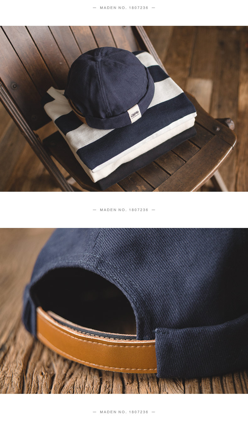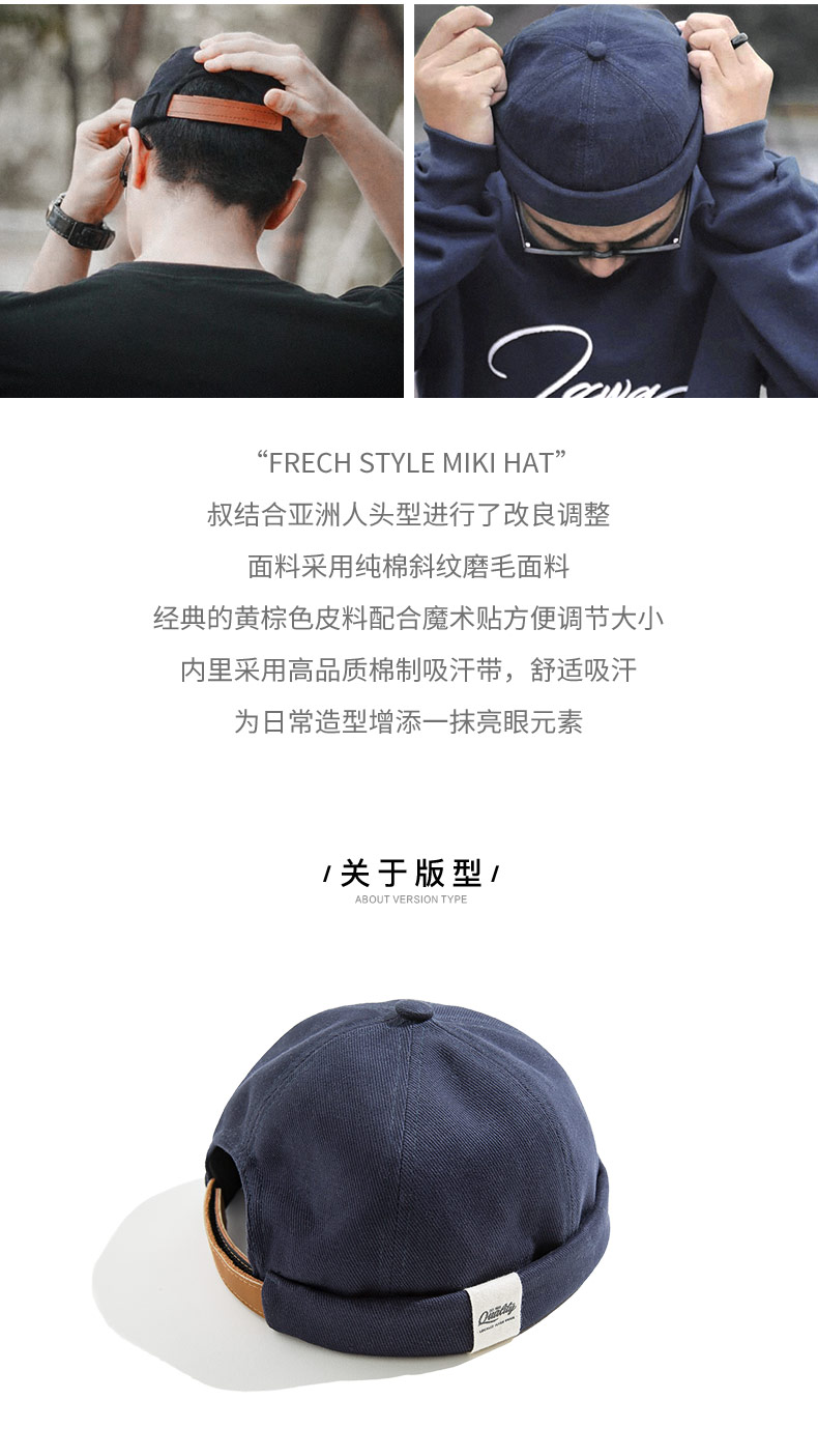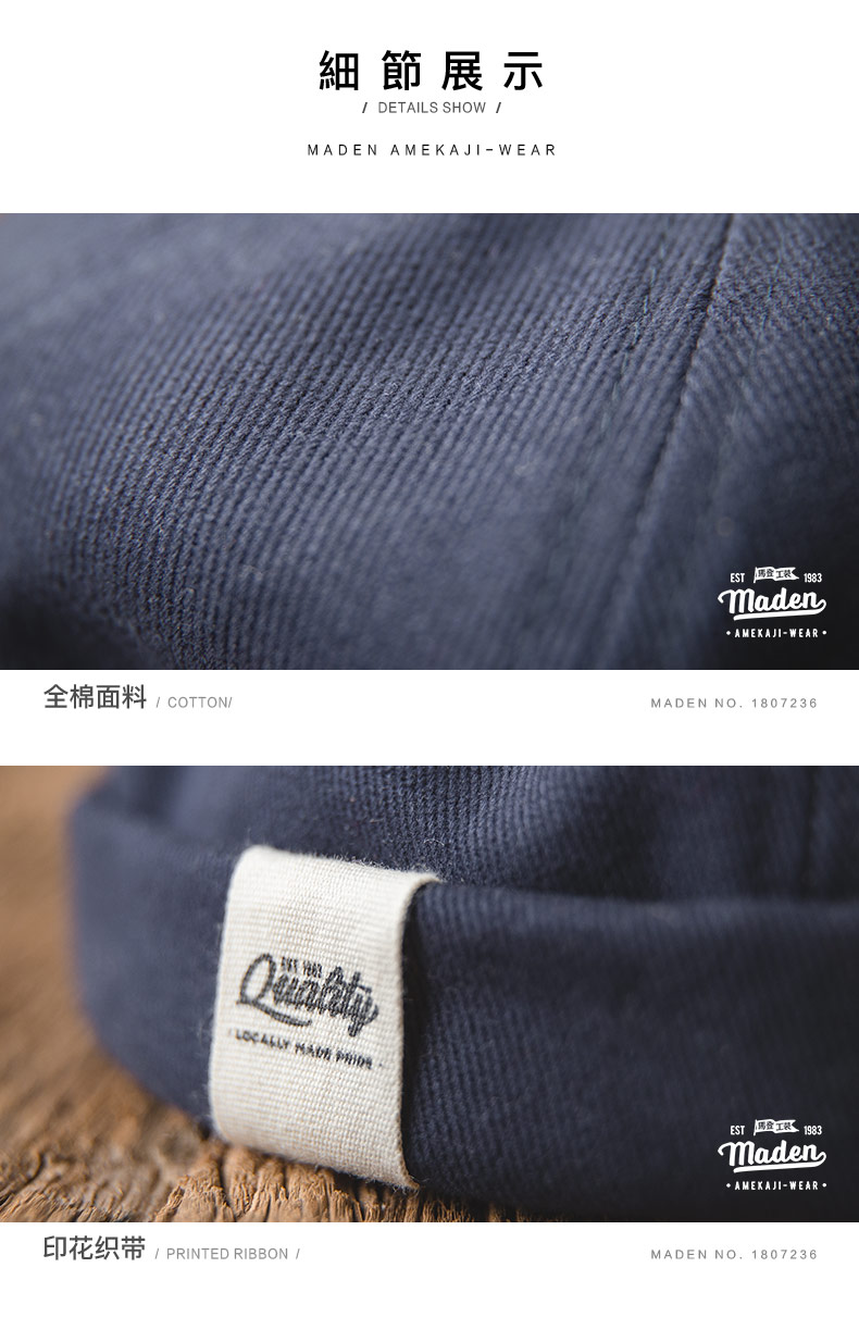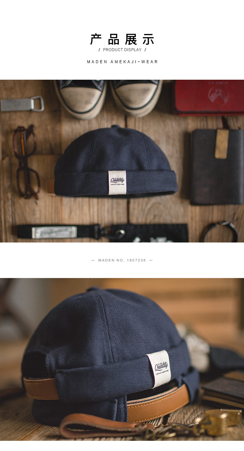 工装优选 复古雅痞无沿瓜皮地主帽无檐水手磨毛兵冷帽子流氓帽男秋