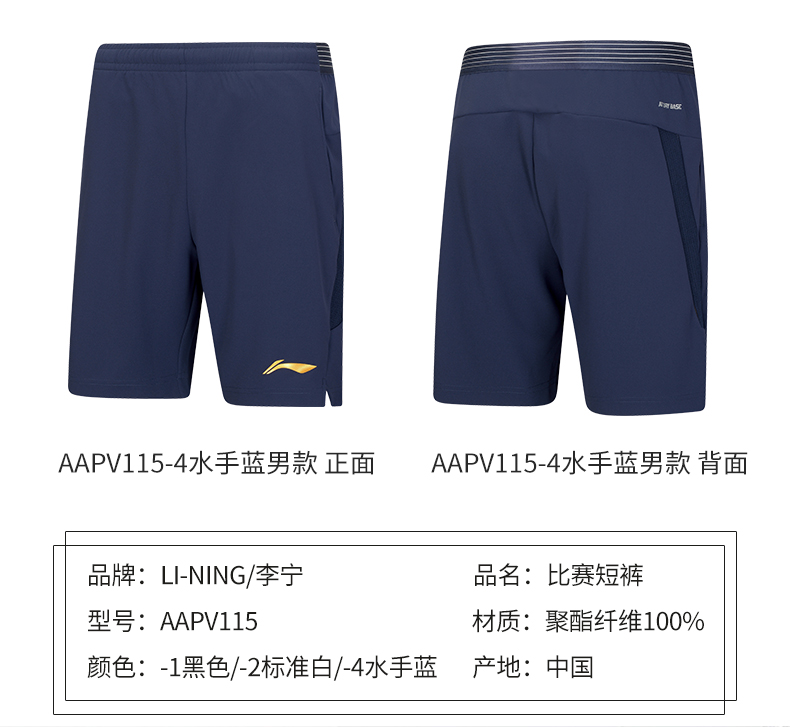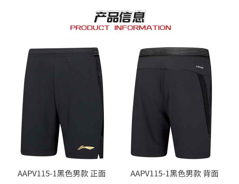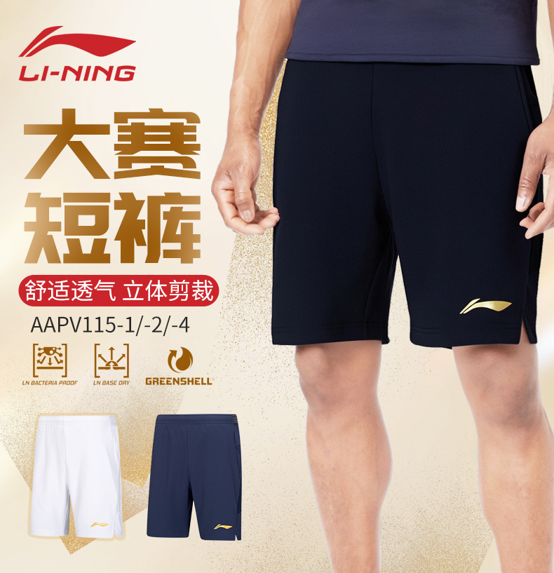 李宁羽毛球服AAPV115男款大赛系列训练舒适速干短裤