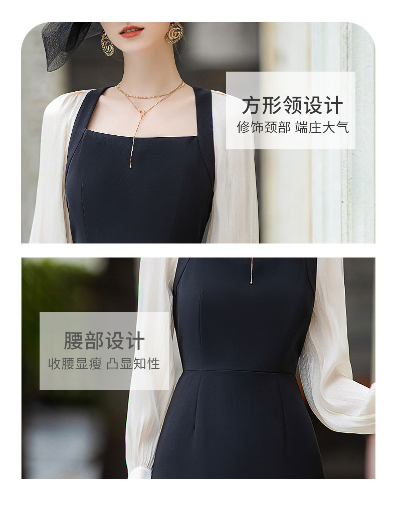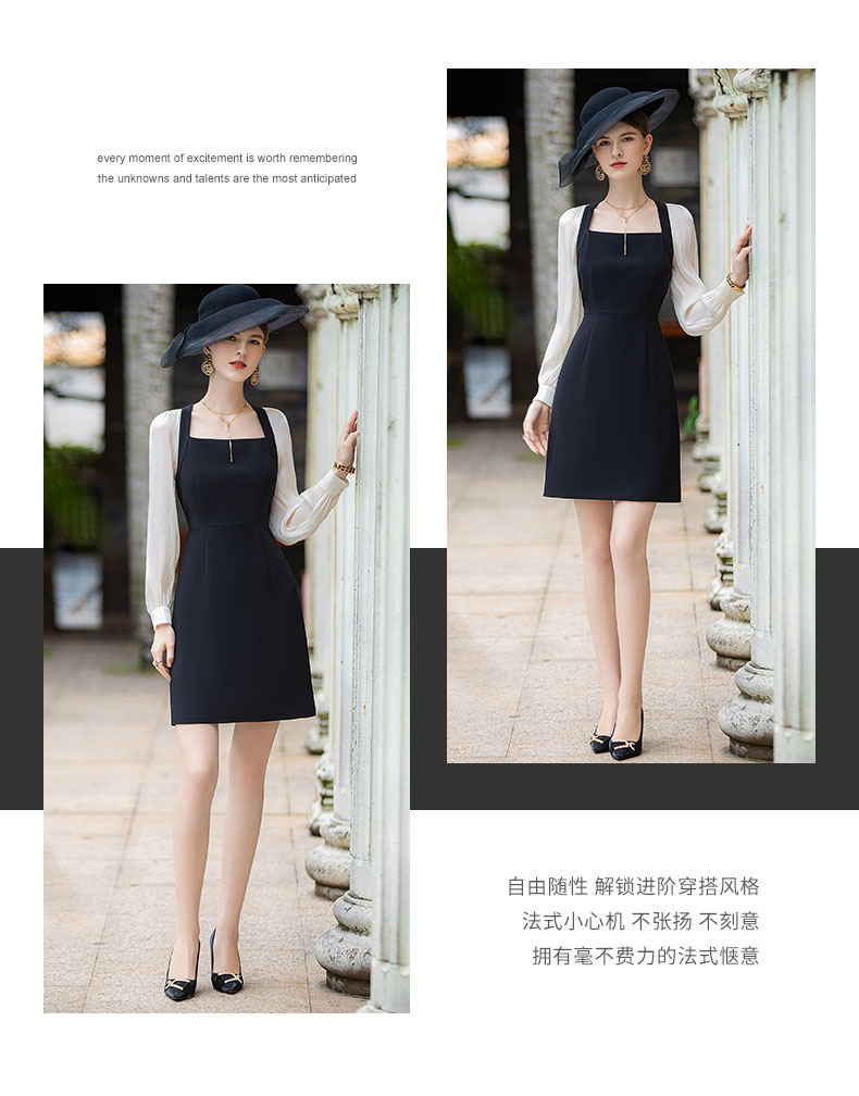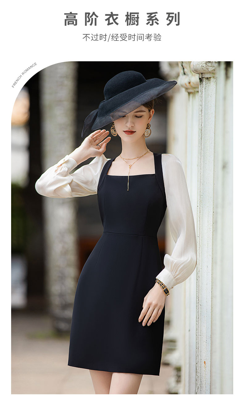 AD洋气鎏光纱接拼连衣裙女法式名媛赫本风小黑裙气质女神范裙子夏