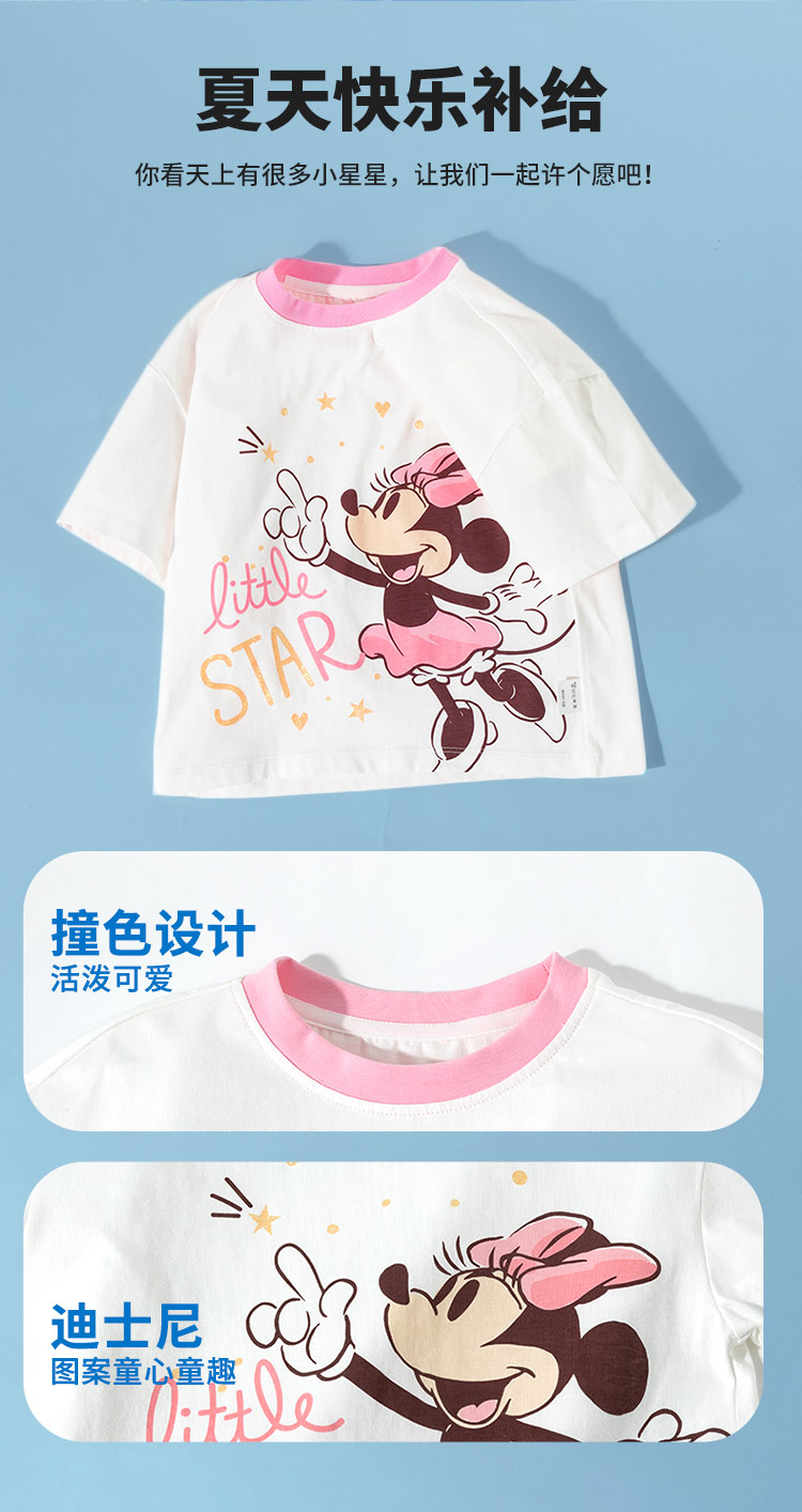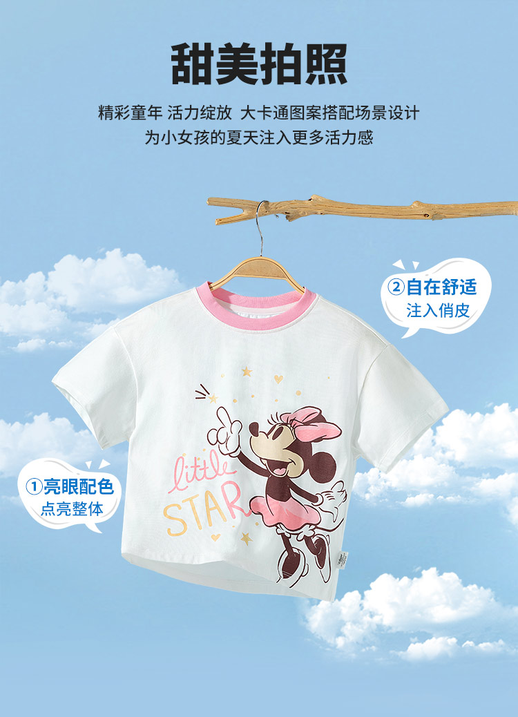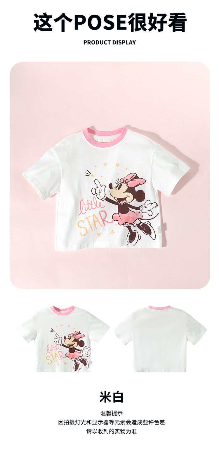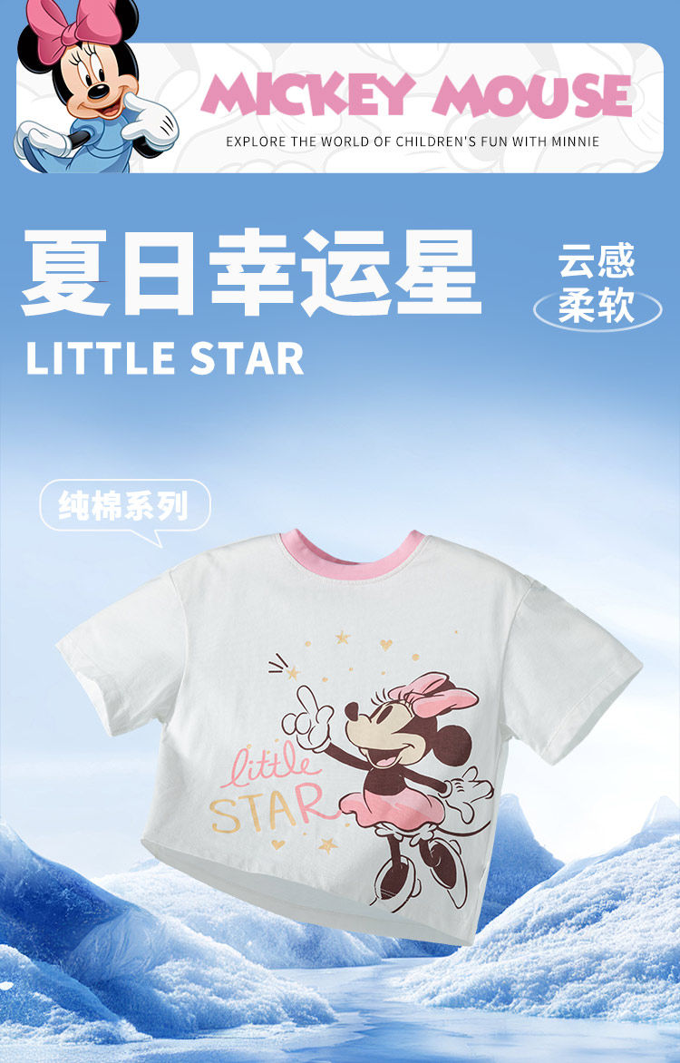 迪士尼【米妮纯棉T恤】25夏季新款女童轻薄透气短袖T恤运动休闲上衣*