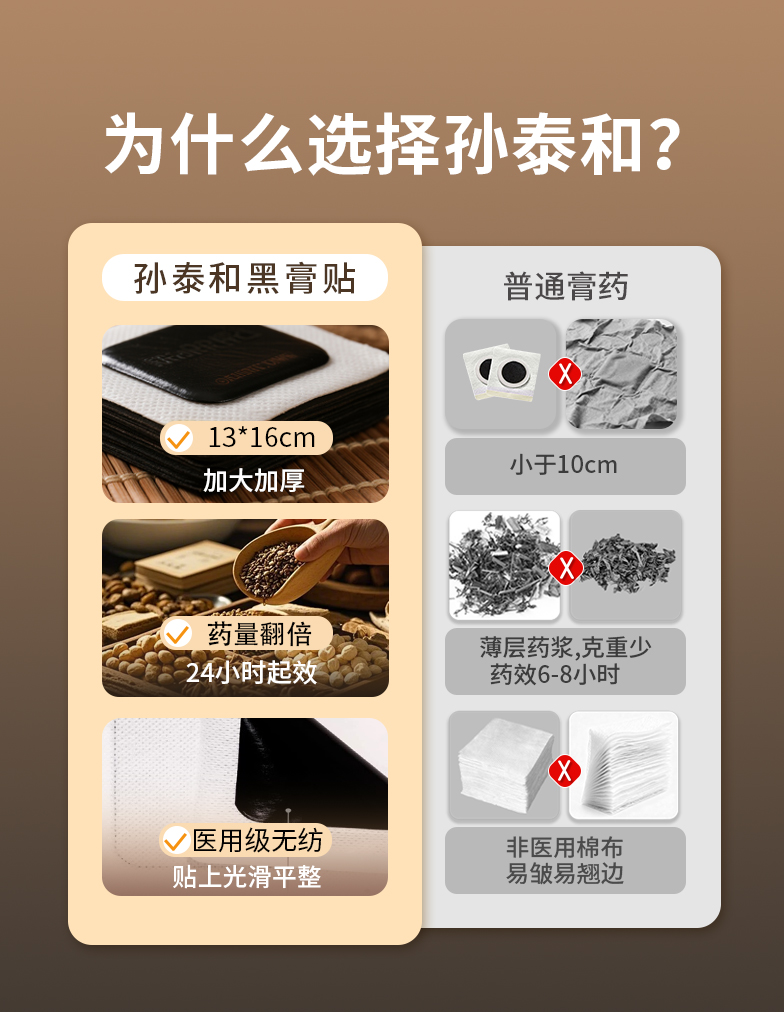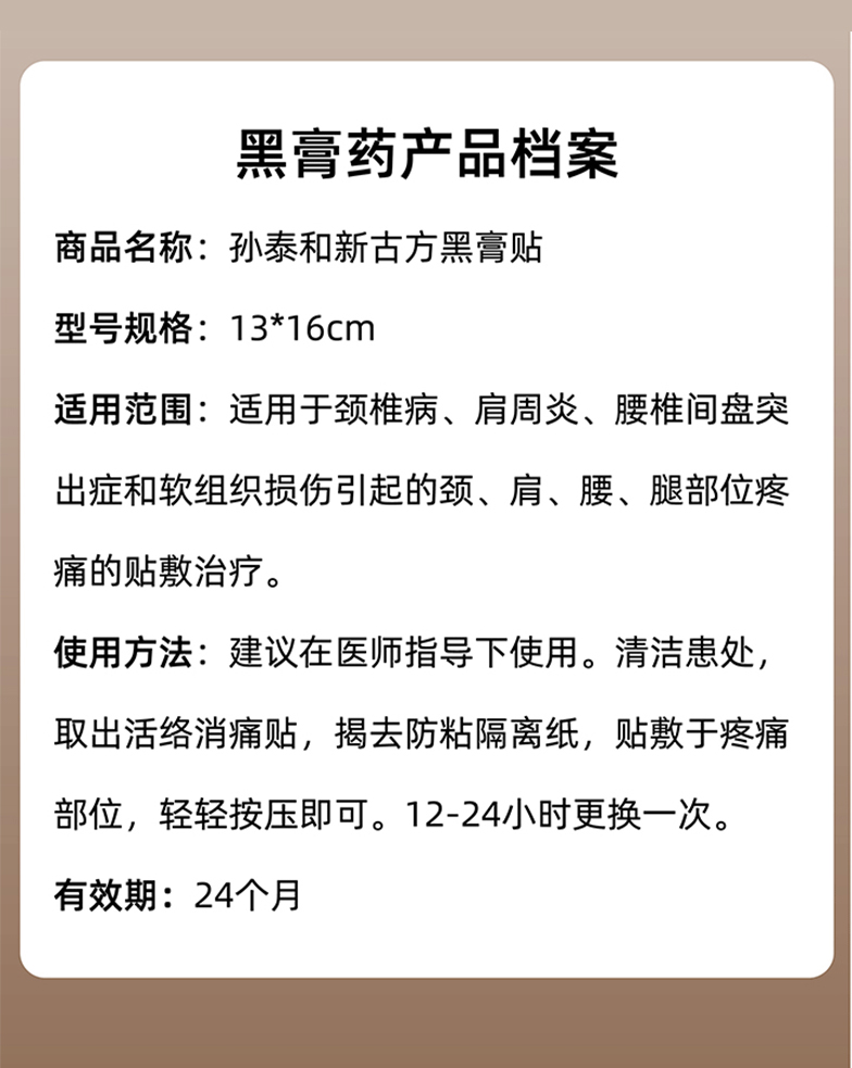 【春节正常发货】“源自光绪11年 140年中华老字号官方认证非遗配方”孙泰和古方黑膏贴 加厚膏体量足持续时间长 5贴/盒
