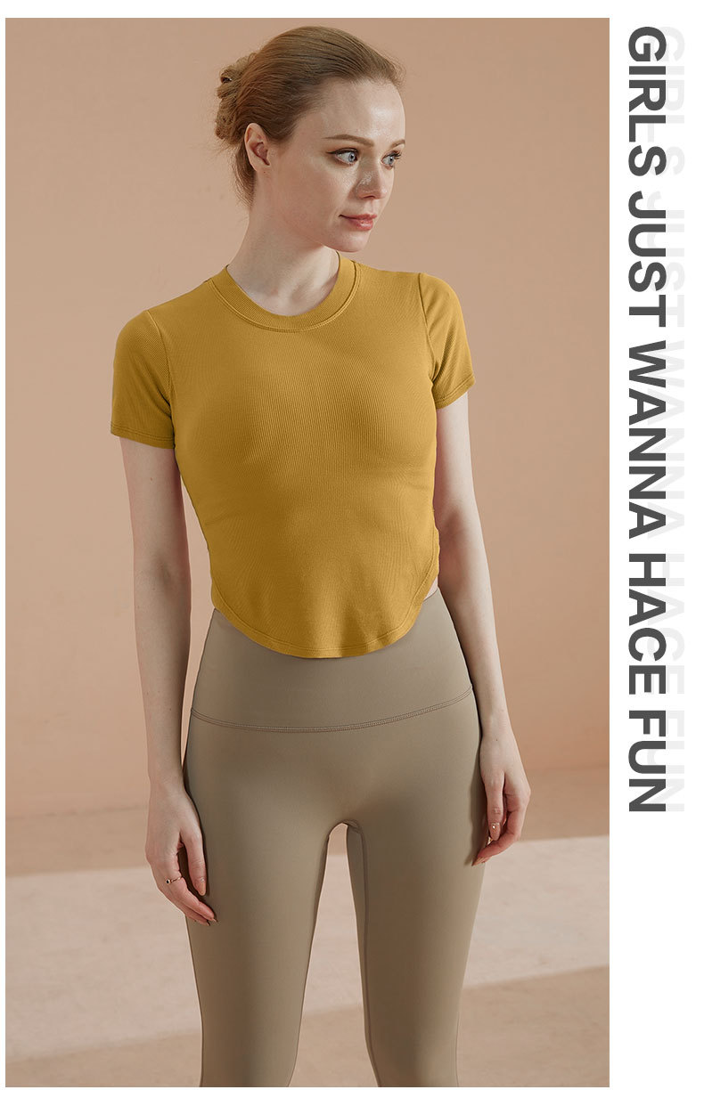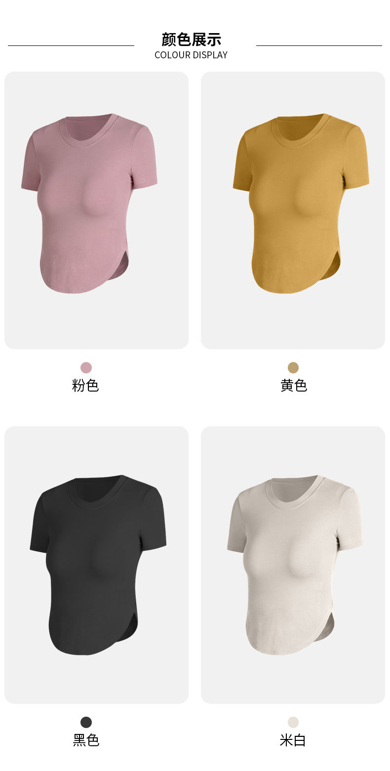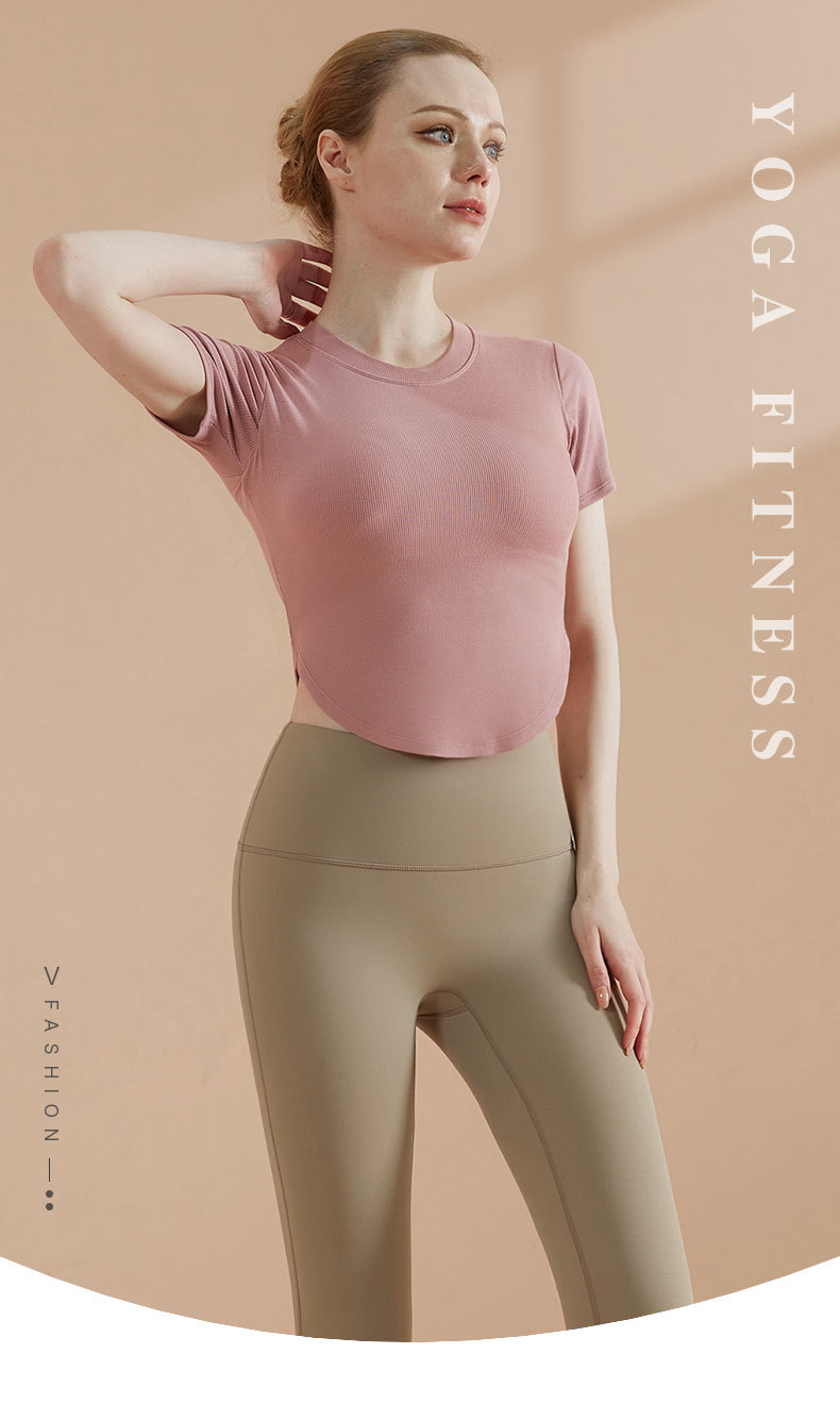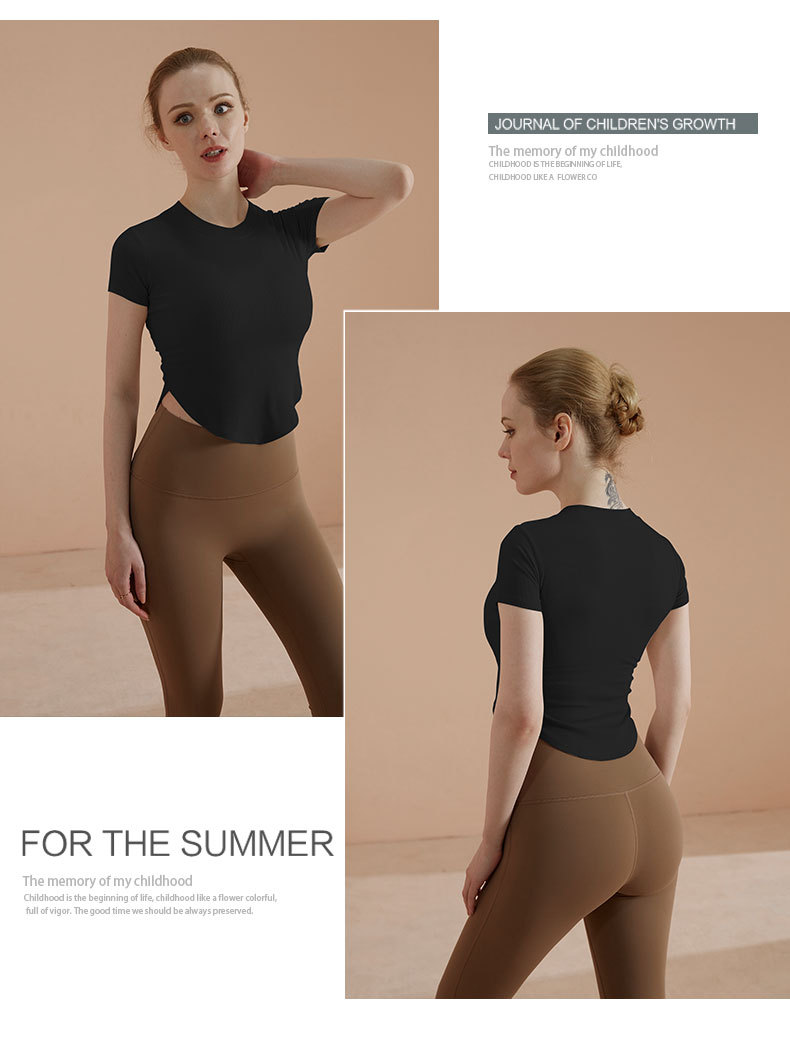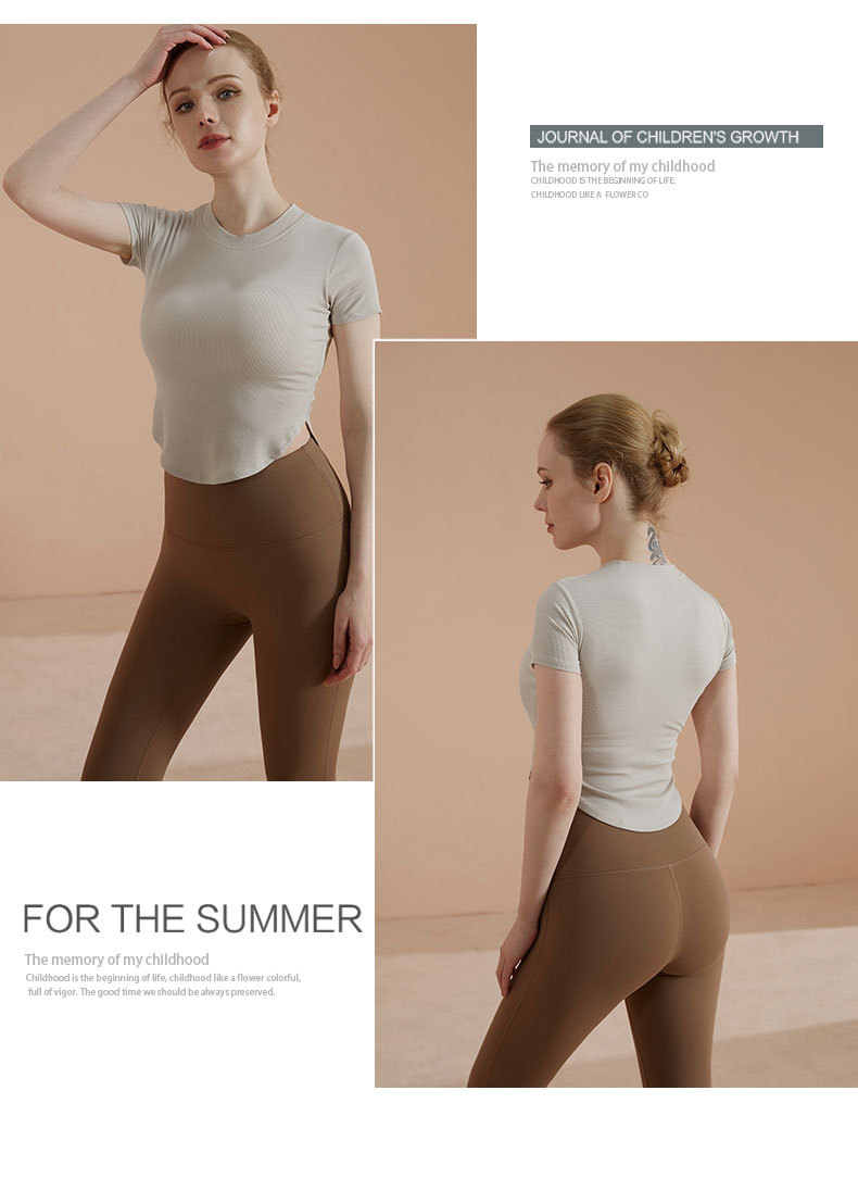 2023春夏新款瑜伽服女短袖修身亲肤健身上衣透气裸感时尚运动T恤