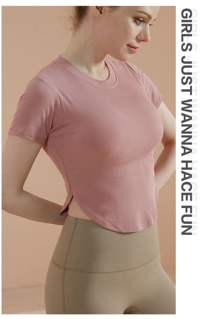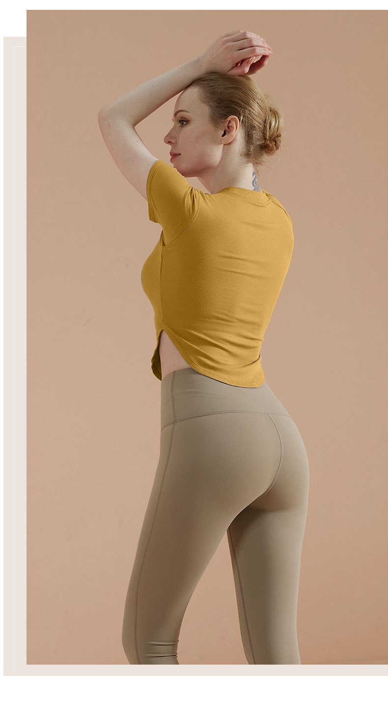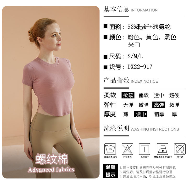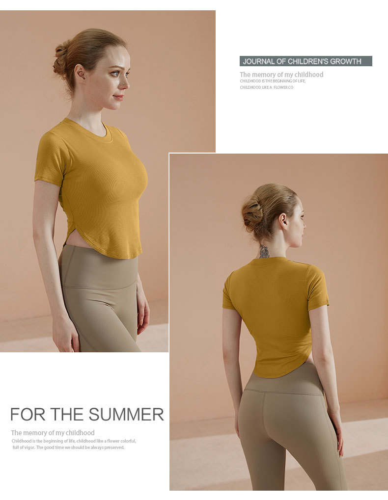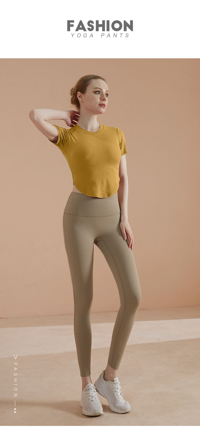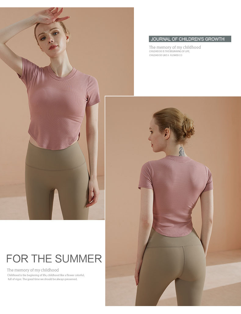 2023春夏新款瑜伽服女短袖修身亲肤健身上衣透气裸感时尚运动T恤