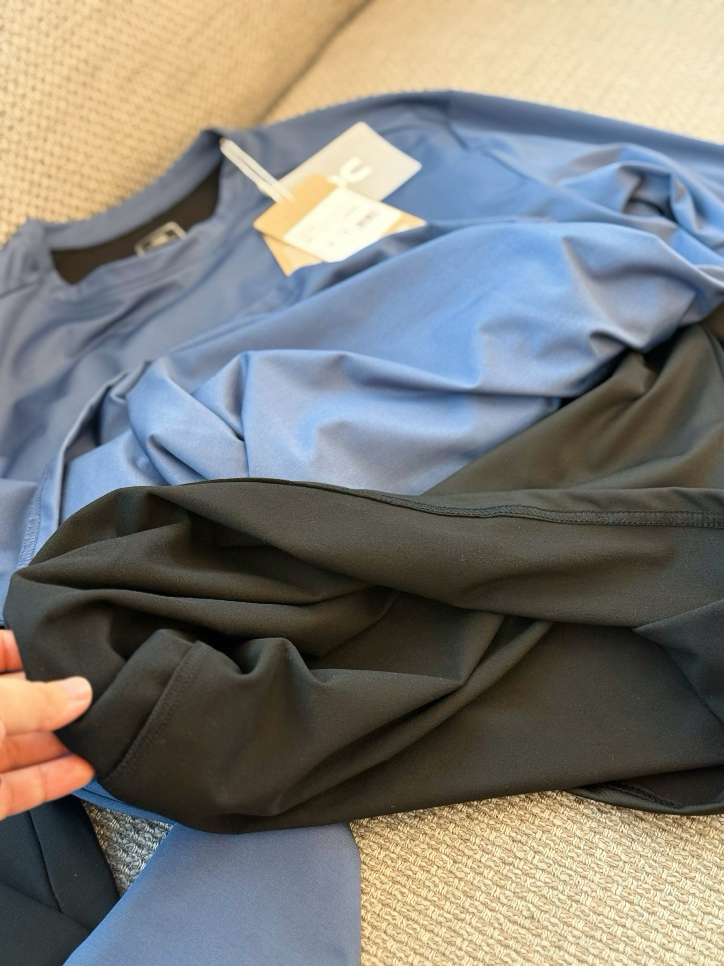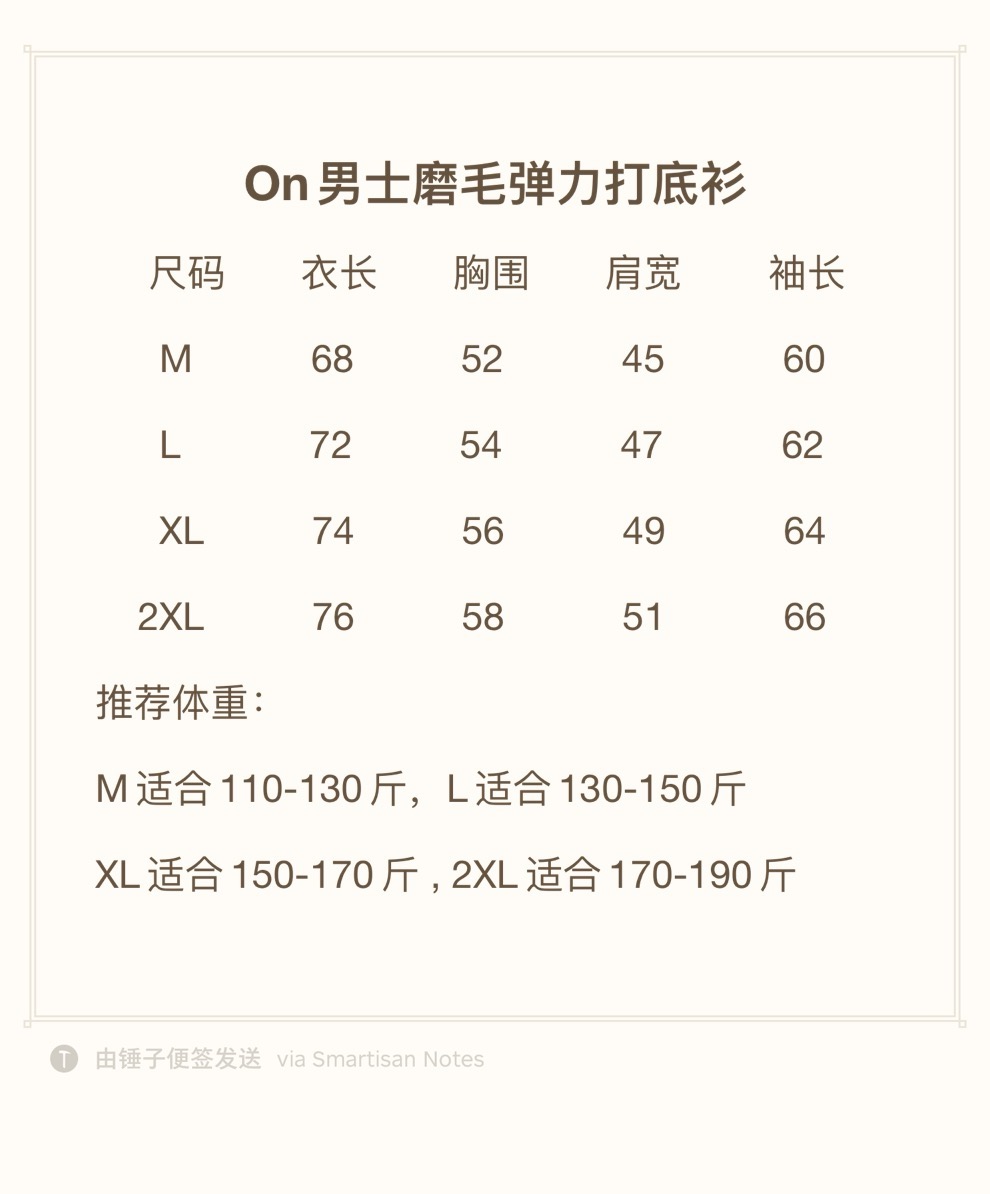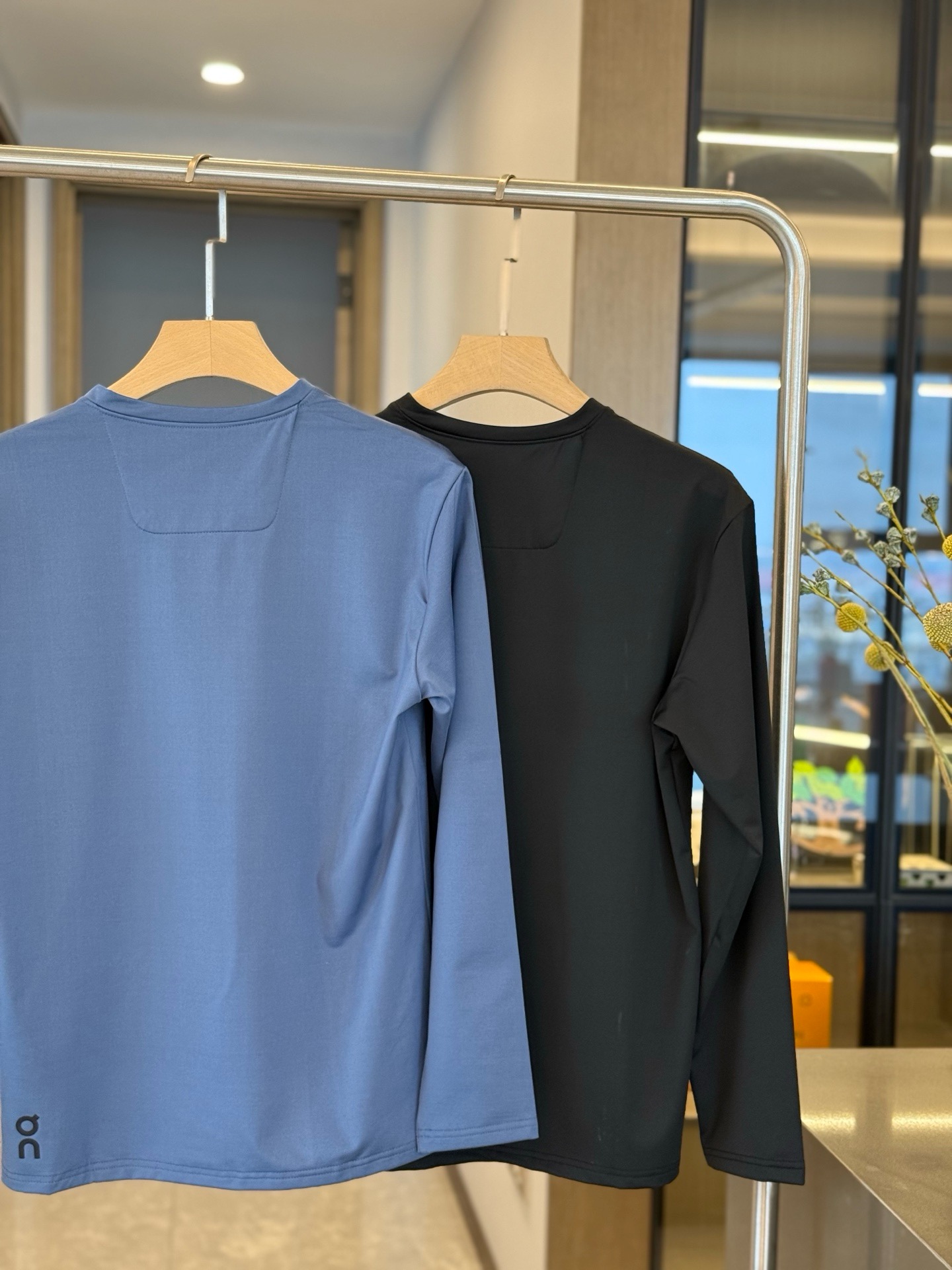 On男士磨毛弹力长袖打底,绵软柔糯到爆!舒服到像没穿~表面速干面料,内里超细轻磨毛,超温柔的接触裸感,奶霜一般的柔润,而且弹力巨大!不挑体型!撸铁路跑骑行都妥~经典圆领,领口宽度刚好,本布双面包边双线固定,内里绷缝,平整弹性好,穿脱不会有卡脑壳~整体走线精致,每一处细节都很完美On男士磨毛弹力打底衫