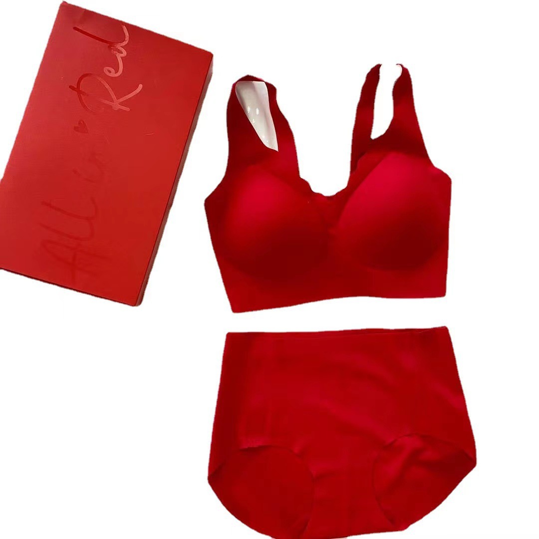 【精美礼盒装❗️本命年内衣套装】浪花背心设计,创新面料高弹贴合,细腻软糯轻盈舒适 ,亲肤不刺痒,水洗不掉,2026马年套装女本命年结婚无钢圈无痕文胸罩盒装QQ